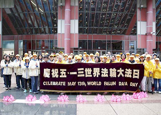 五月十二日,加拿大东部近千名法轮功学员聚集在多伦多市政厅广场庆祝即将到来的世界法轮大法日。加拿大数位政要到场发言支持。