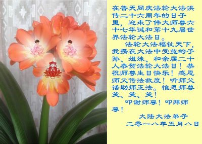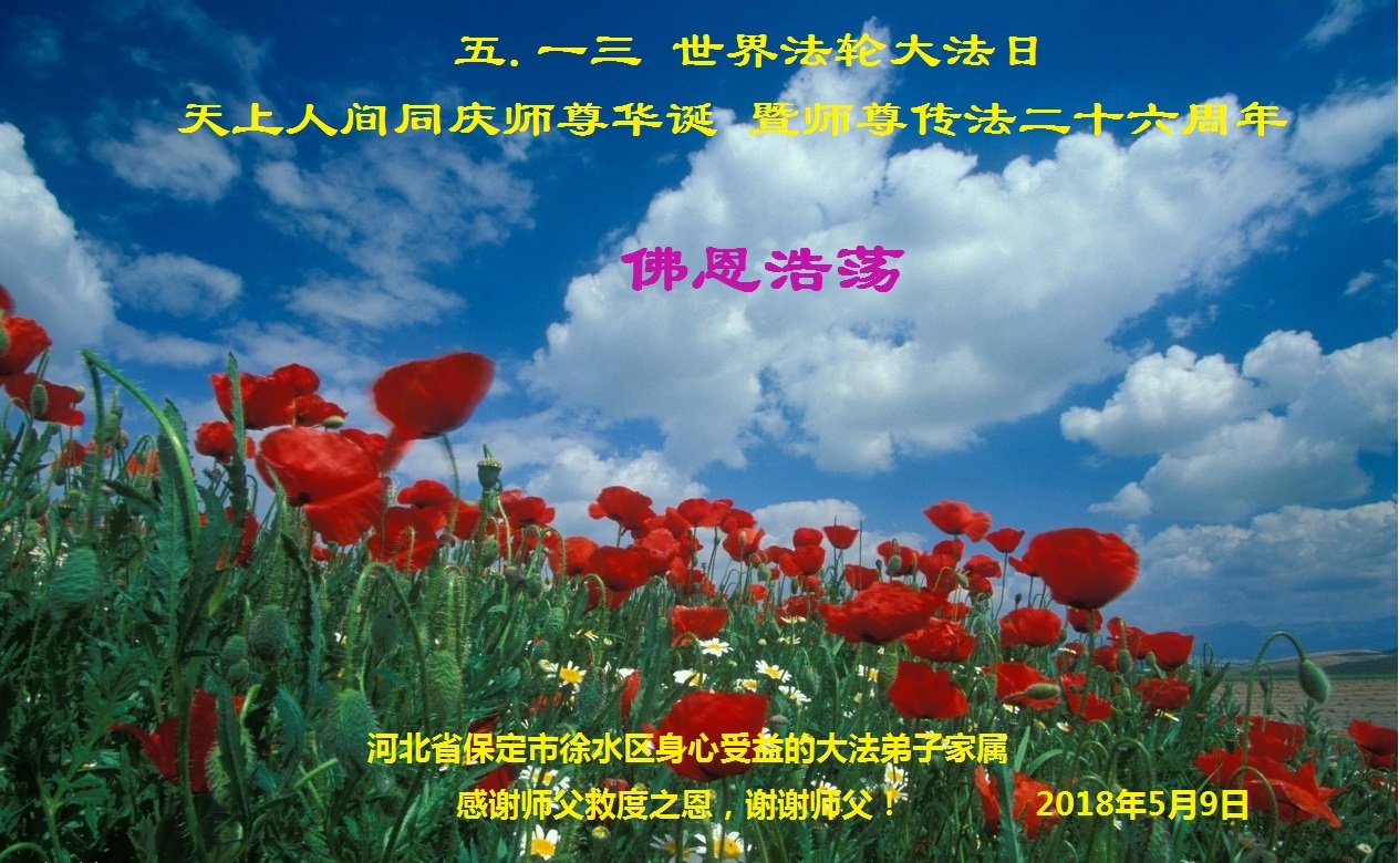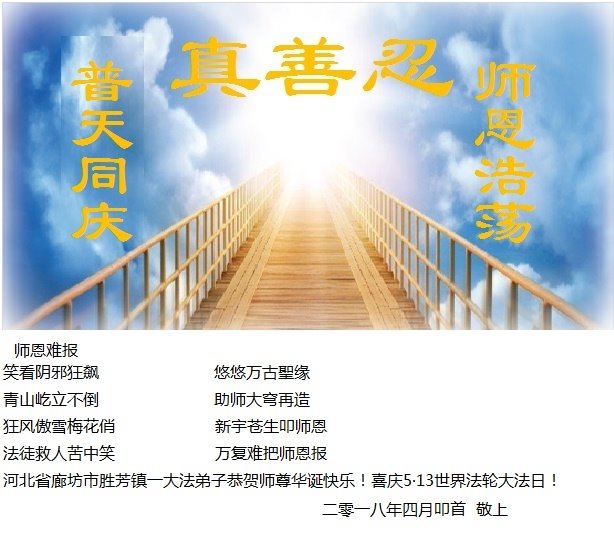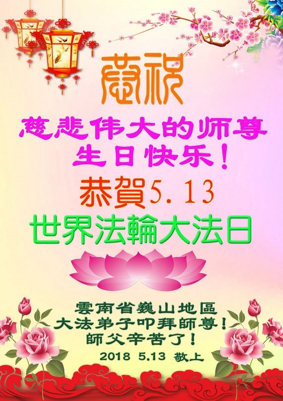 2018年5.13法轮大法日到来之际,弟子再一次敬谢师尊救度!师尊辛苦了!千言万语也无法表达师父的救度之恩!