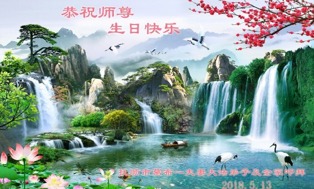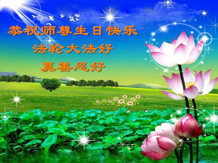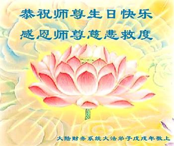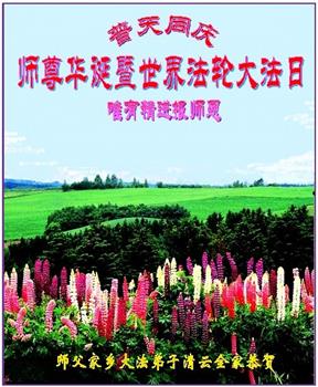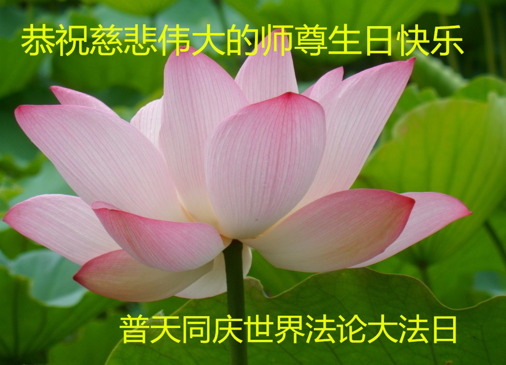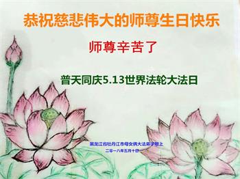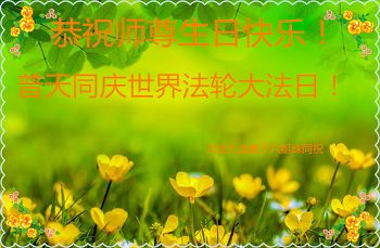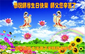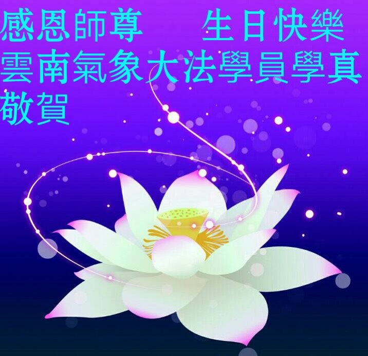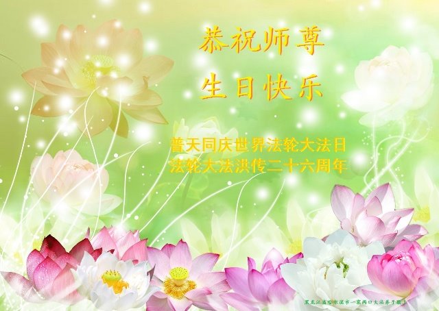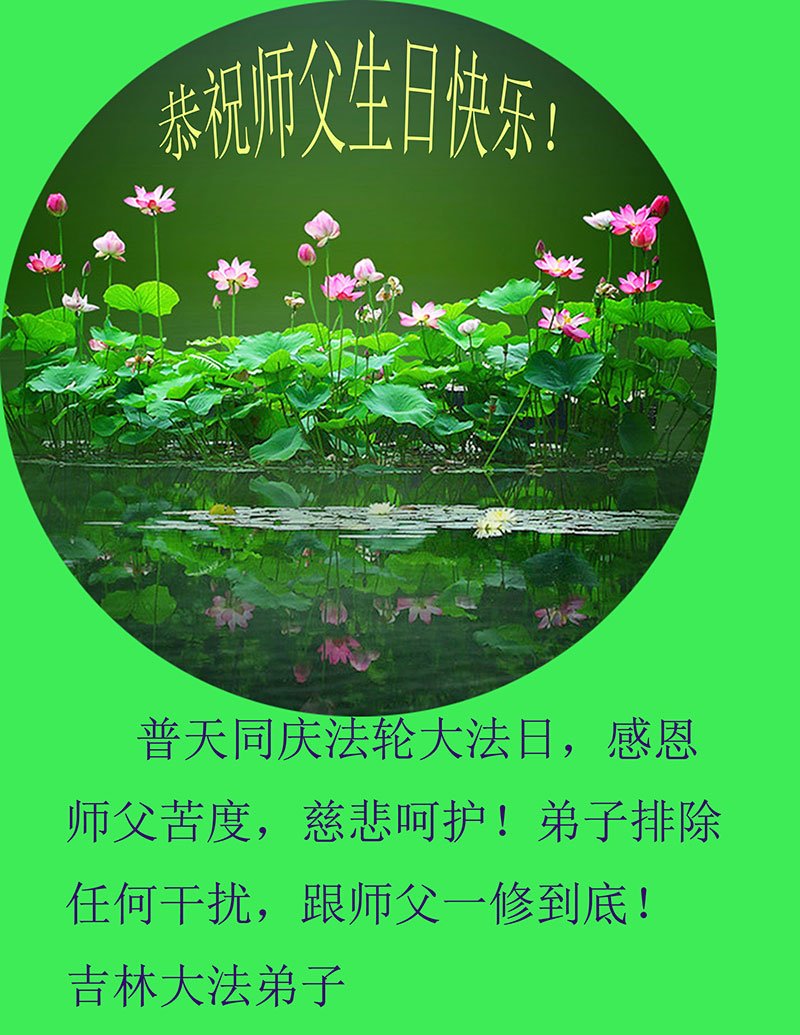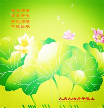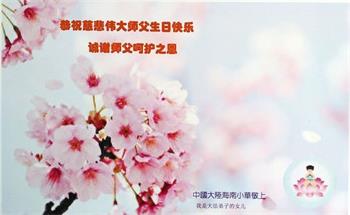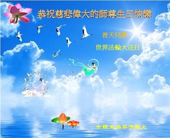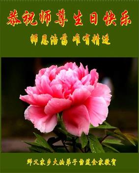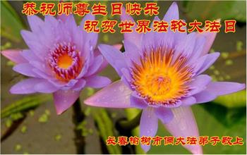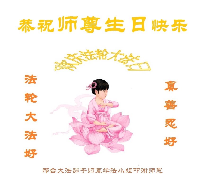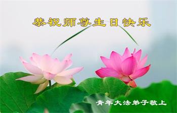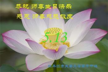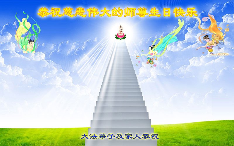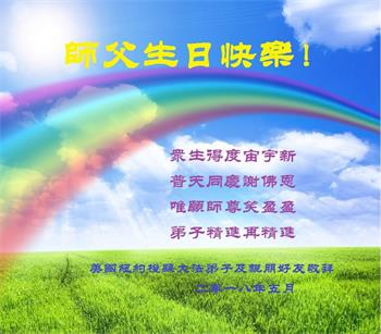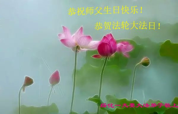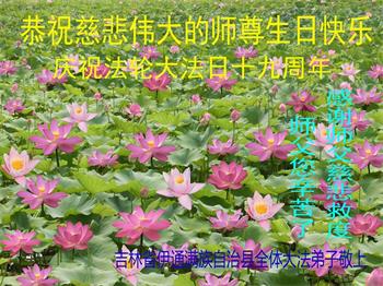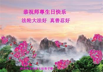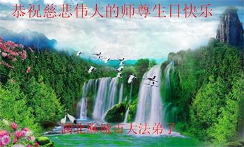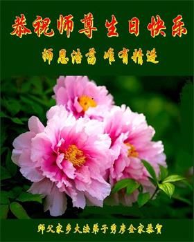 我们深谢恩师慈悲苦度!衷心恭祝师尊华诞快乐!在正法最后不多的时间里,我们一定会认真学好法,修好自己,从根本上改变常人的观念,正念正行,抓紧时间救度更多众生,完成正法时期大法弟子的历史使命,圆满跟随师尊回归家园。