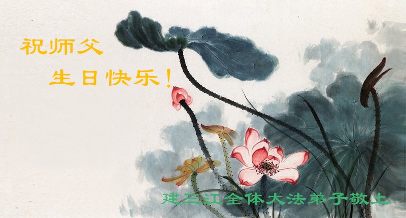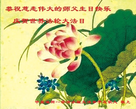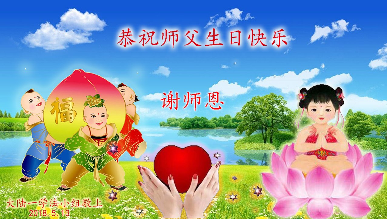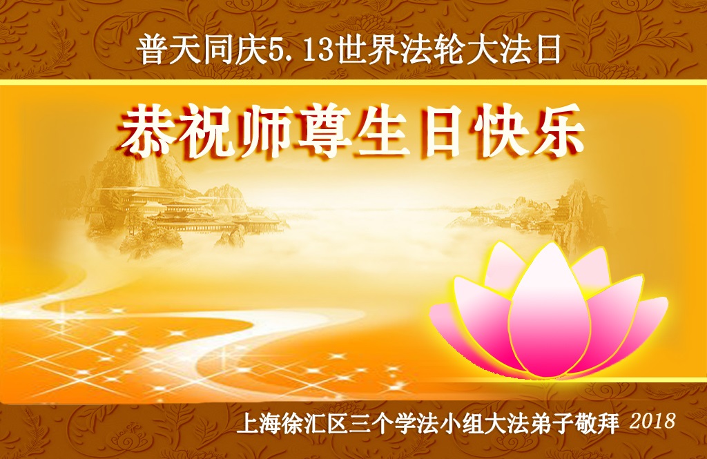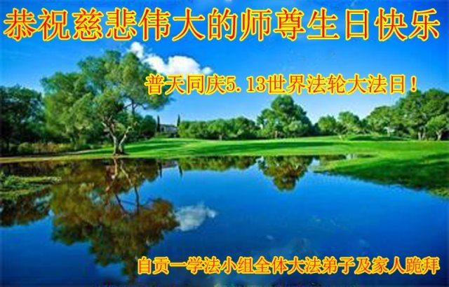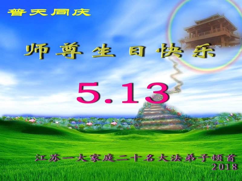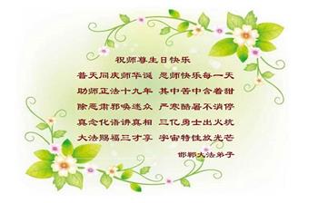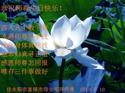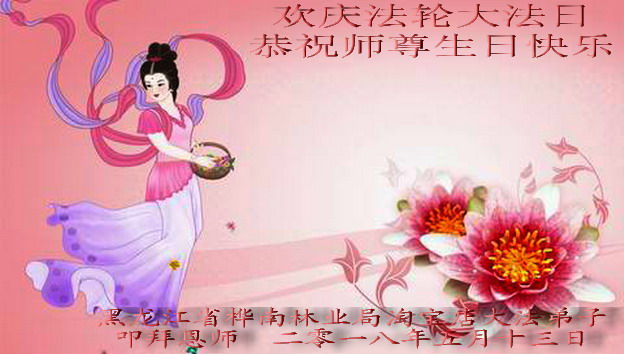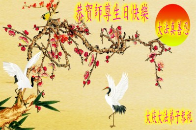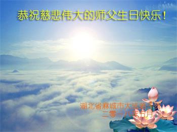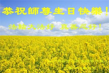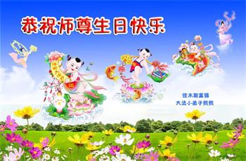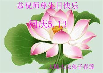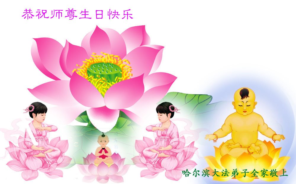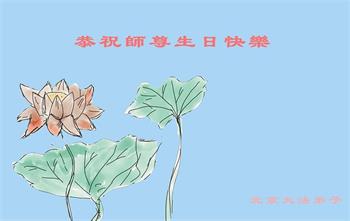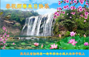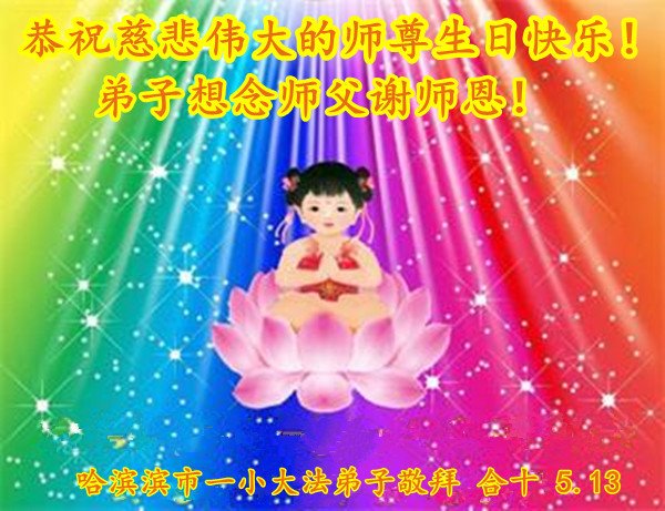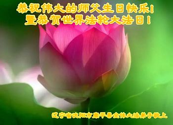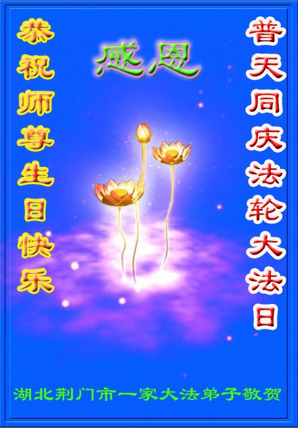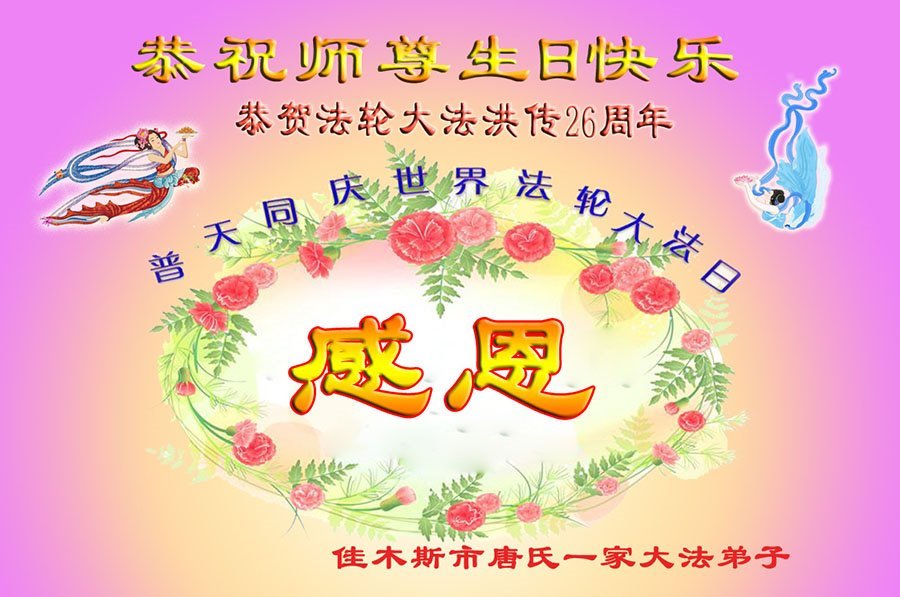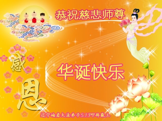 我们深谢恩师慈悲苦度!衷心恭祝师尊华诞快乐!在正法最后不多的时间里,我们一定会认真学好法,修好自己,从根本上改变常人的观念,正念正行,抓紧时间救度更多众生,完成正法时期大法弟子的历史使命,圆满跟随师尊回归家园。