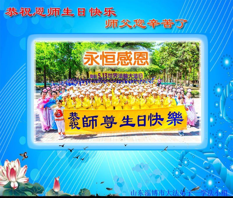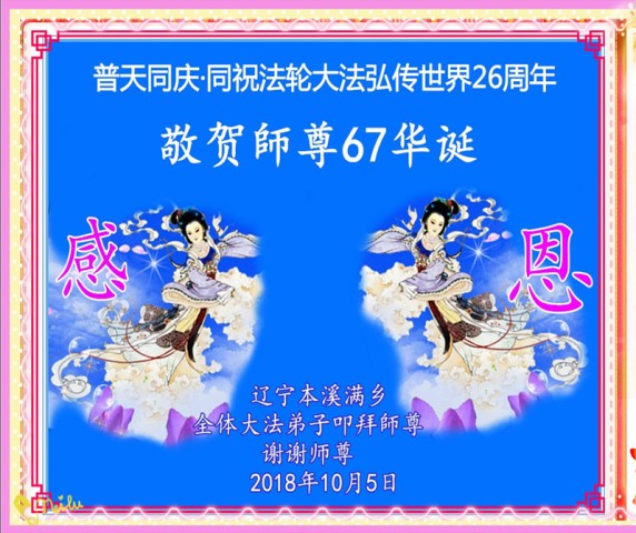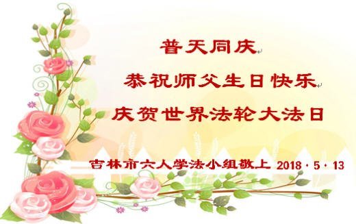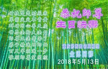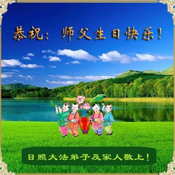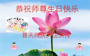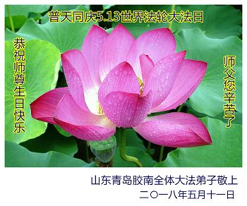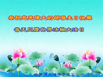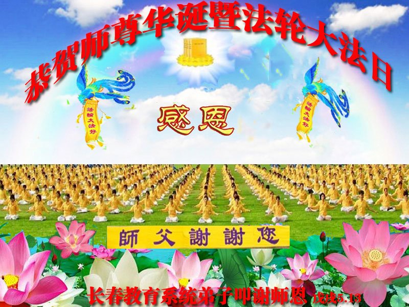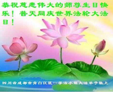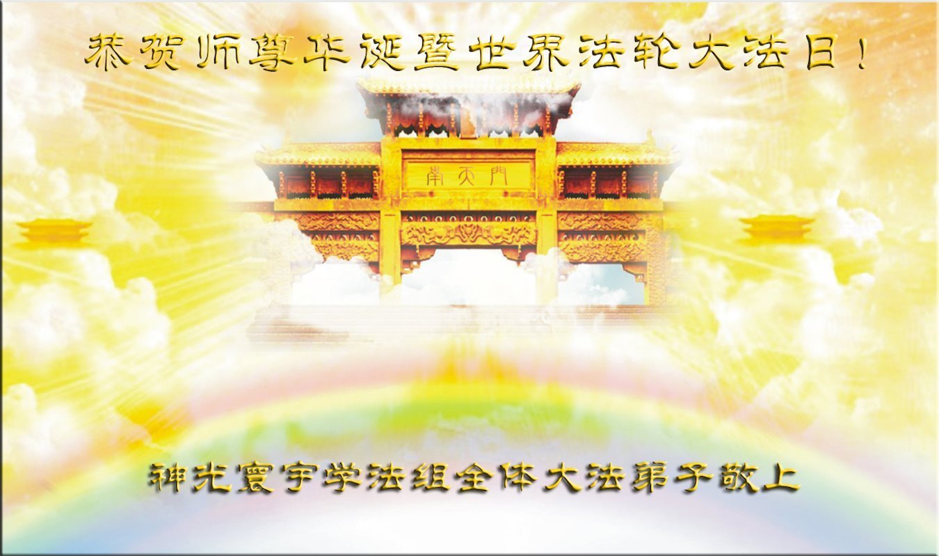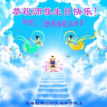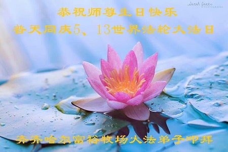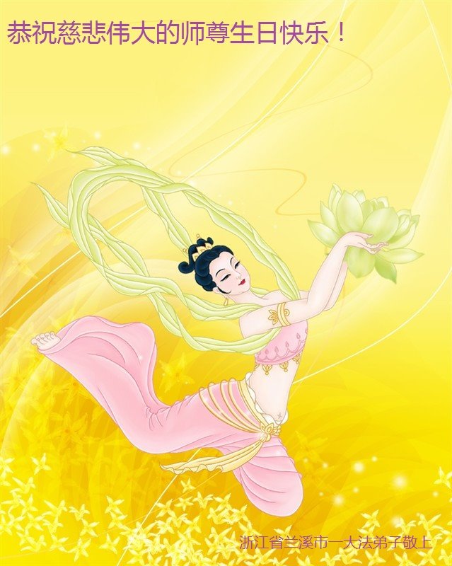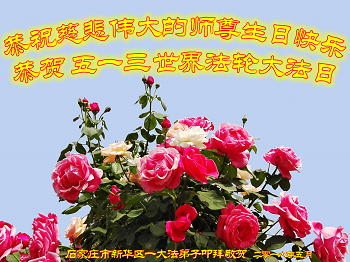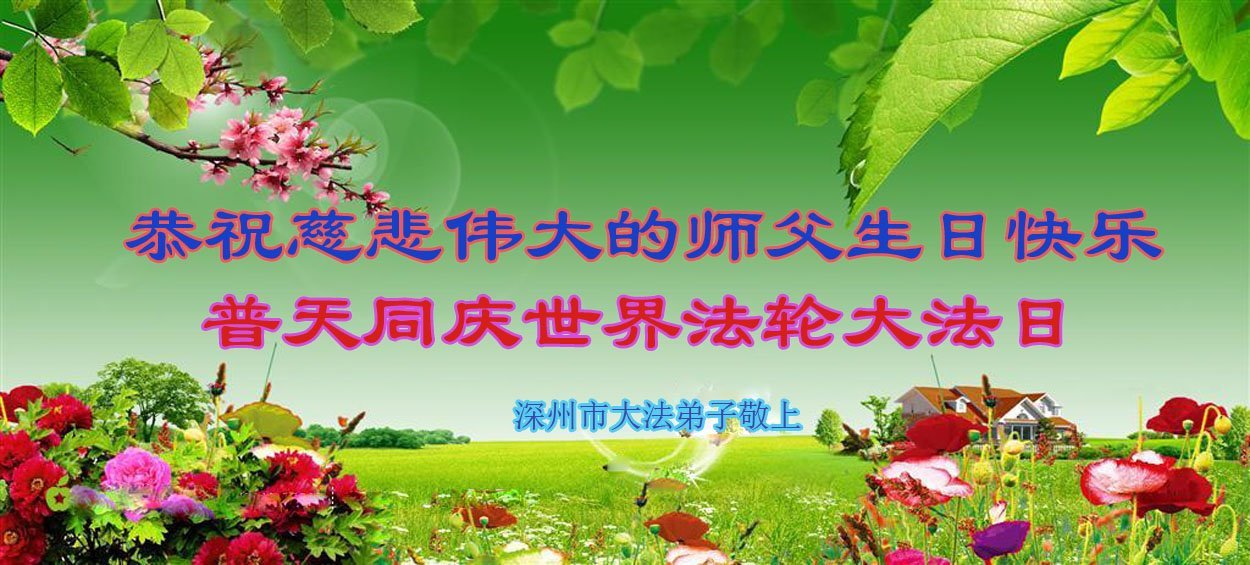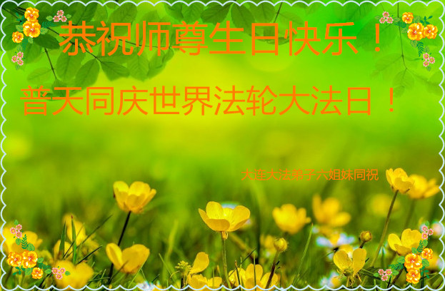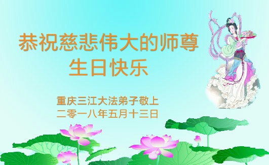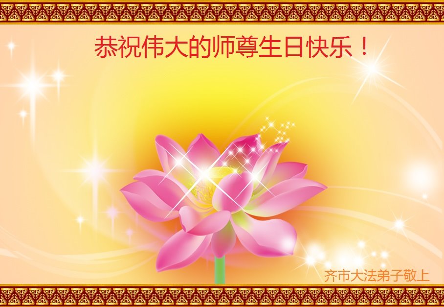 我们深谢恩师慈悲苦度!衷心恭祝师尊华诞快乐!在正法最后不多的时间里,我们一定会认真学好法,修好自己,从根本上改变常人的观念,正念正行,抓紧时间救度更多众生,完成正法时期大法弟子的历史使命,圆满跟随师尊回归家园。