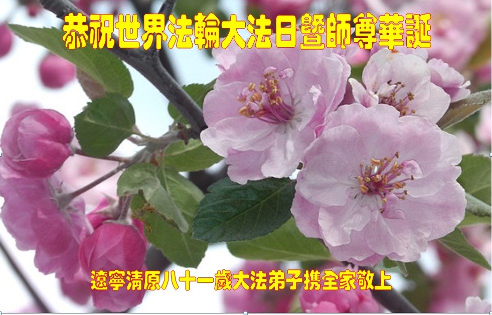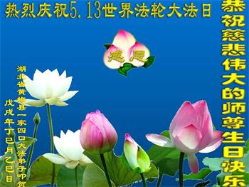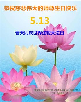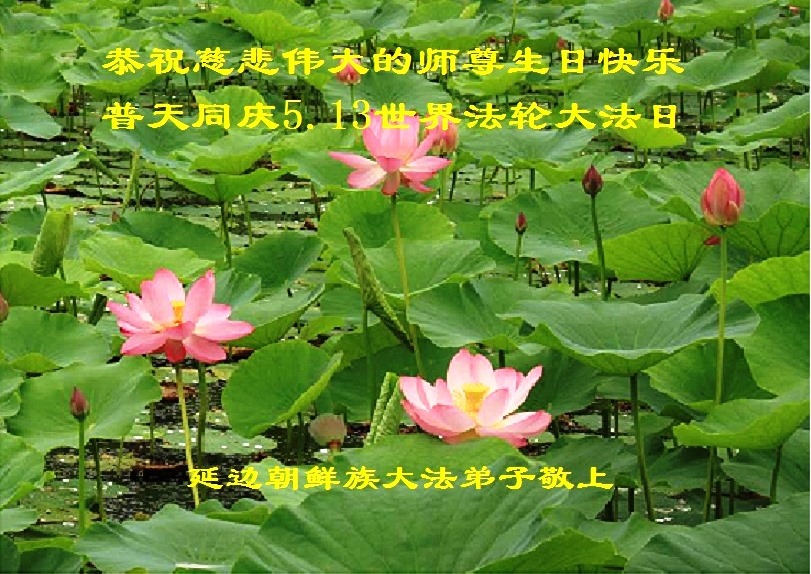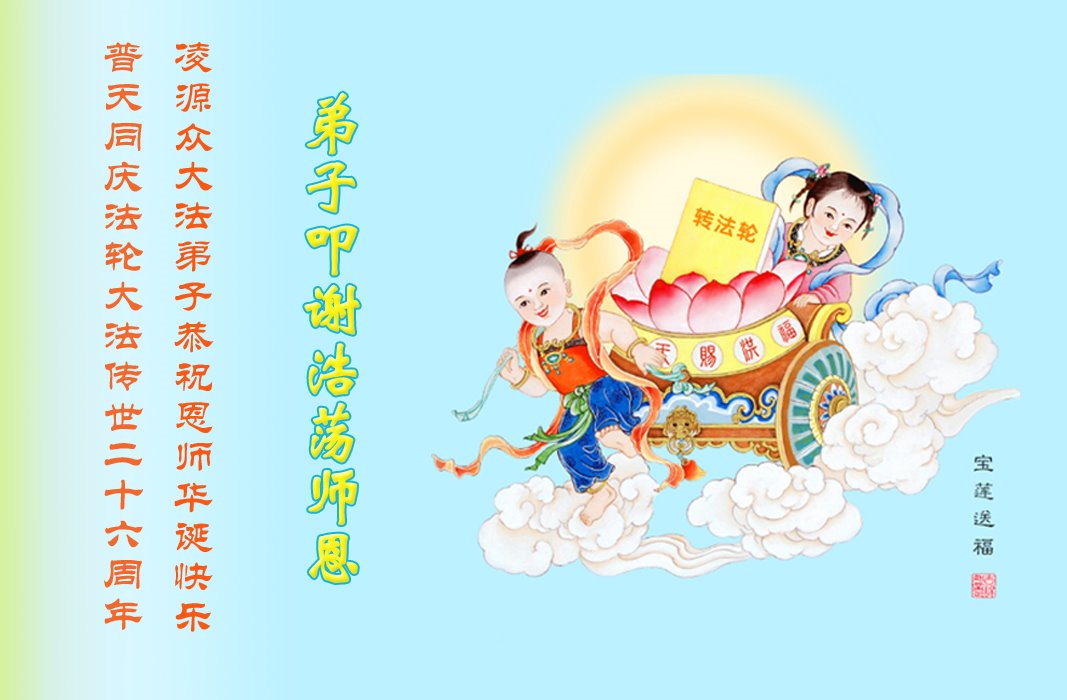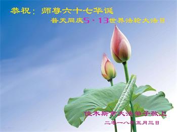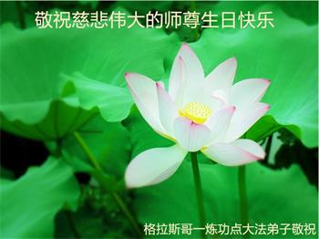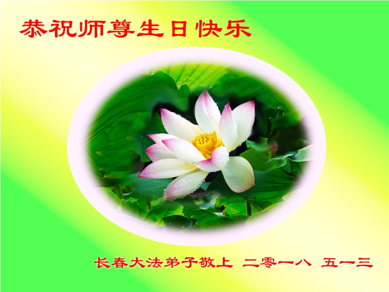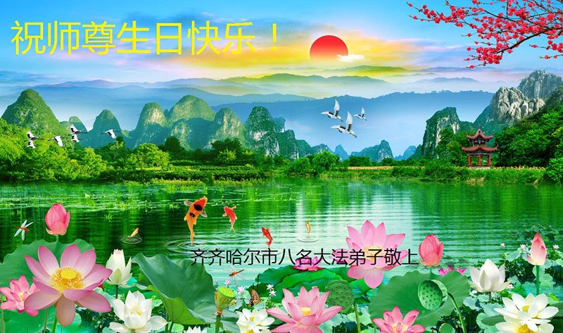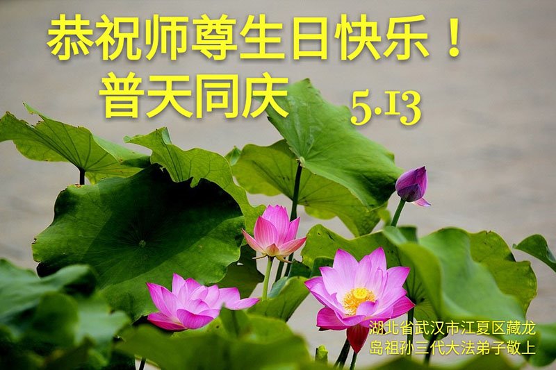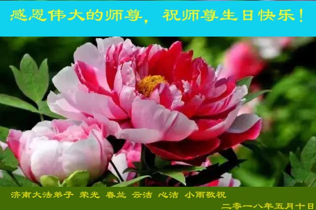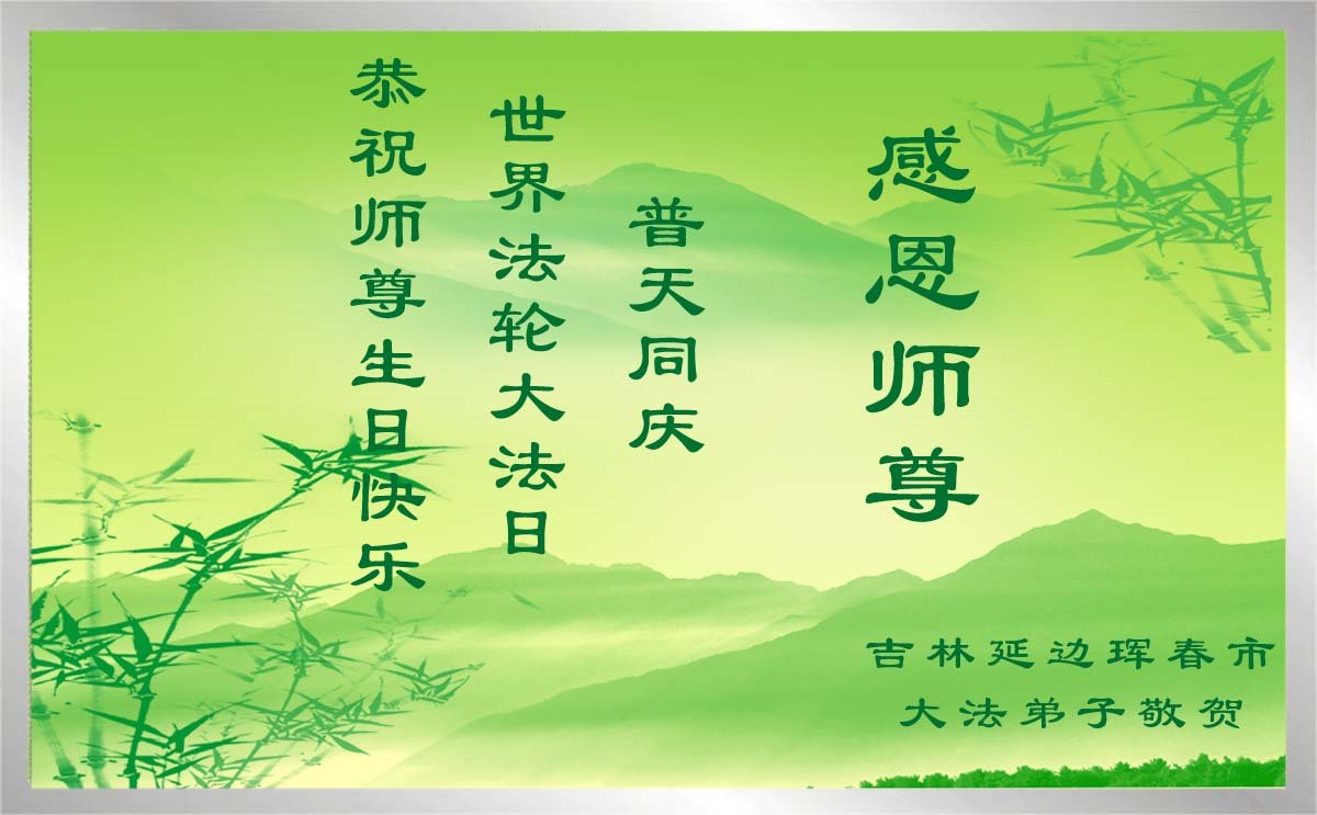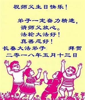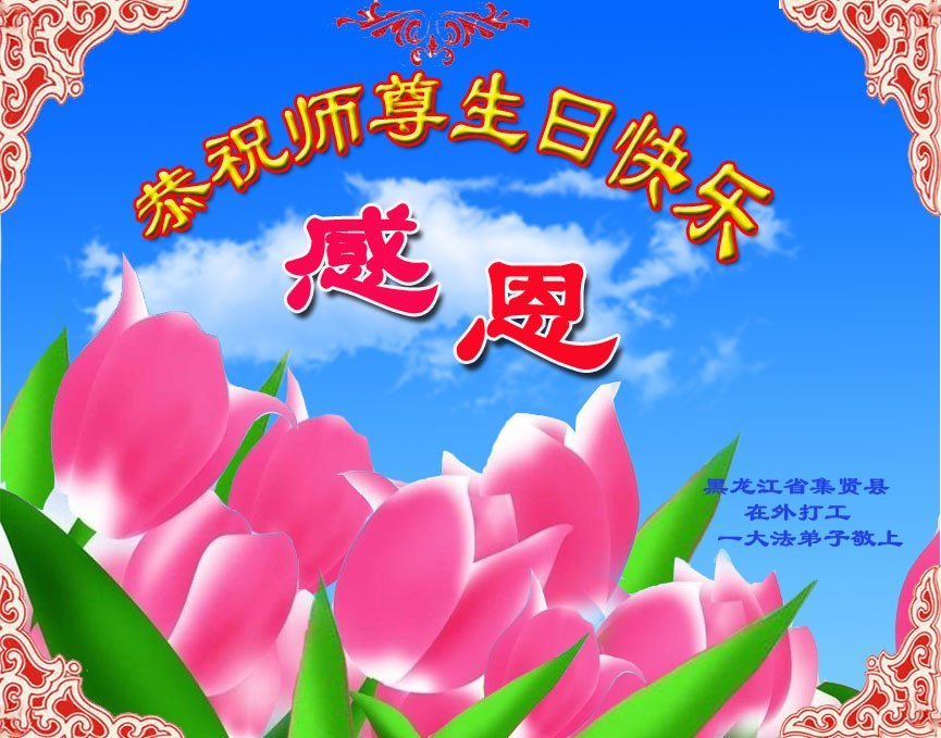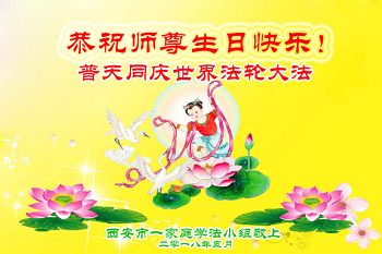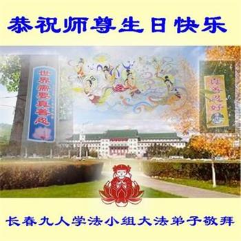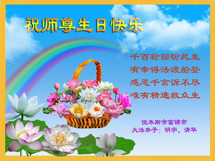 我们深谢恩师慈悲苦度!衷心恭祝师尊华诞快乐!在正法最后不多的时间里,我们一定会认真学好法,修好自己,从根本上改变常人的观念,正念正行,抓紧时间救度更多众生,完成正法时期大法弟子的历史使命,圆满跟随师尊回归家园。