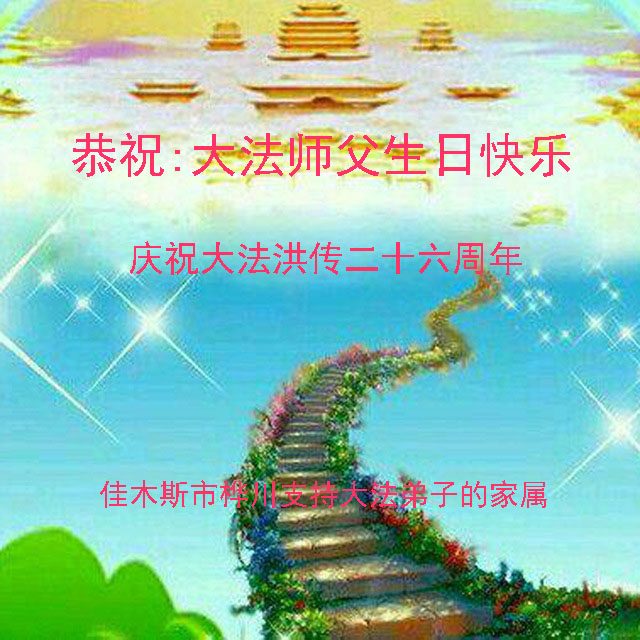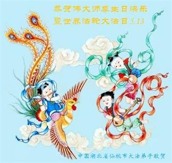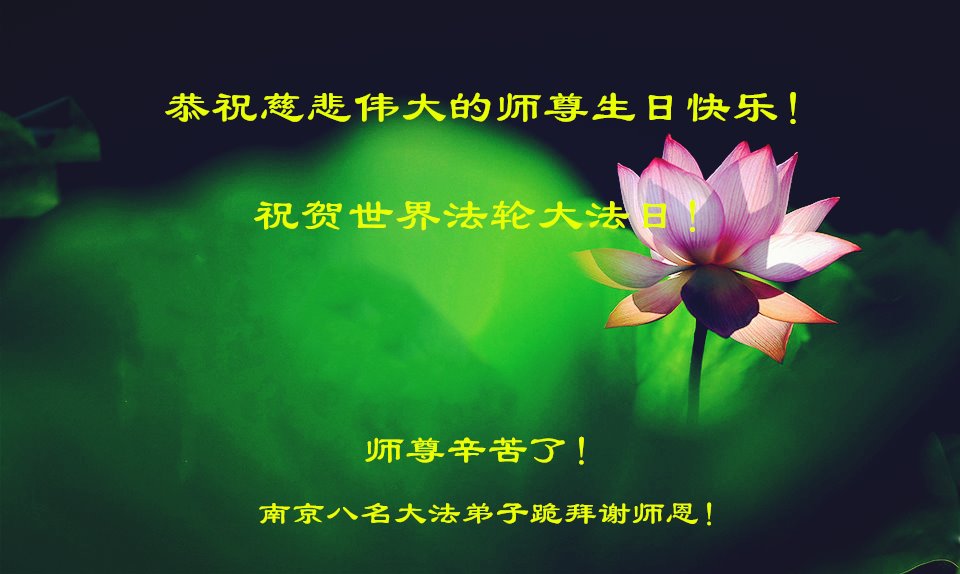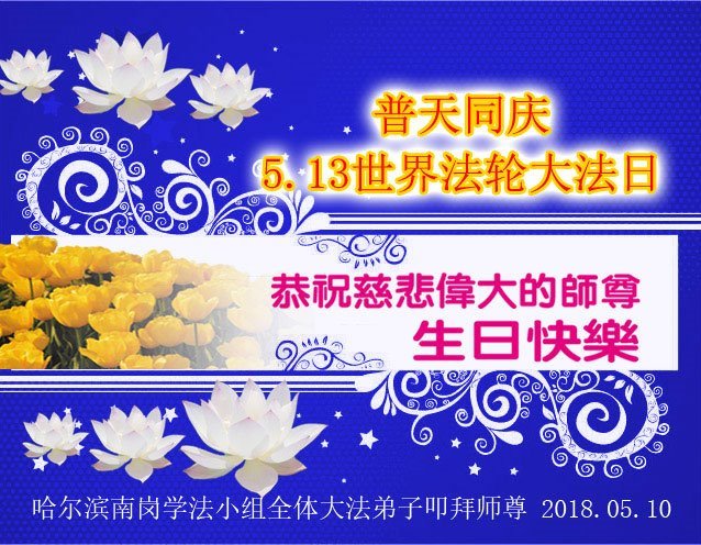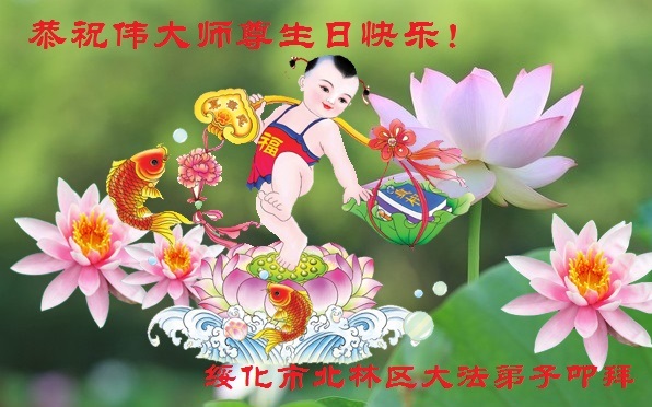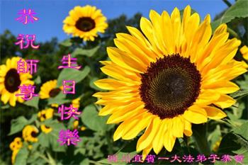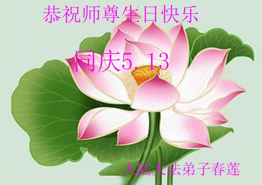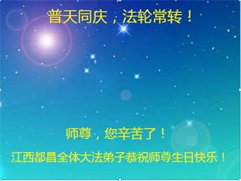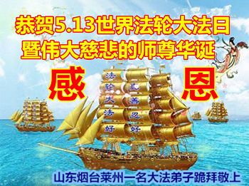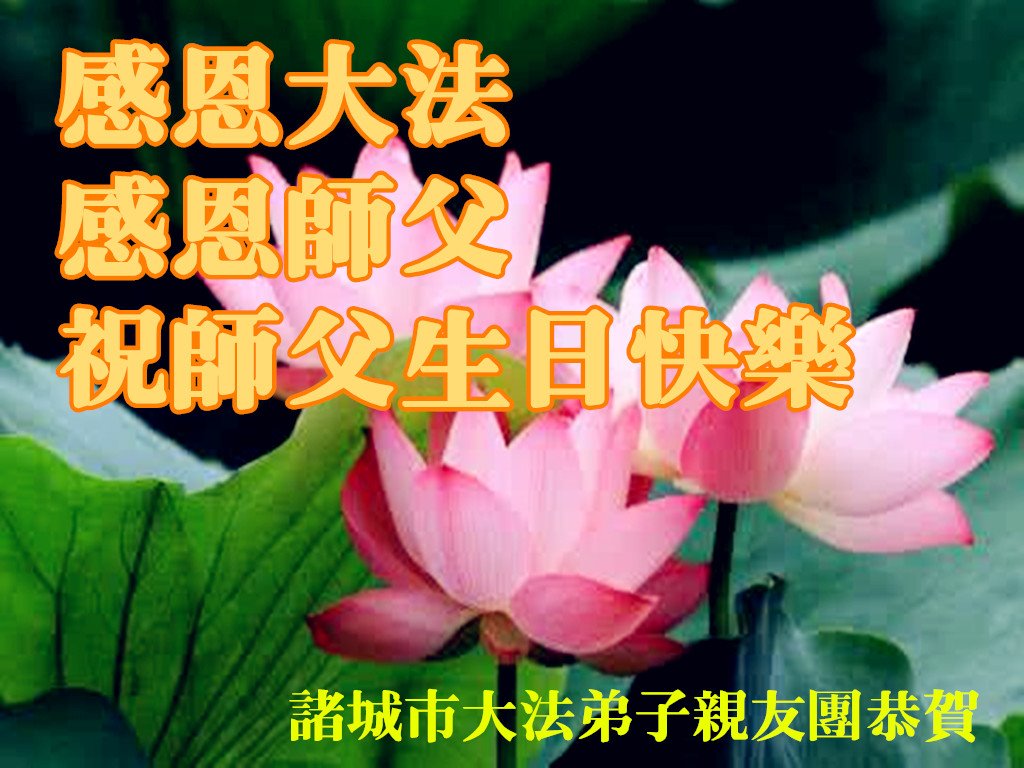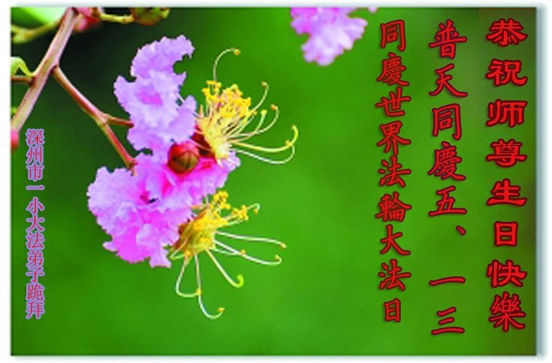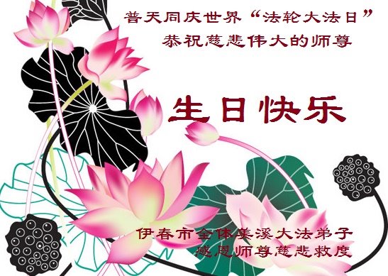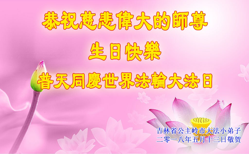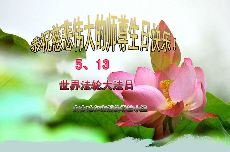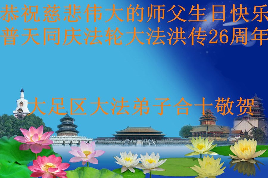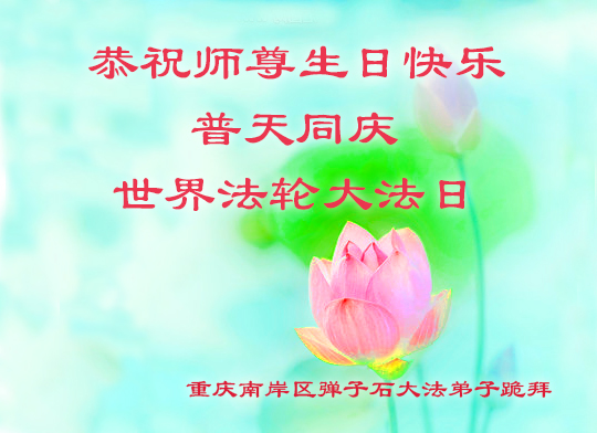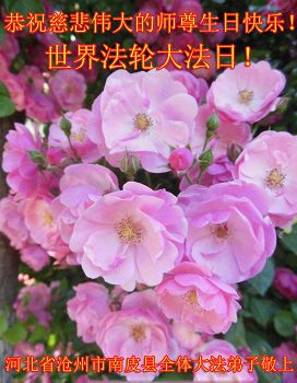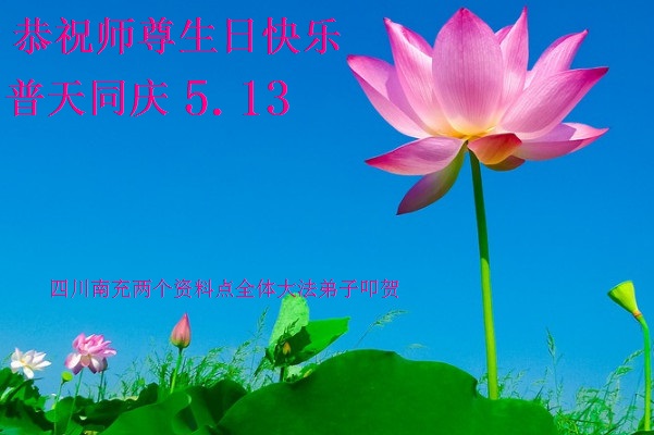 我们深谢恩师慈悲苦度!衷心恭祝师尊华诞快乐!在正法最后不多的时间里,我们一定会认真学好法,修好自己,从根本上改变常人的观念,正念正行,抓紧时间救度更多众生,完成正法时期大法弟子的历史使命,圆满跟随师尊回归家园。