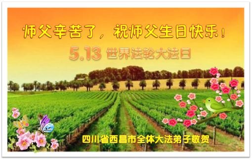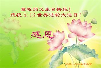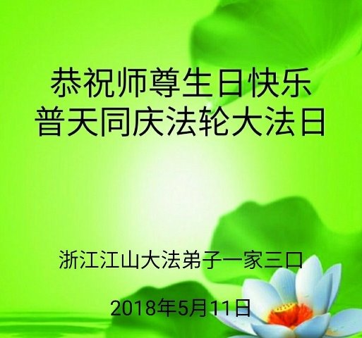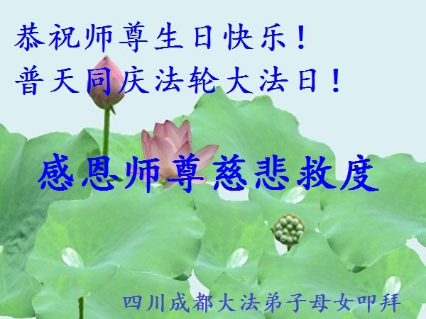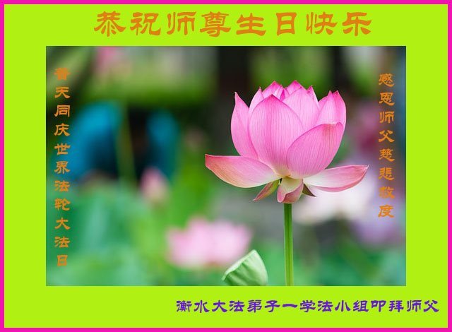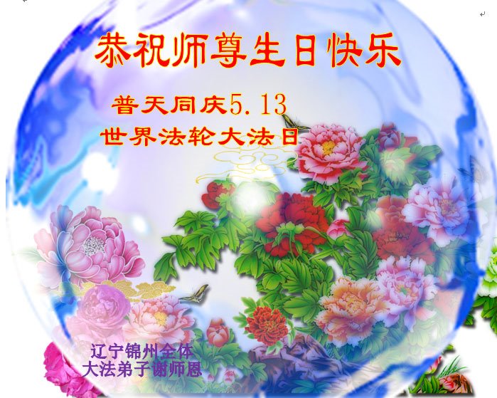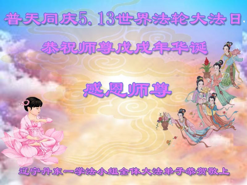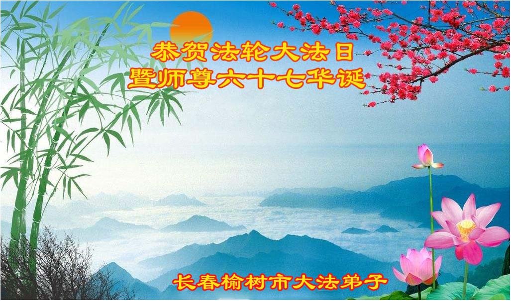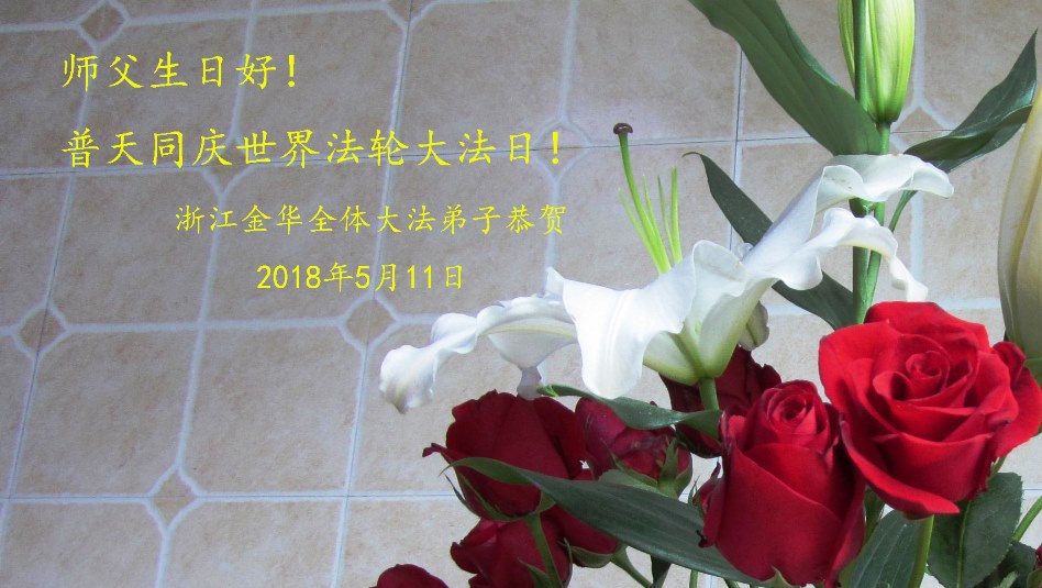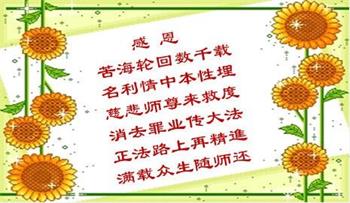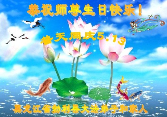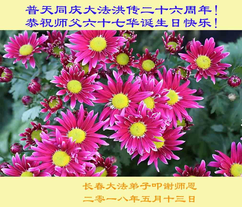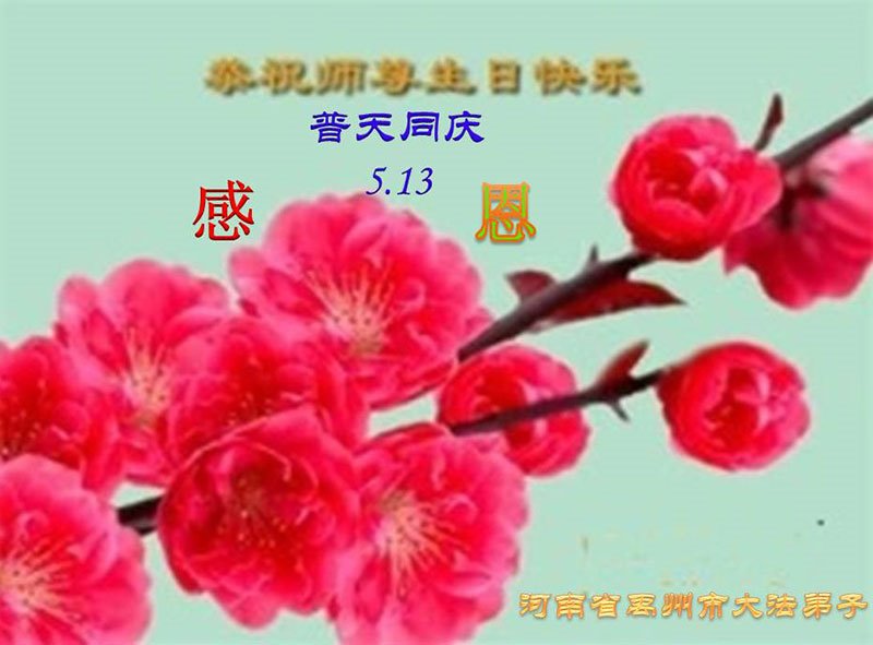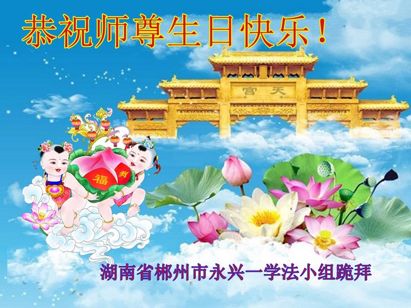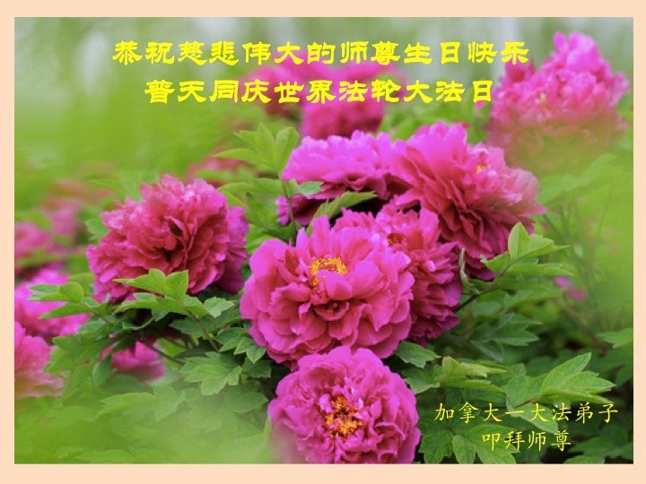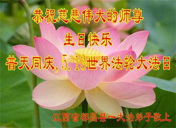 我们深谢恩师慈悲苦度!衷心恭祝师尊华诞快乐!在正法最后不多的时间里,我们一定会认真学好法,修好自己,从根本上改变常人的观念,正念正行,抓紧时间救度更多众生,完成正法时期大法弟子的历史使命,圆满跟随师尊回归家园。