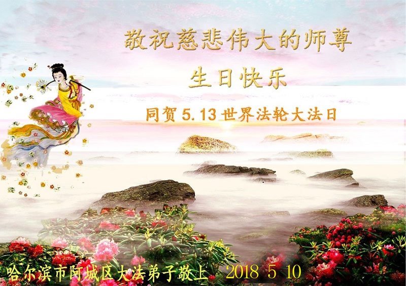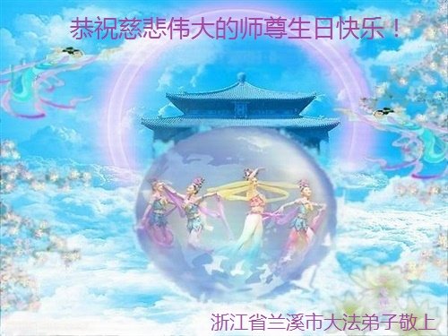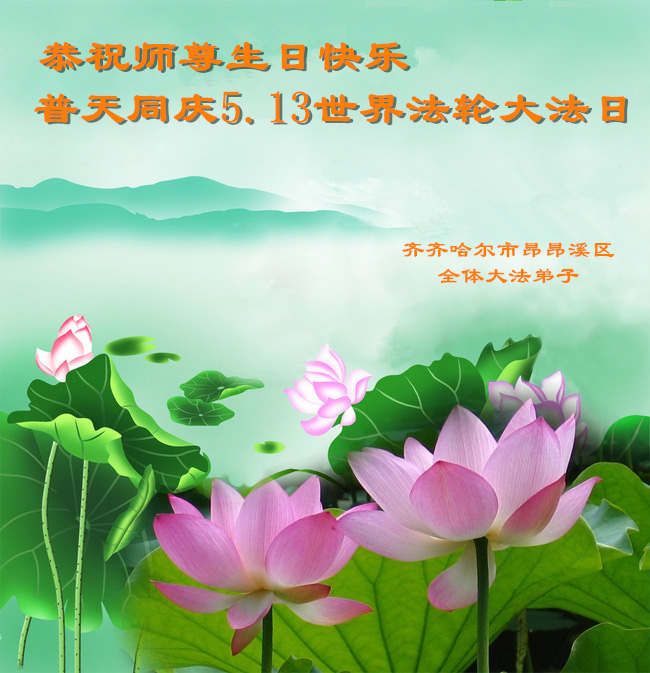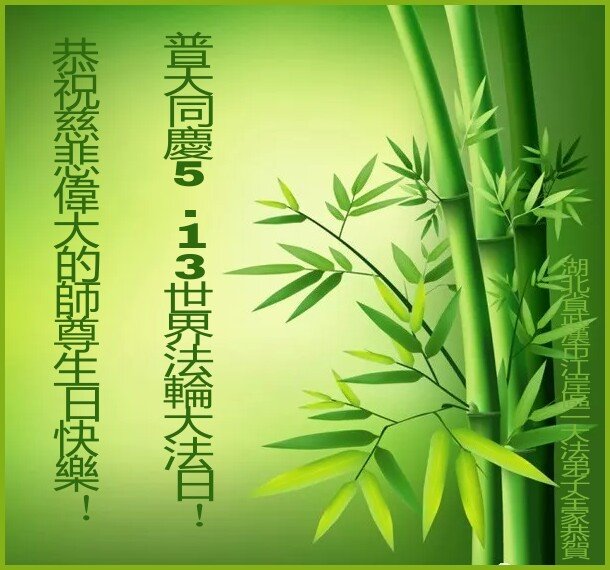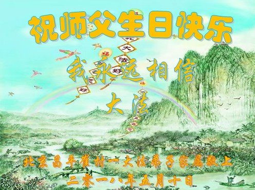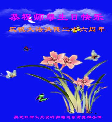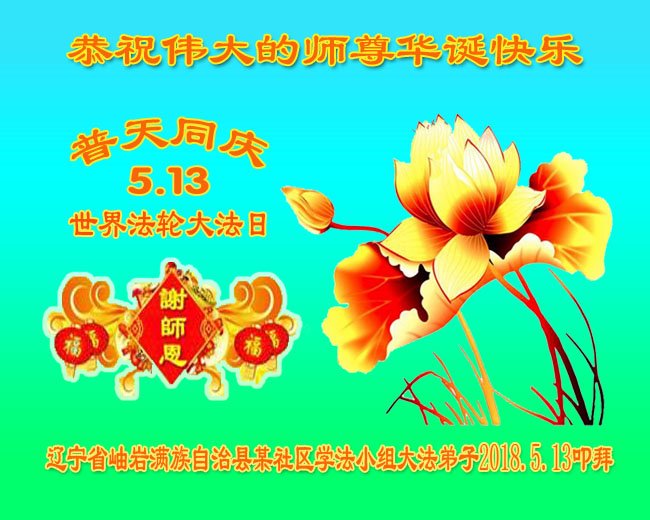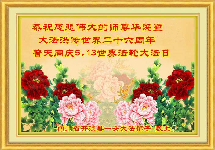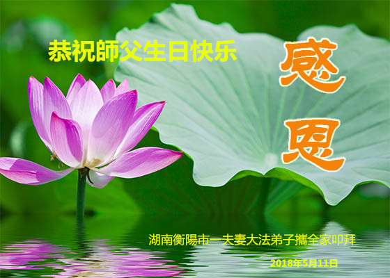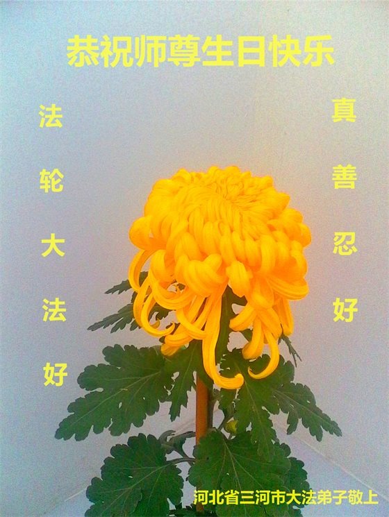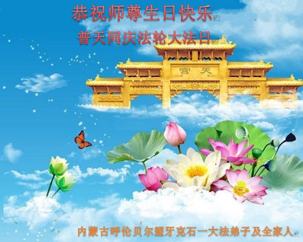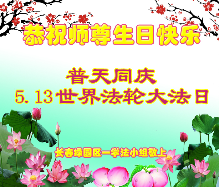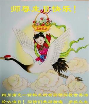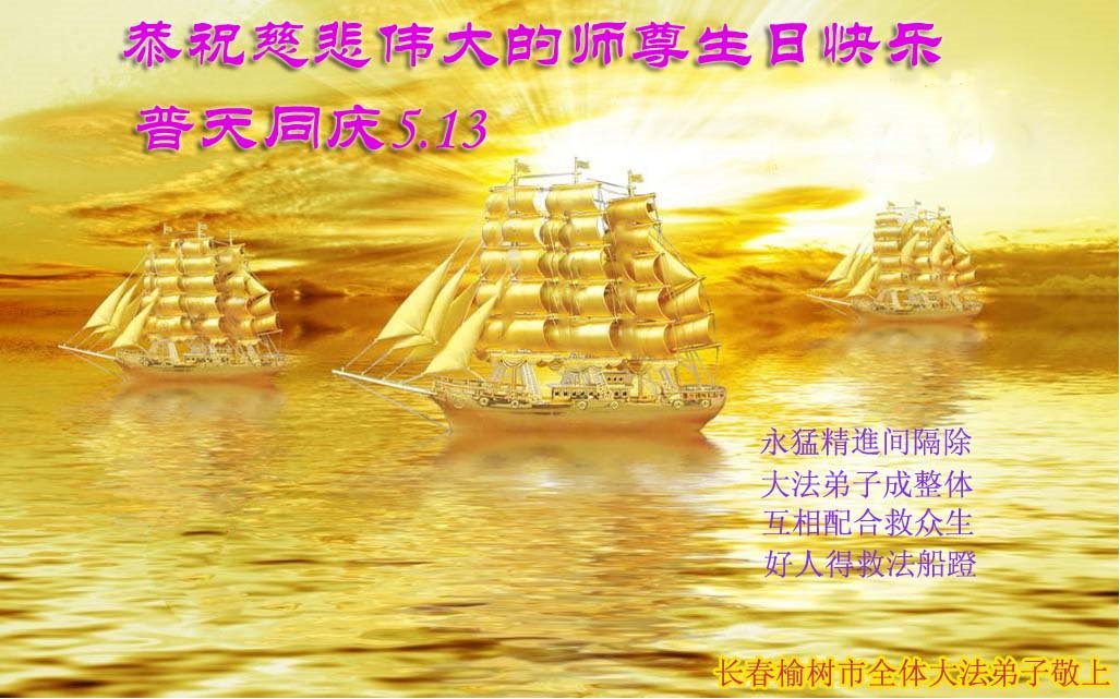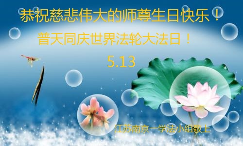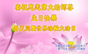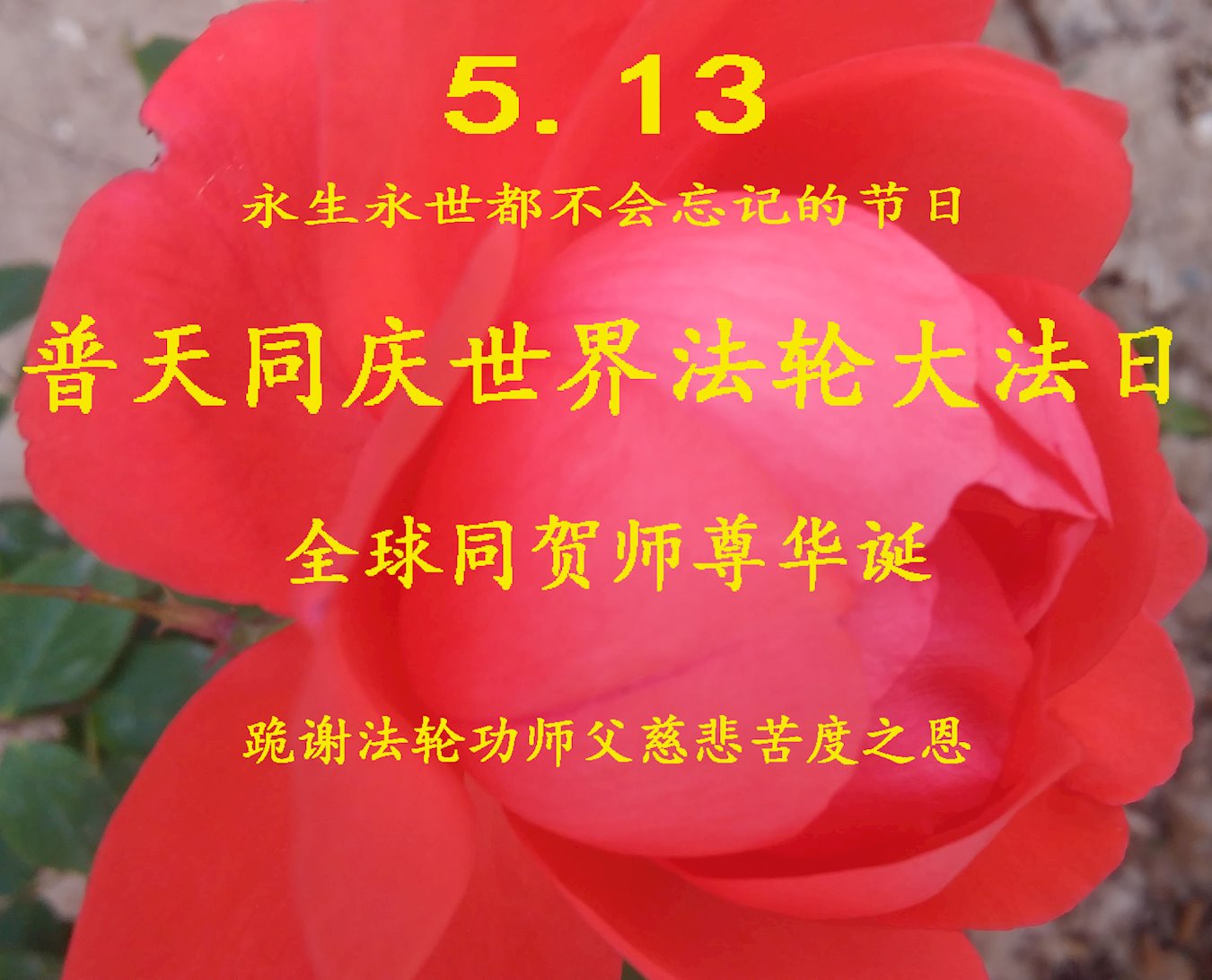 我们深谢恩师慈悲苦度!衷心恭祝师尊华诞快乐!在正法最后不多的时间里,我们一定会认真学好法,修好自己,从根本上改变常人的观念,正念正行,抓紧时间救度更多众生,完成正法时期大法弟子的历史使命,圆满跟随师尊回归家园。