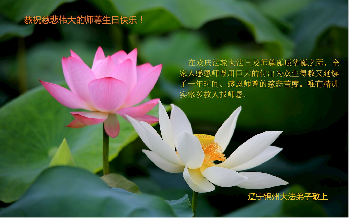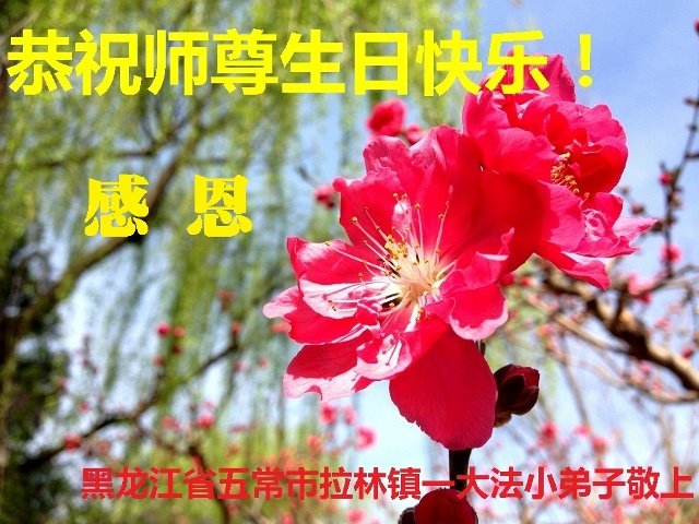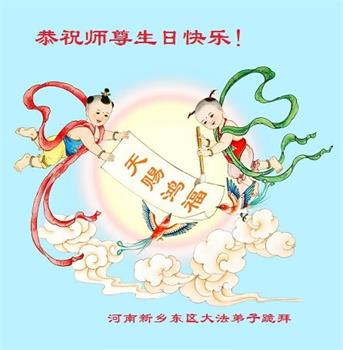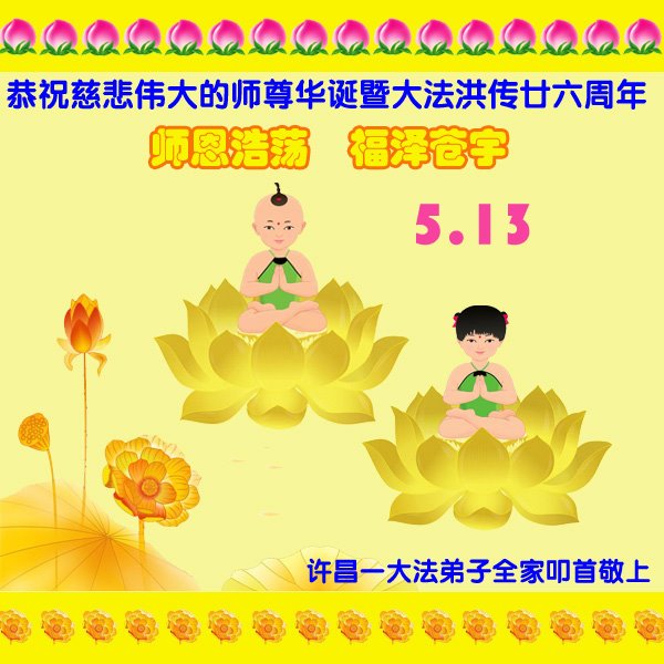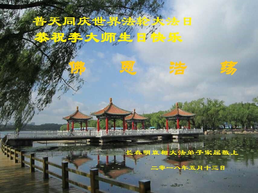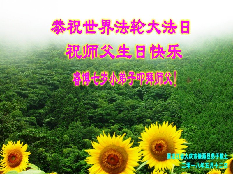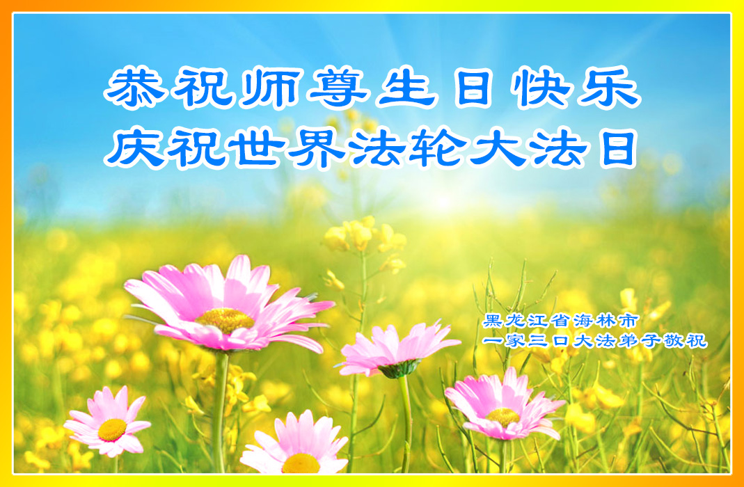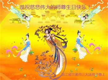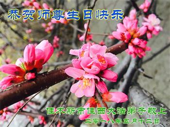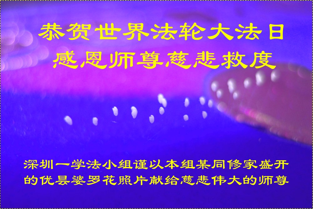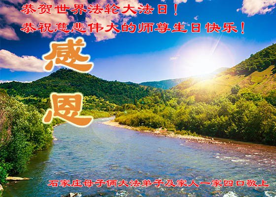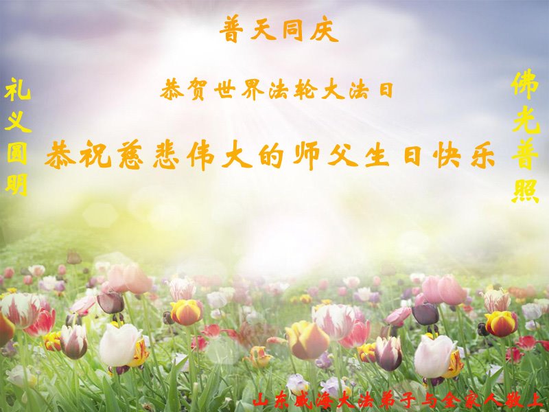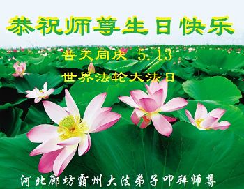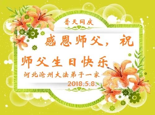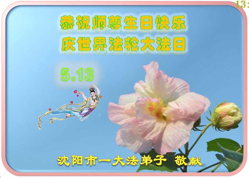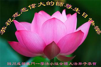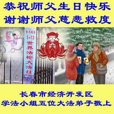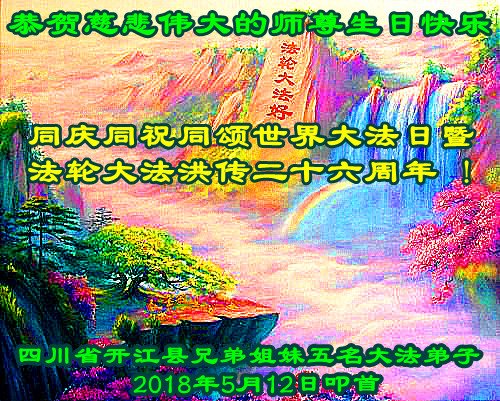 我们深谢恩师慈悲苦度!衷心恭祝师尊华诞快乐!在正法最后不多的时间里,我们一定会认真学好法,修好自己,从根本上改变常人的观念,正念正行,抓紧时间救度更多众生,完成正法时期大法弟子的历史使命,圆满跟随师尊回归家园。