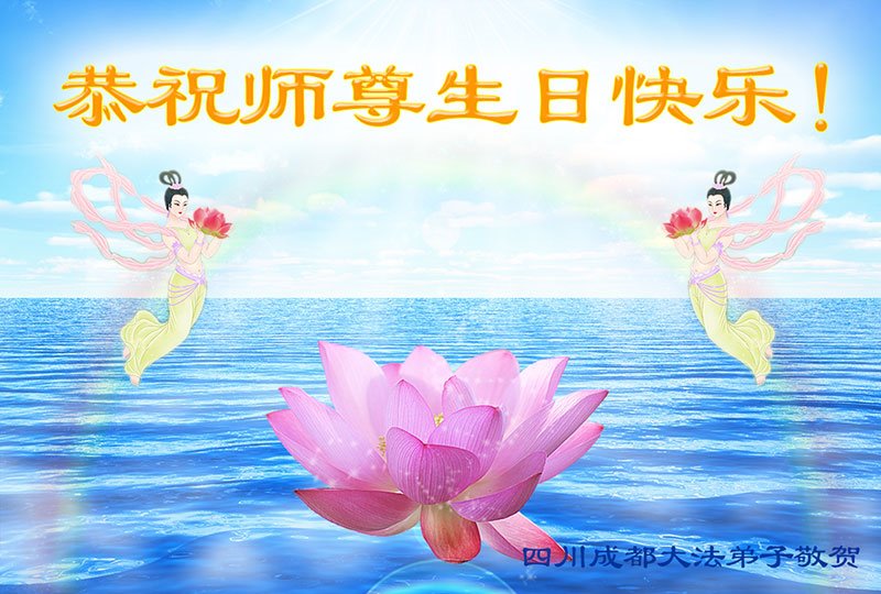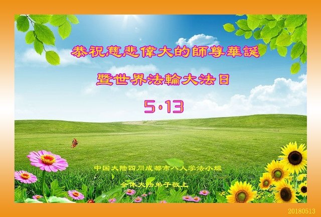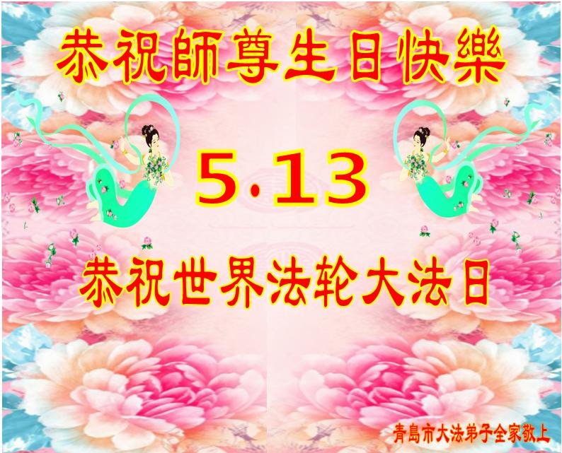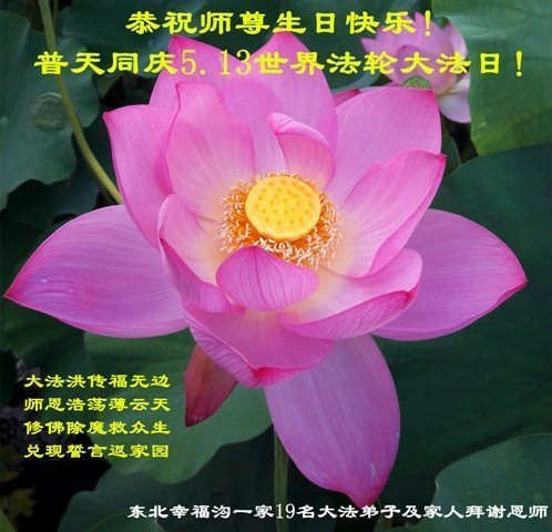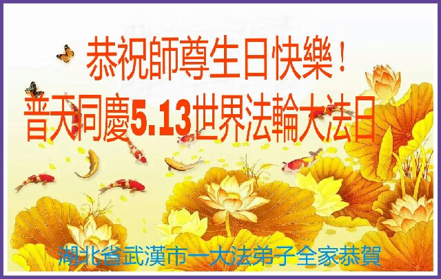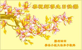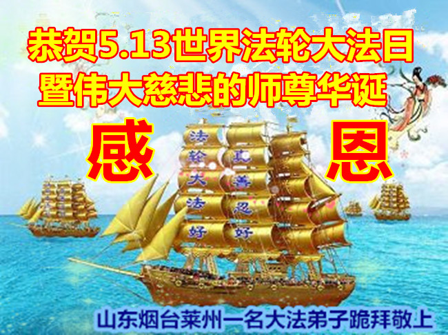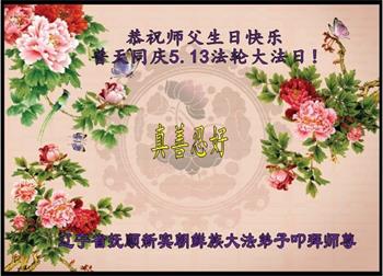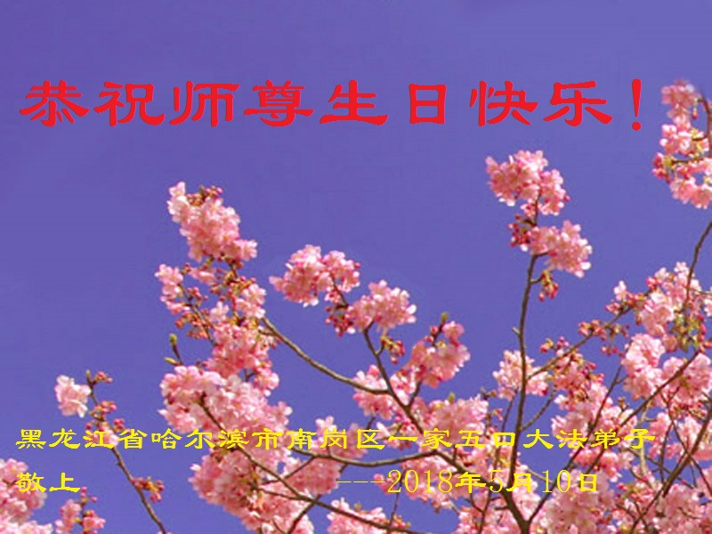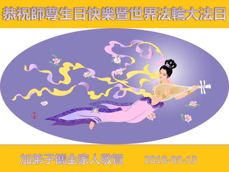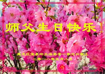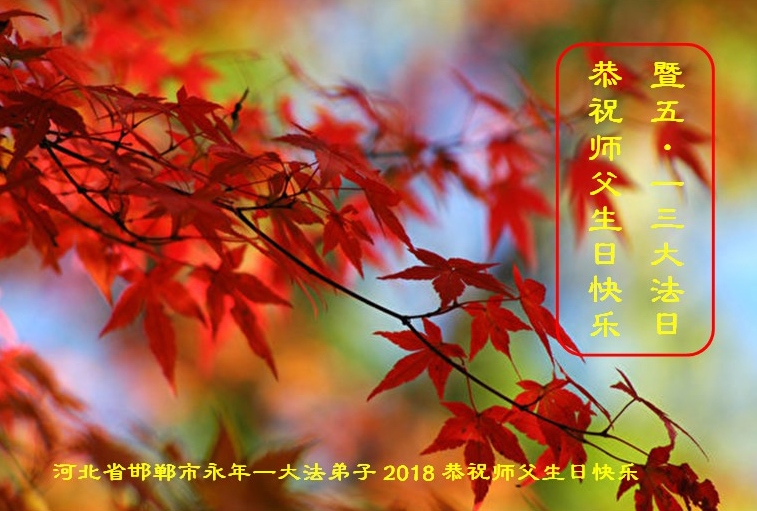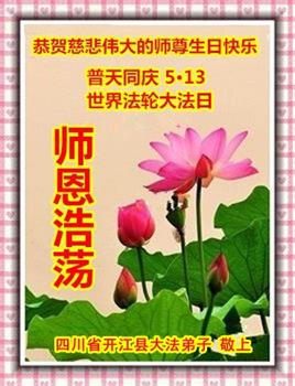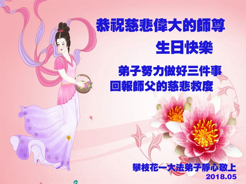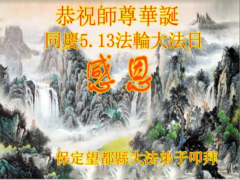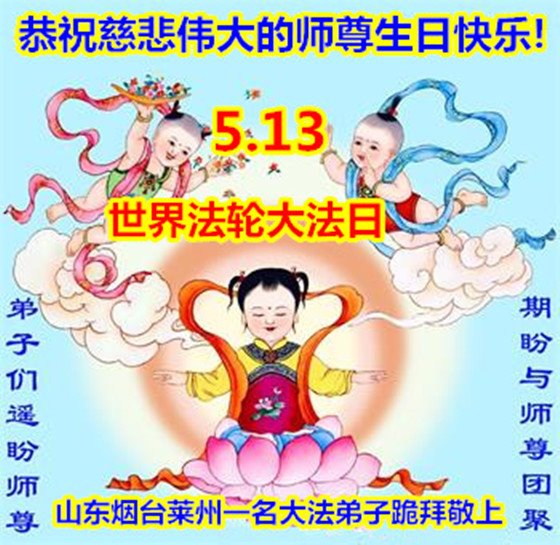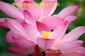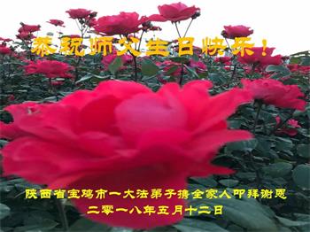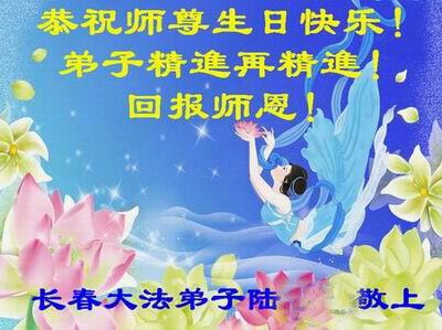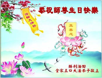 我们深谢恩师慈悲苦度!衷心恭祝师尊华诞快乐!在正法最后不多的时间里,我们一定会认真学好法,修好自己,从根本上改变常人的观念,正念正行,抓紧时间救度更多众生,完成正法时期大法弟子的历史使命,圆满跟随师尊回归家园。