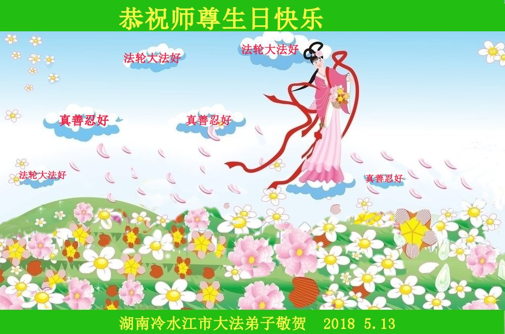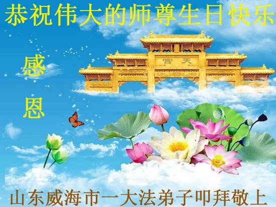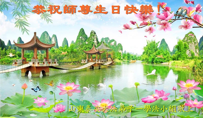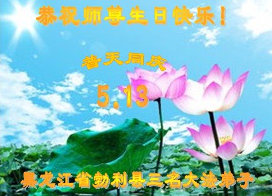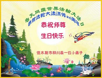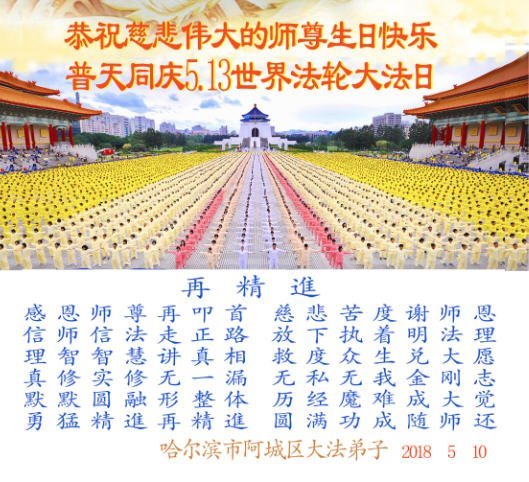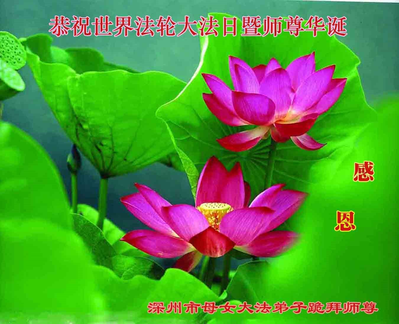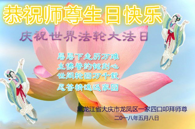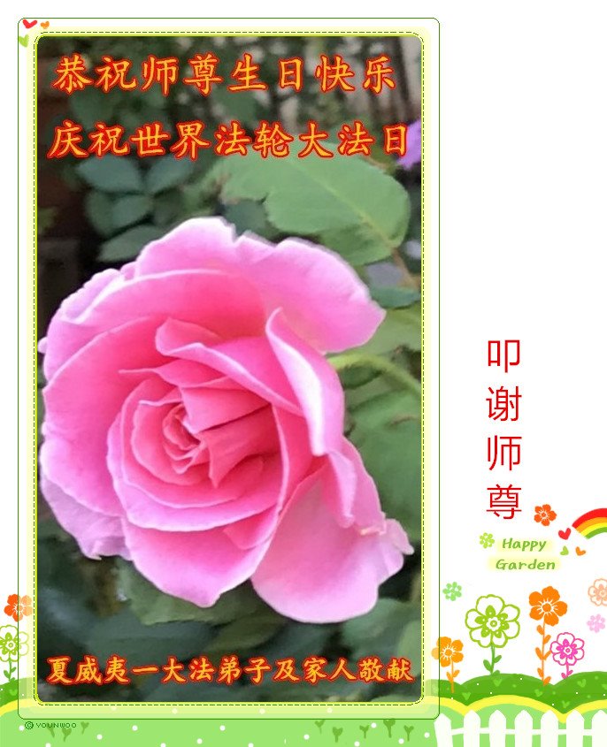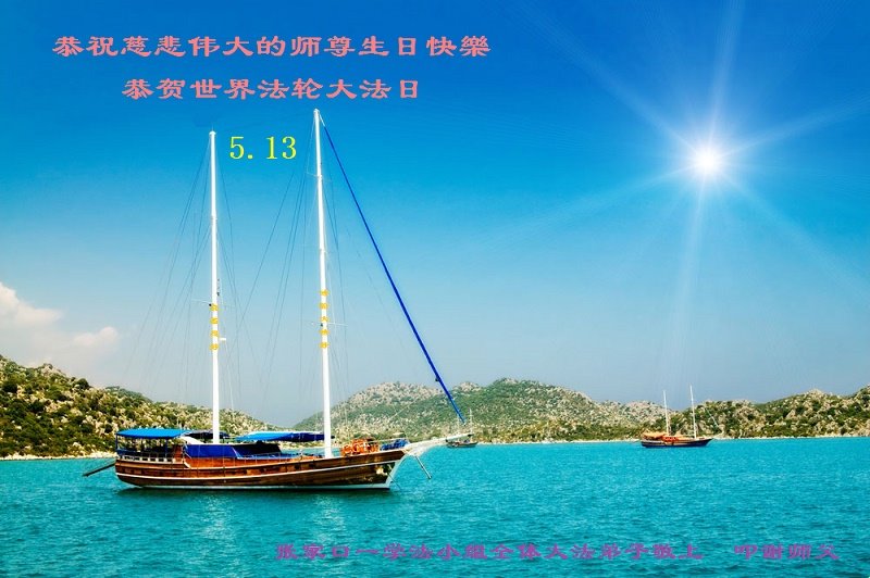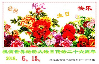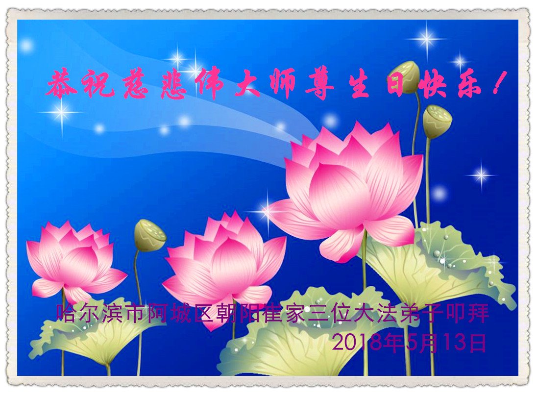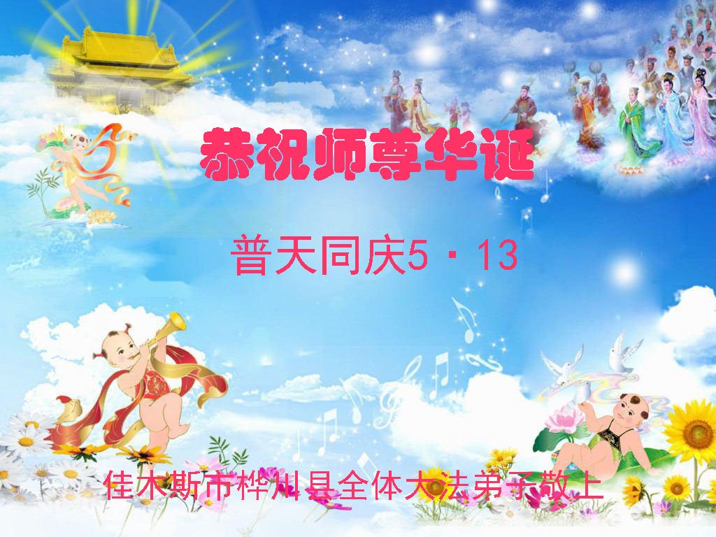 我们深谢恩师慈悲苦度!衷心恭祝师尊华诞快乐!在正法最后不多的时间里,我们一定会认真学好法,修好自己,从根本上改变常人的观念,正念正行,抓紧时间救度更多众生,完成正法时期大法弟子的历史使命,圆满跟随师尊回归家园。