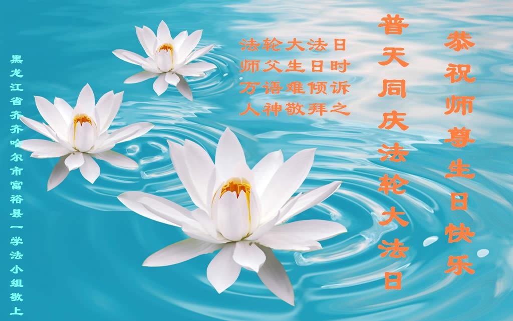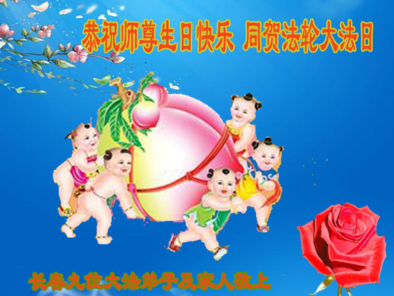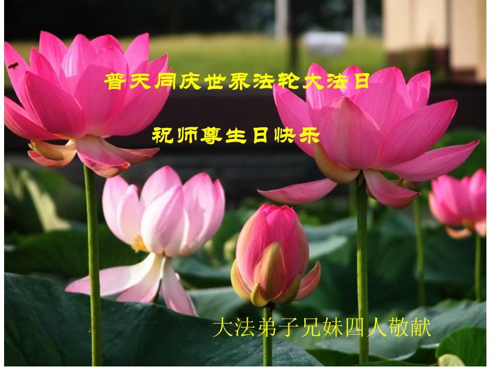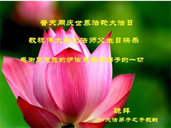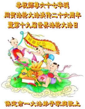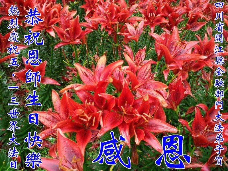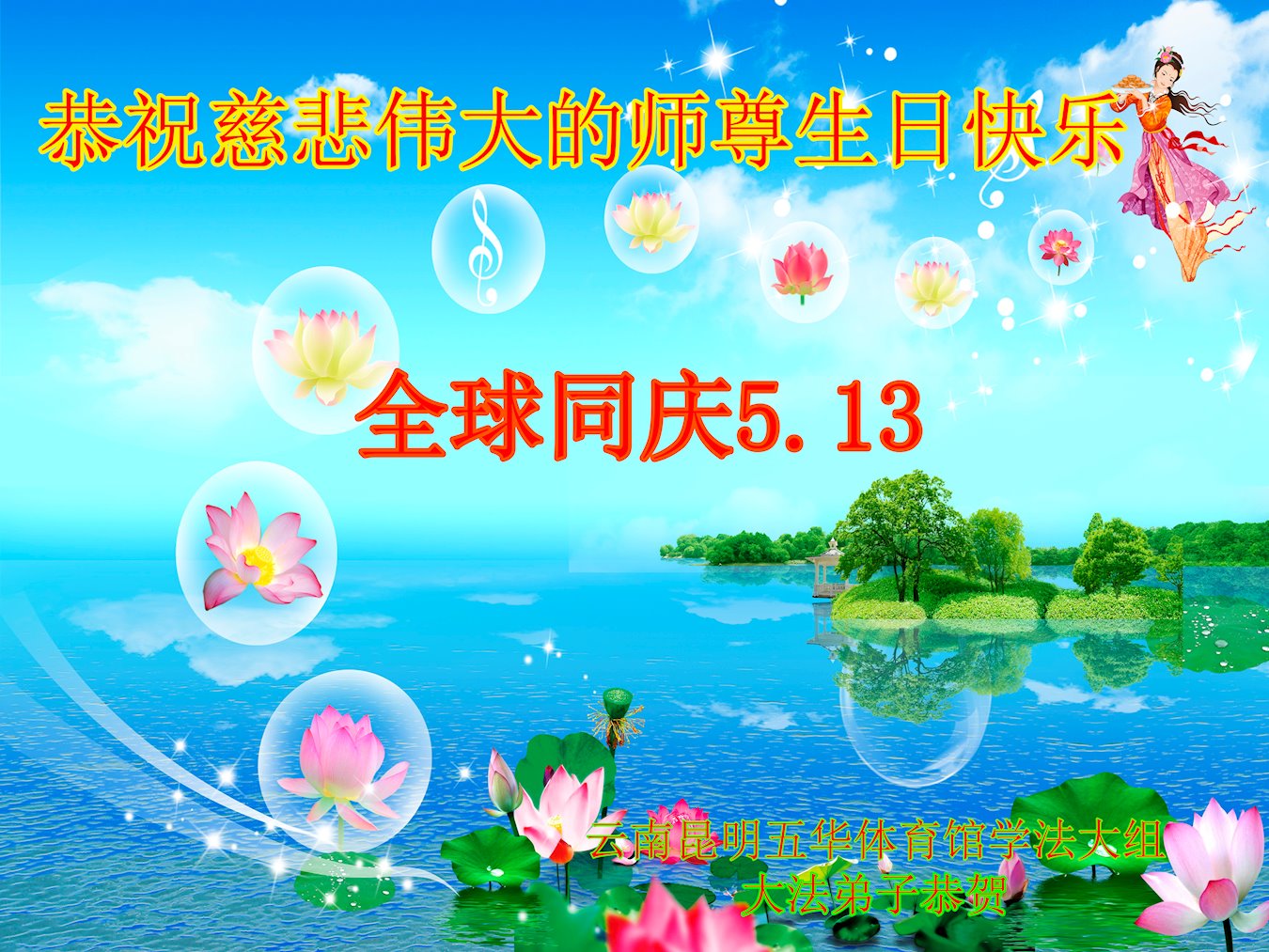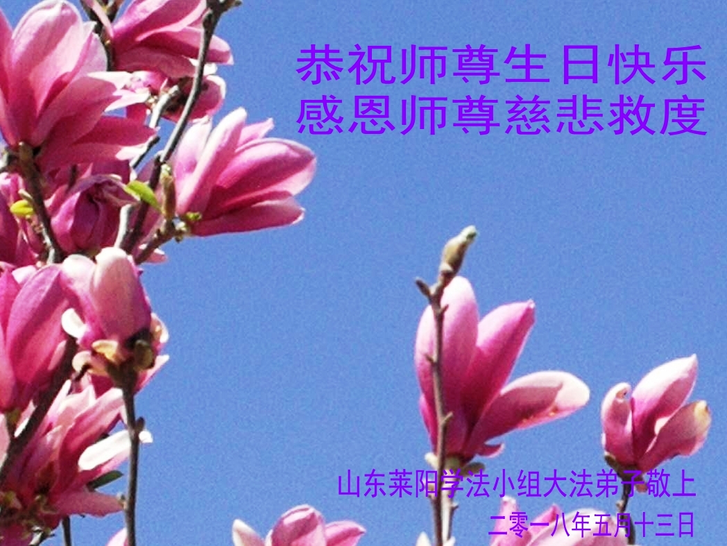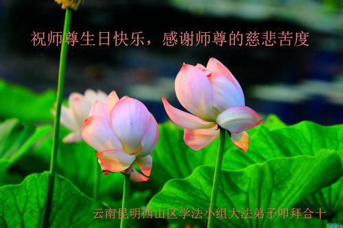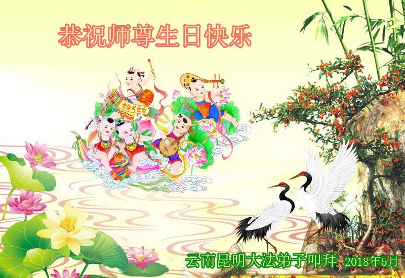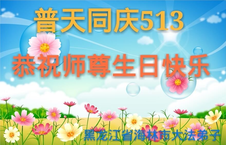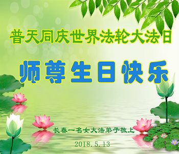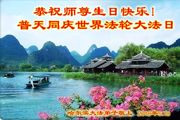 我们深谢恩师慈悲苦度!衷心恭祝师尊华诞快乐!在正法最后不多的时间里,我们一定会认真学好法,修好自己,从根本上改变常人的观念,正念正行,抓紧时间救度更多众生,完成正法时期大法弟子的历史使命,圆满跟随师尊回归家园。