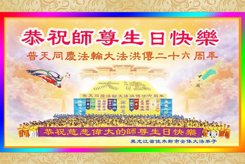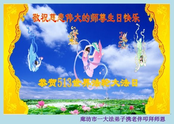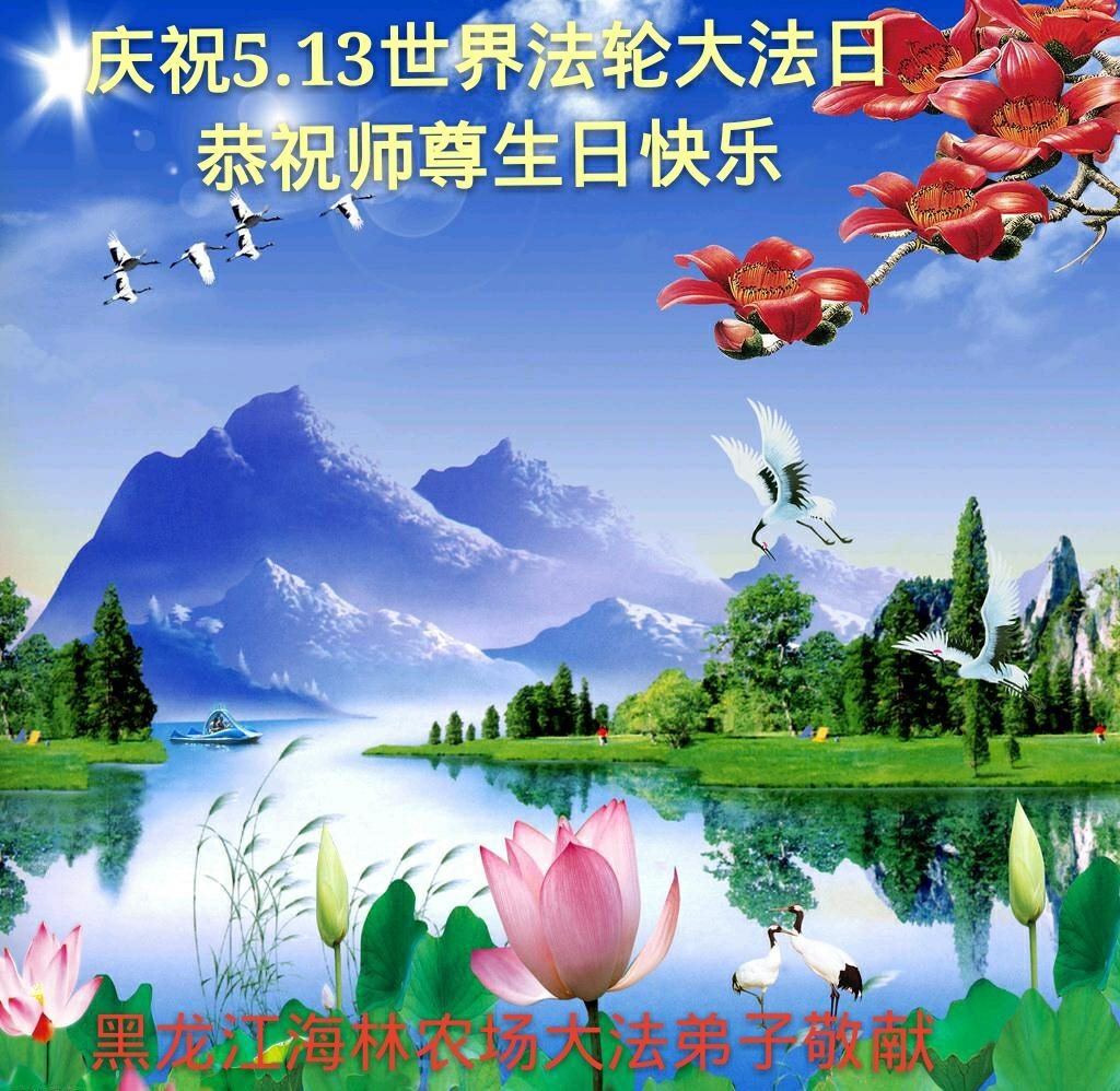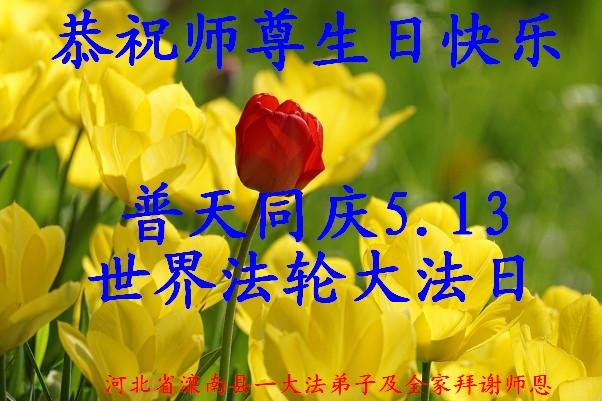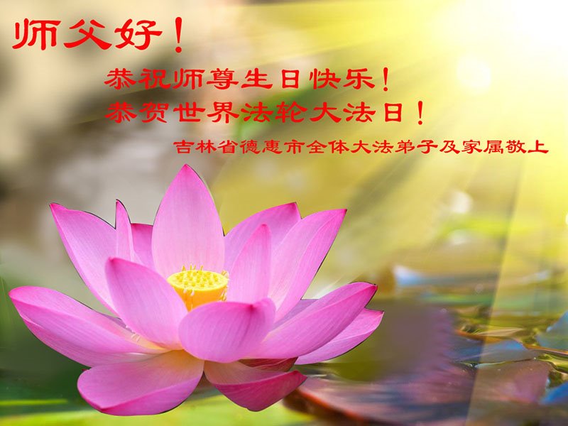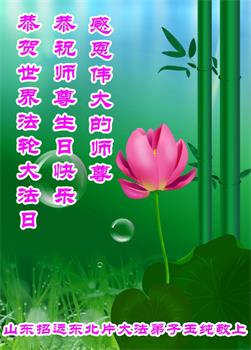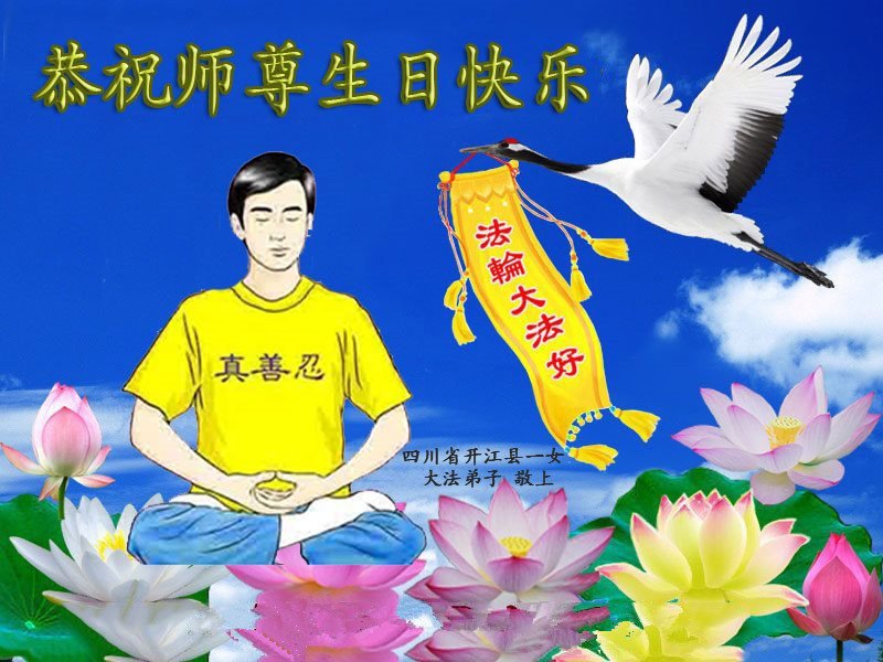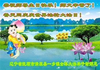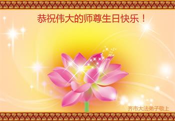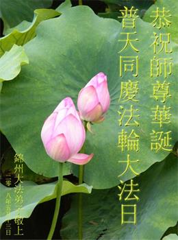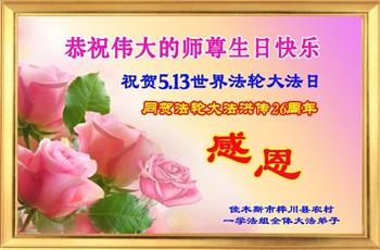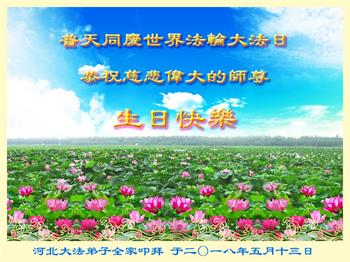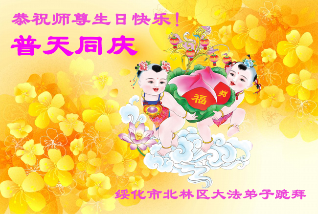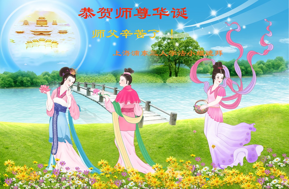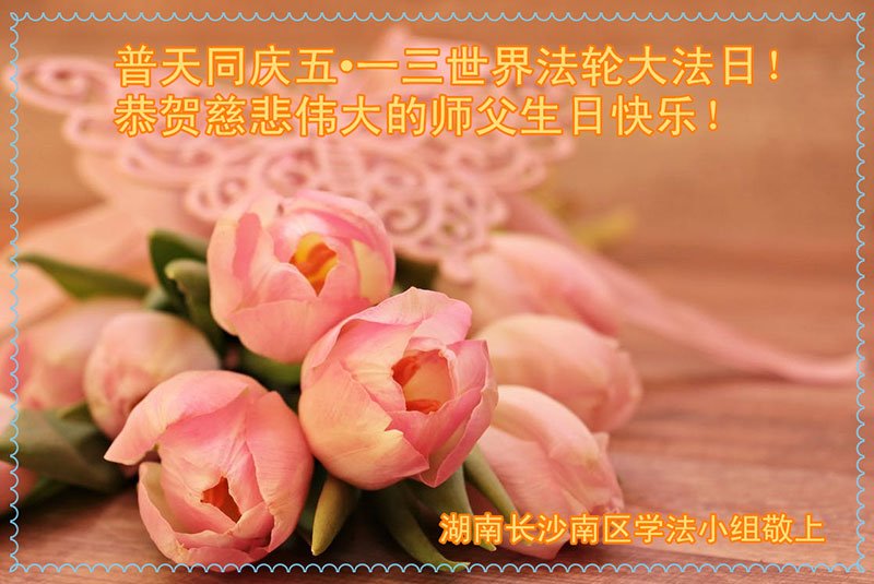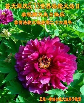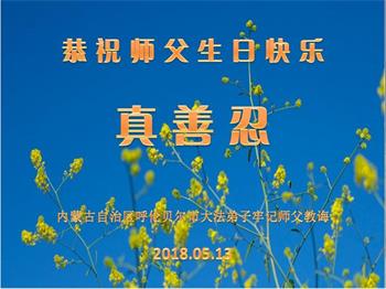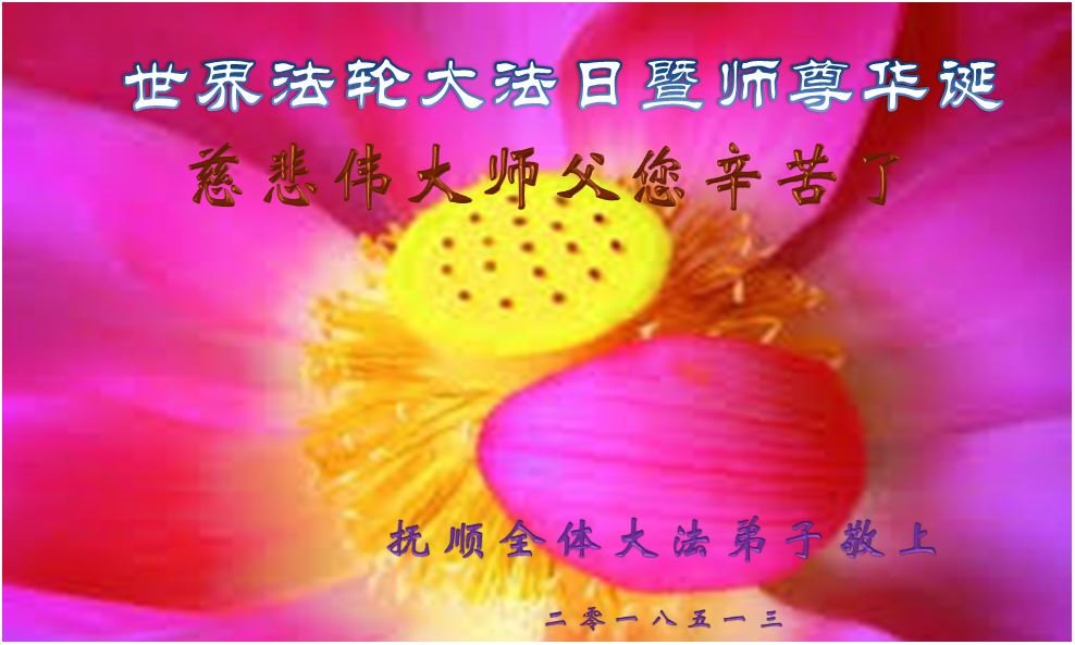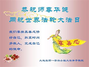 我们深谢恩师慈悲苦度!衷心恭祝师尊华诞快乐!在正法最后不多的时间里,我们一定会认真学好法,修好自己,从根本上改变常人的观念,正念正行,抓紧时间救度更多众生,完成正法时期大法弟子的历史使命,圆满跟随师尊回归家园。