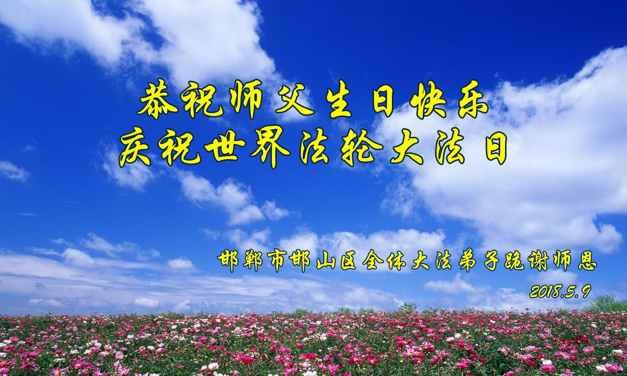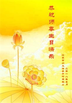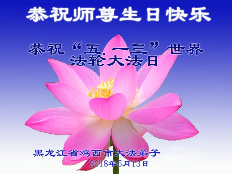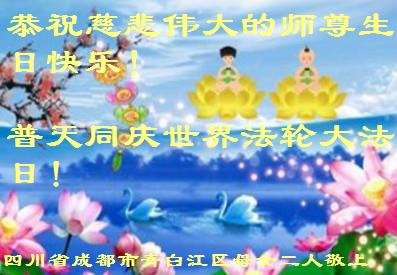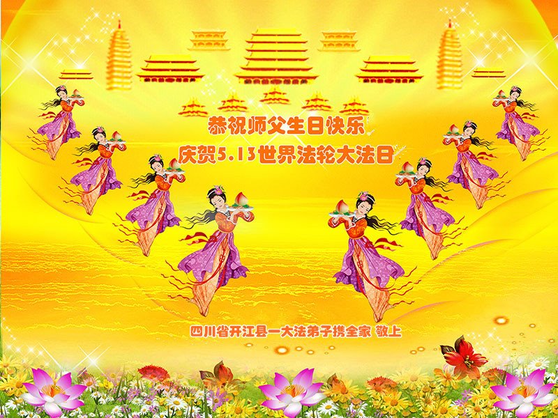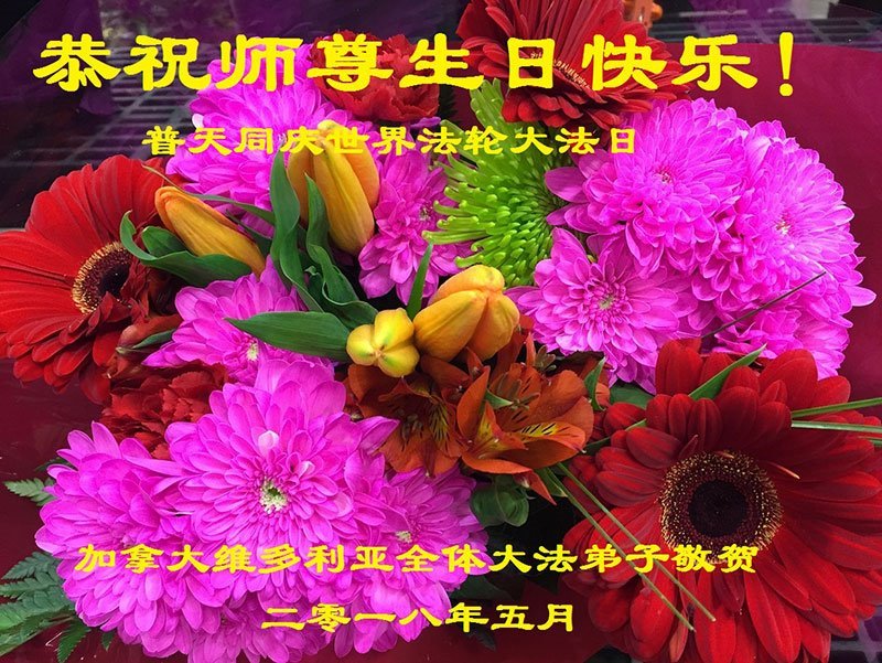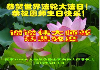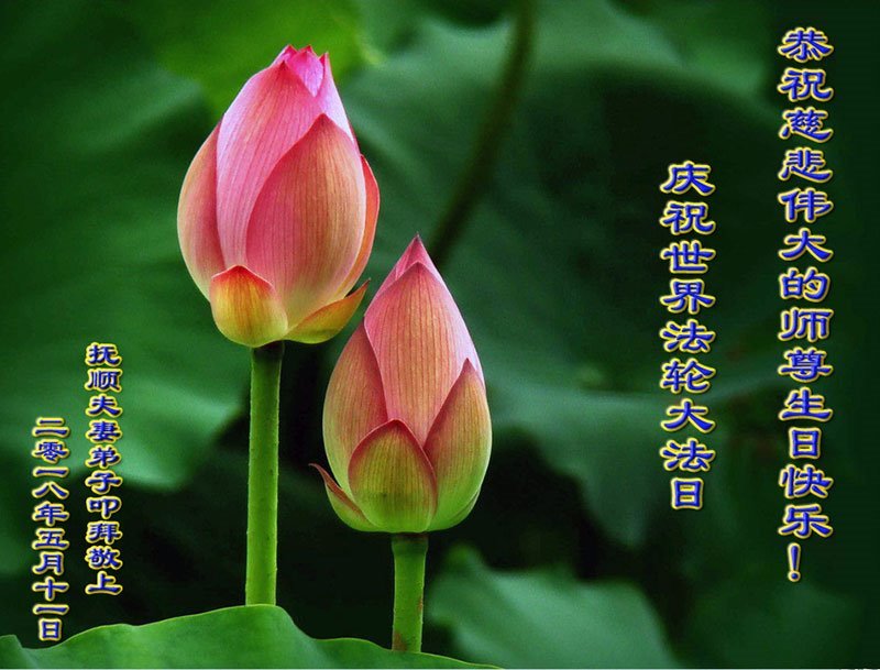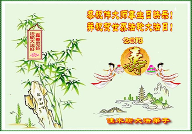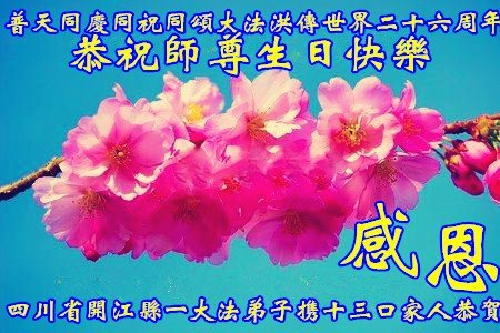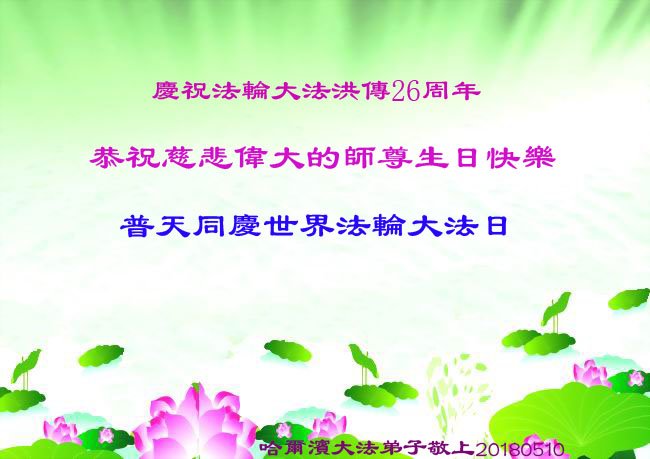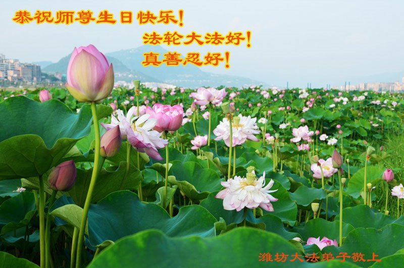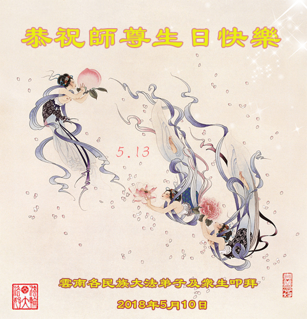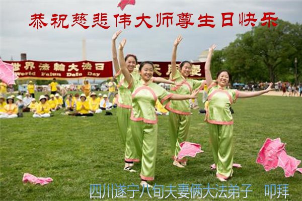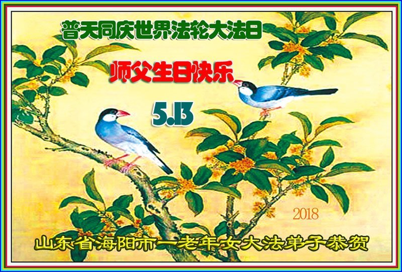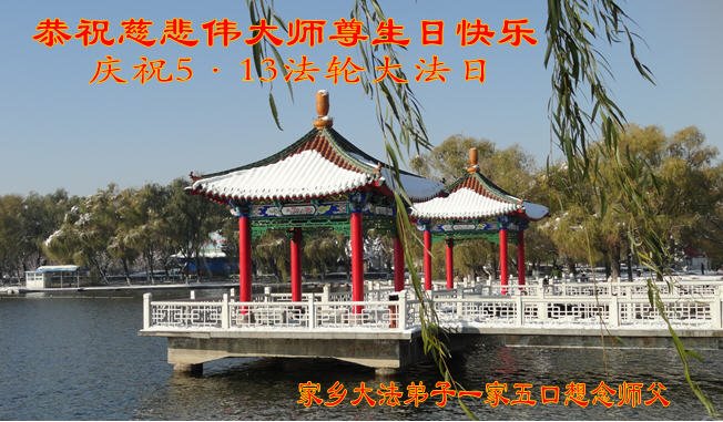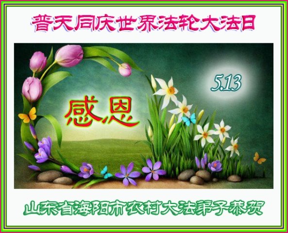 我们深谢恩师慈悲苦度!衷心恭祝师尊华诞快乐!在正法最后不多的时间里,我们一定会认真学好法,修好自己,从根本上改变常人的观念,正念正行,抓紧时间救度更多众生,完成正法时期大法弟子的历史使命,圆满跟随师尊回归家园。