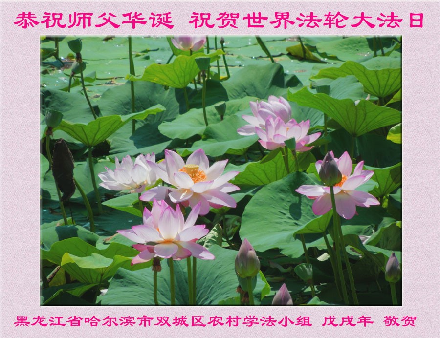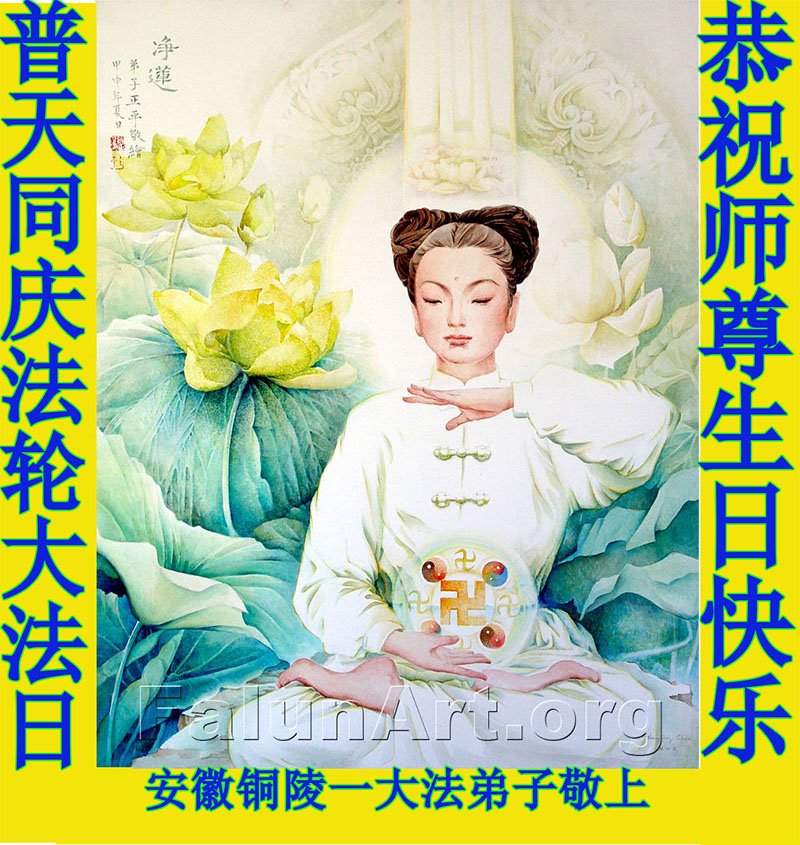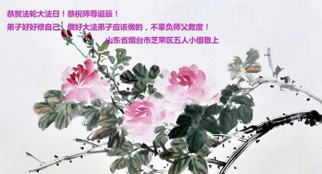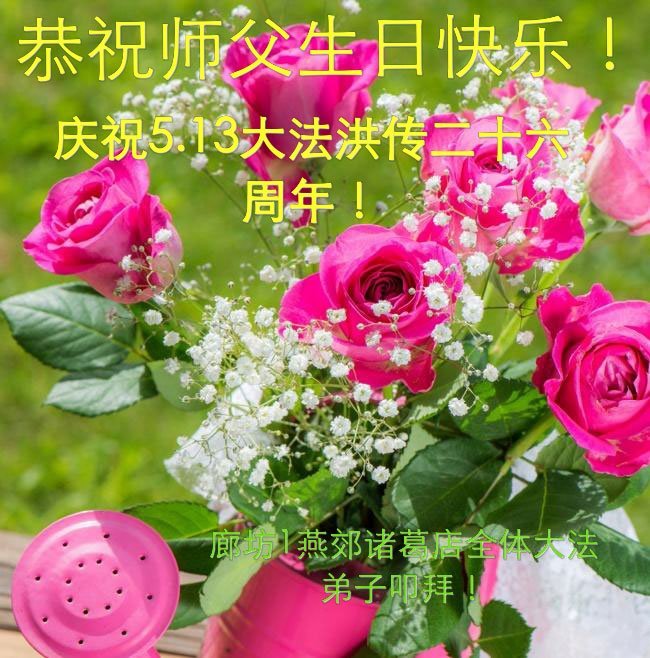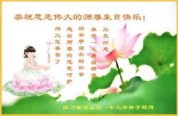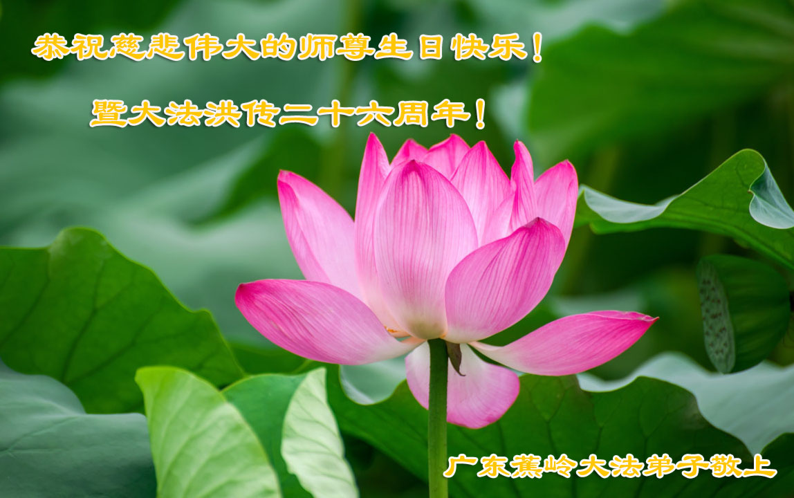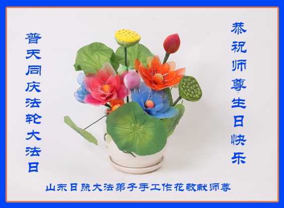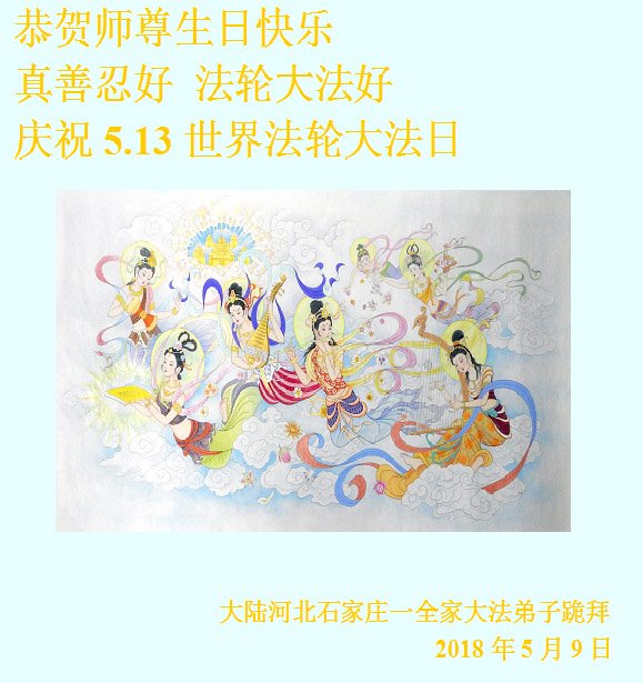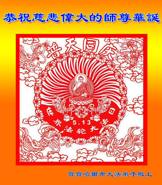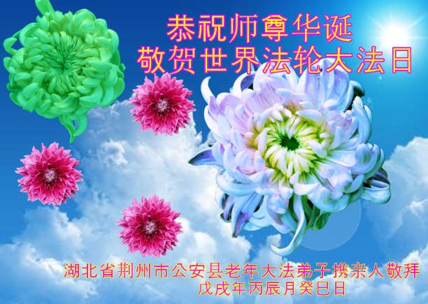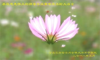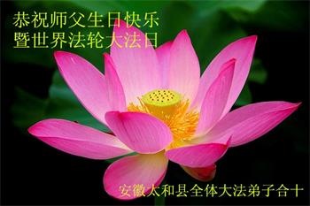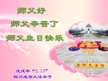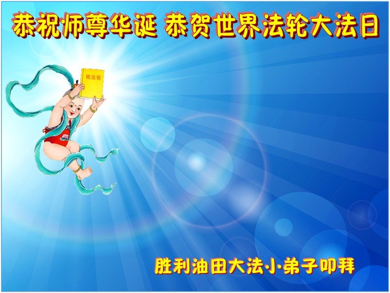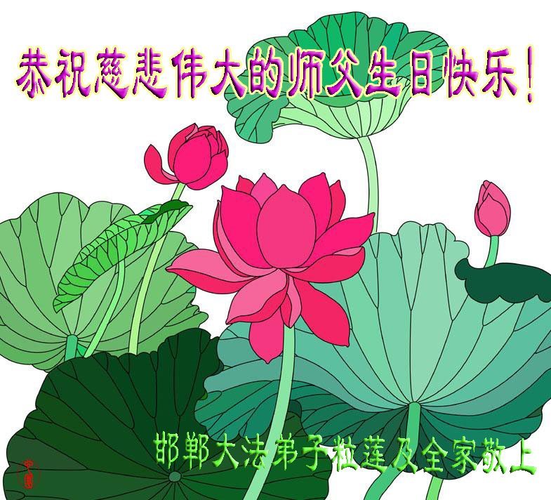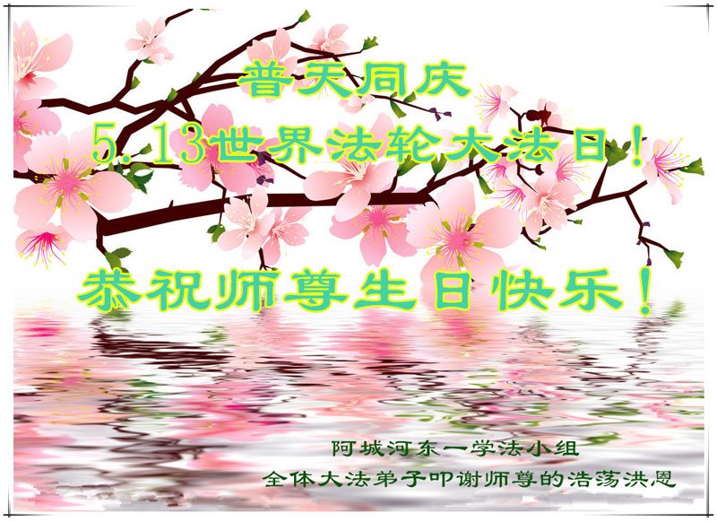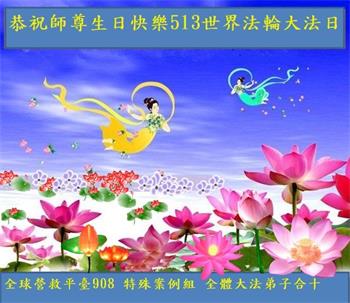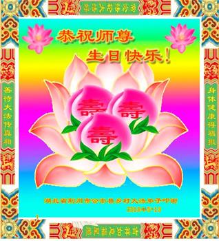 我们深谢恩师慈悲苦度!衷心恭祝师尊华诞快乐!在正法最后不多的时间里,我们一定会认真学好法,修好自己,从根本上改变常人的观念,正念正行,抓紧时间救度更多众生,完成正法时期大法弟子的历史使命,圆满跟随师尊回归家园。