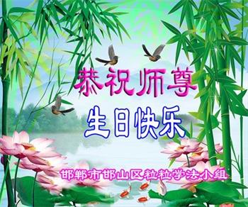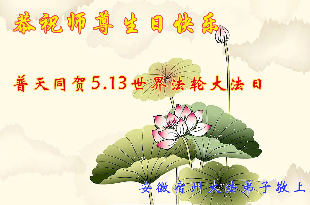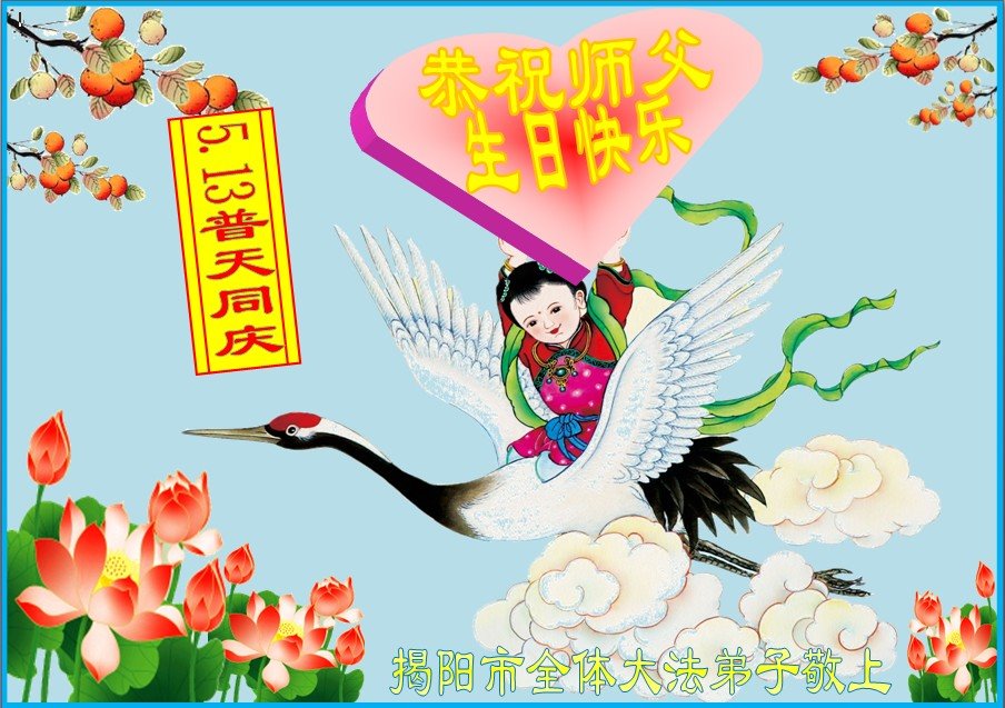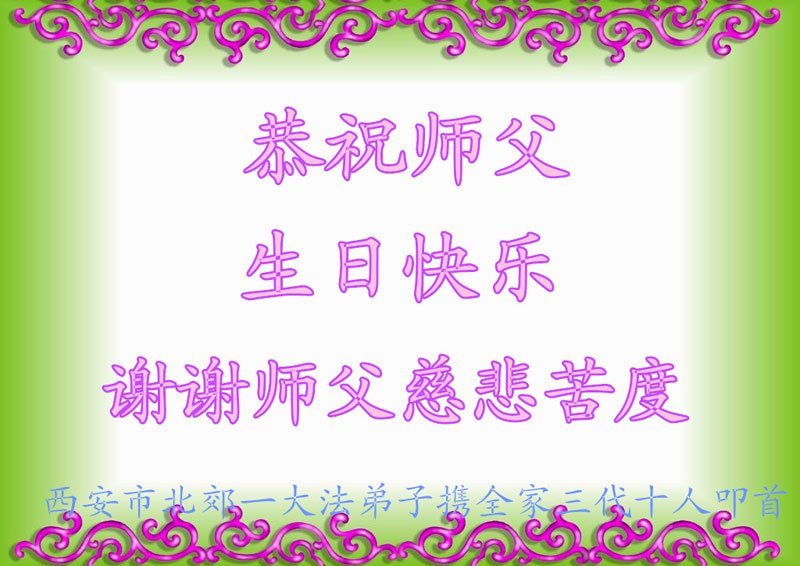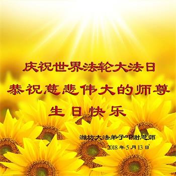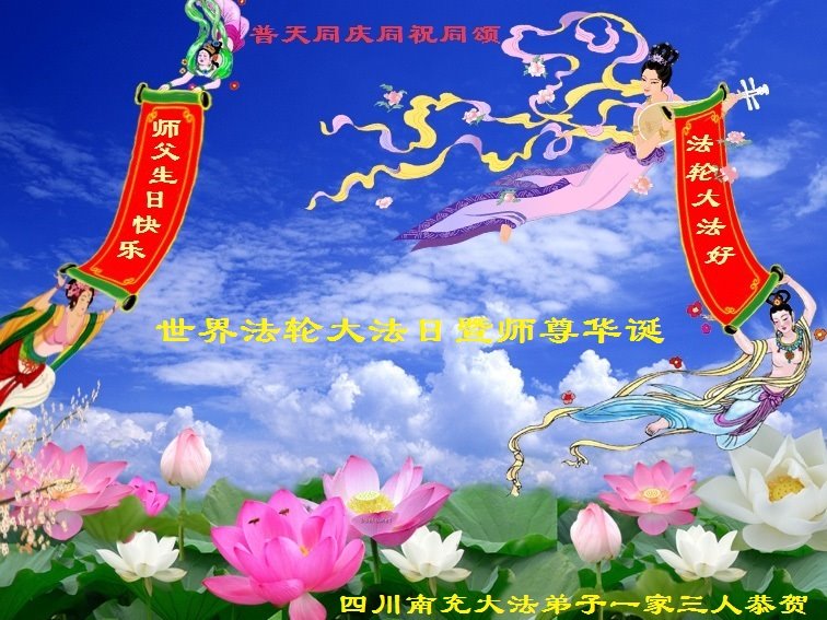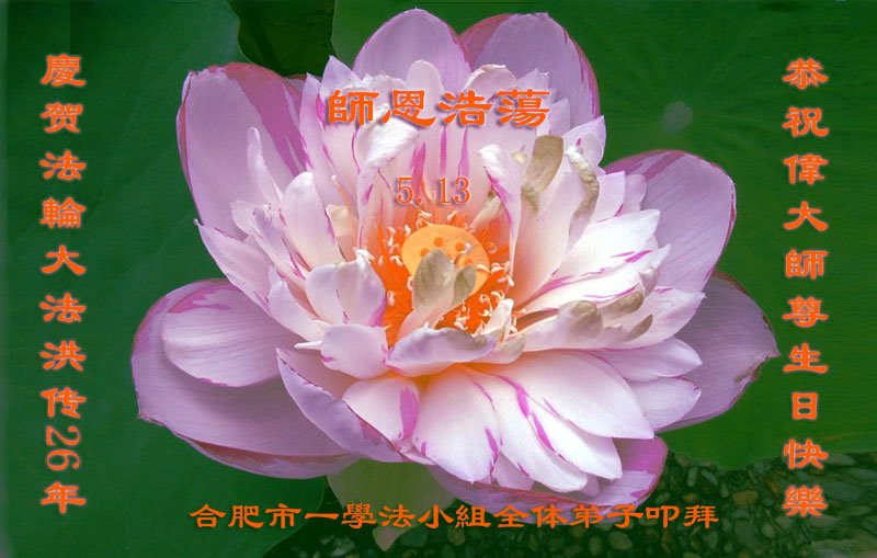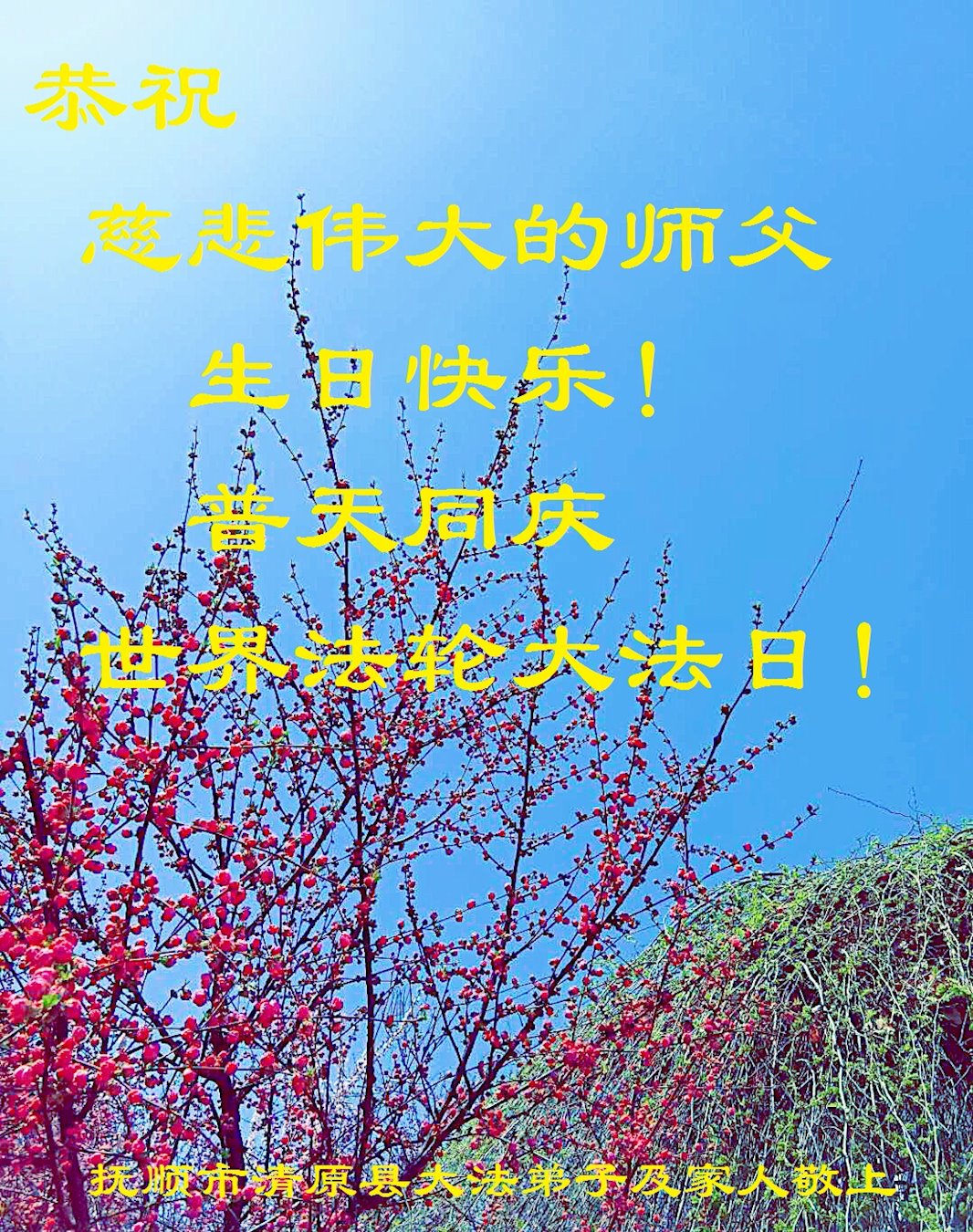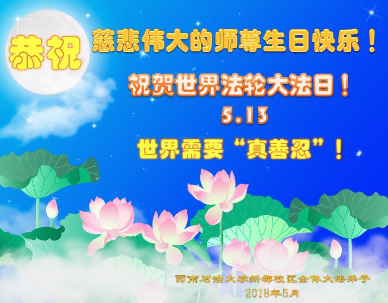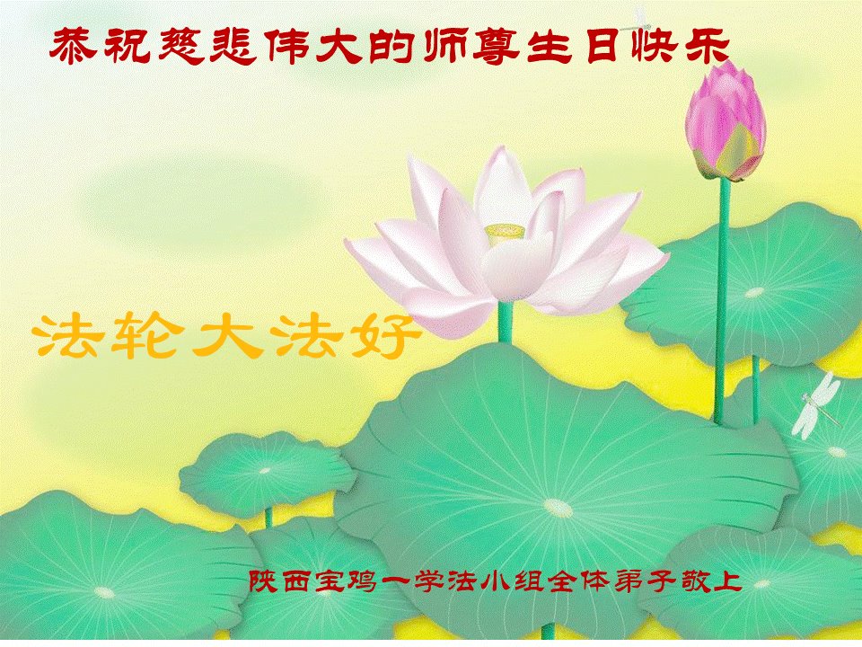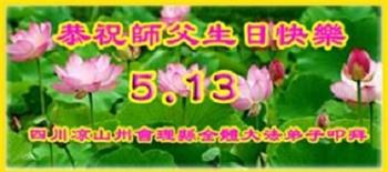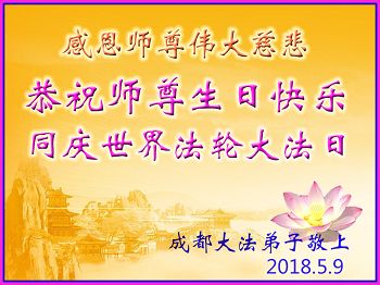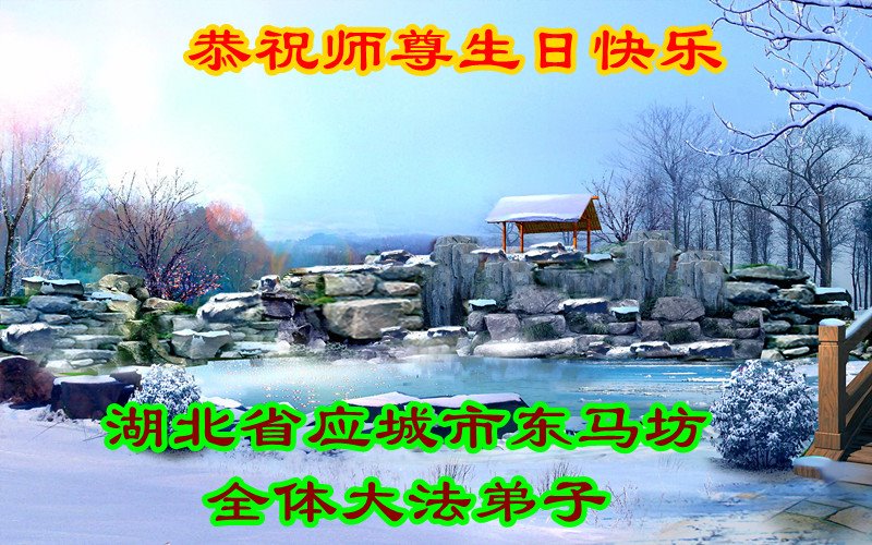 我们深谢恩师慈悲苦度!衷心恭祝师尊华诞快乐!在正法最后不多的时间里,我们一定会认真学好法,修好自己,从根本上改变常人的观念,正念正行,抓紧时间救度更多众生,完成正法时期大法弟子的历史使命,圆满跟随师尊回归家园。