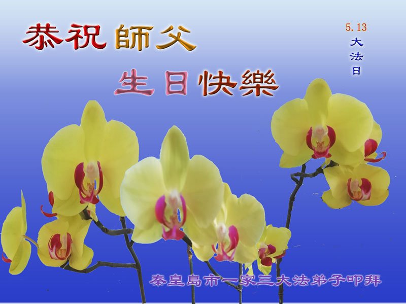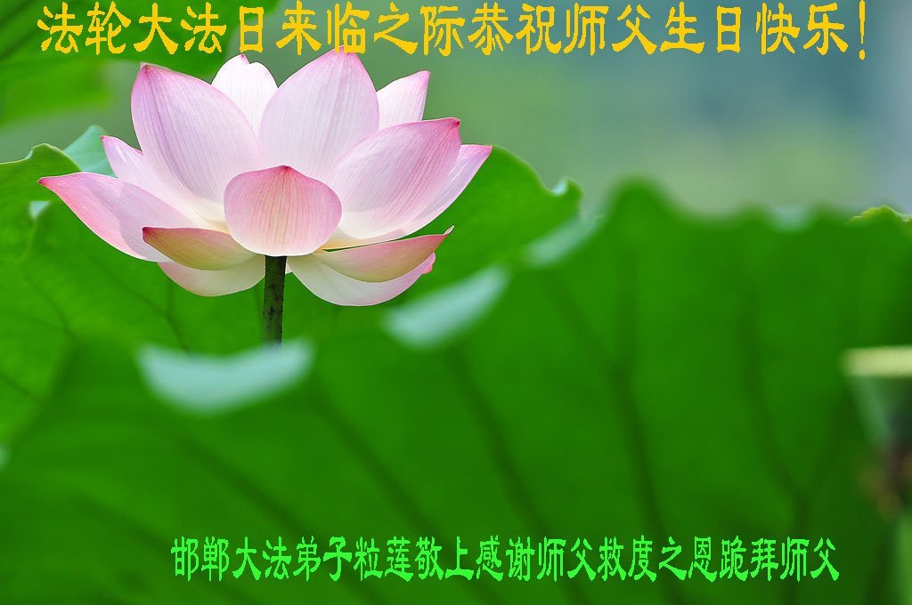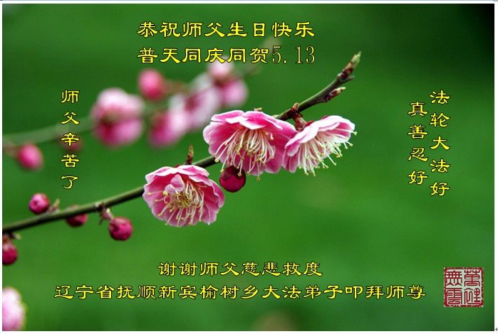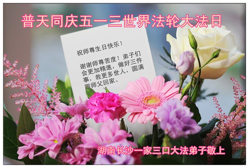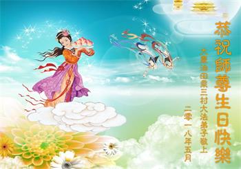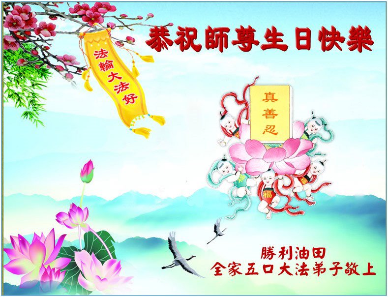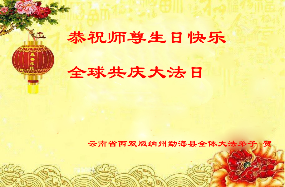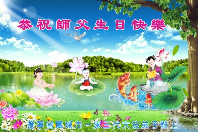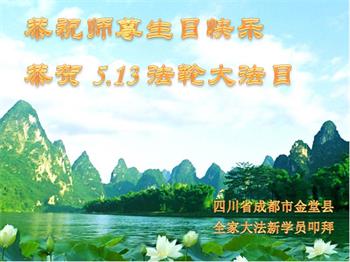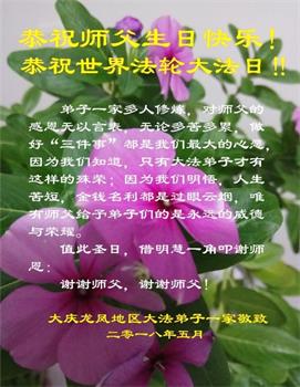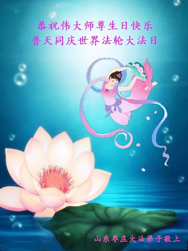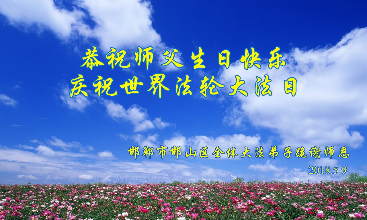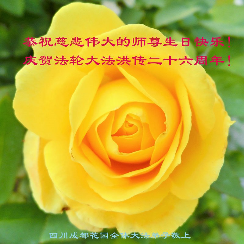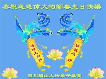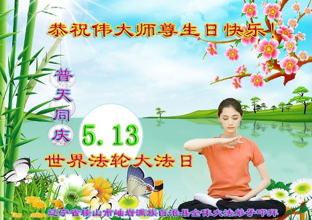 我们深谢恩师慈悲苦度!衷心恭祝师尊华诞快乐!在正法最后不多的时间里,我们一定会认真学好法,修好自己,从根本上改变常人的观念,正念正行,抓紧时间救度更多众生,完成正法时期大法弟子的历史使命,圆满跟随师尊回归家园。