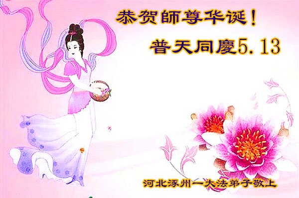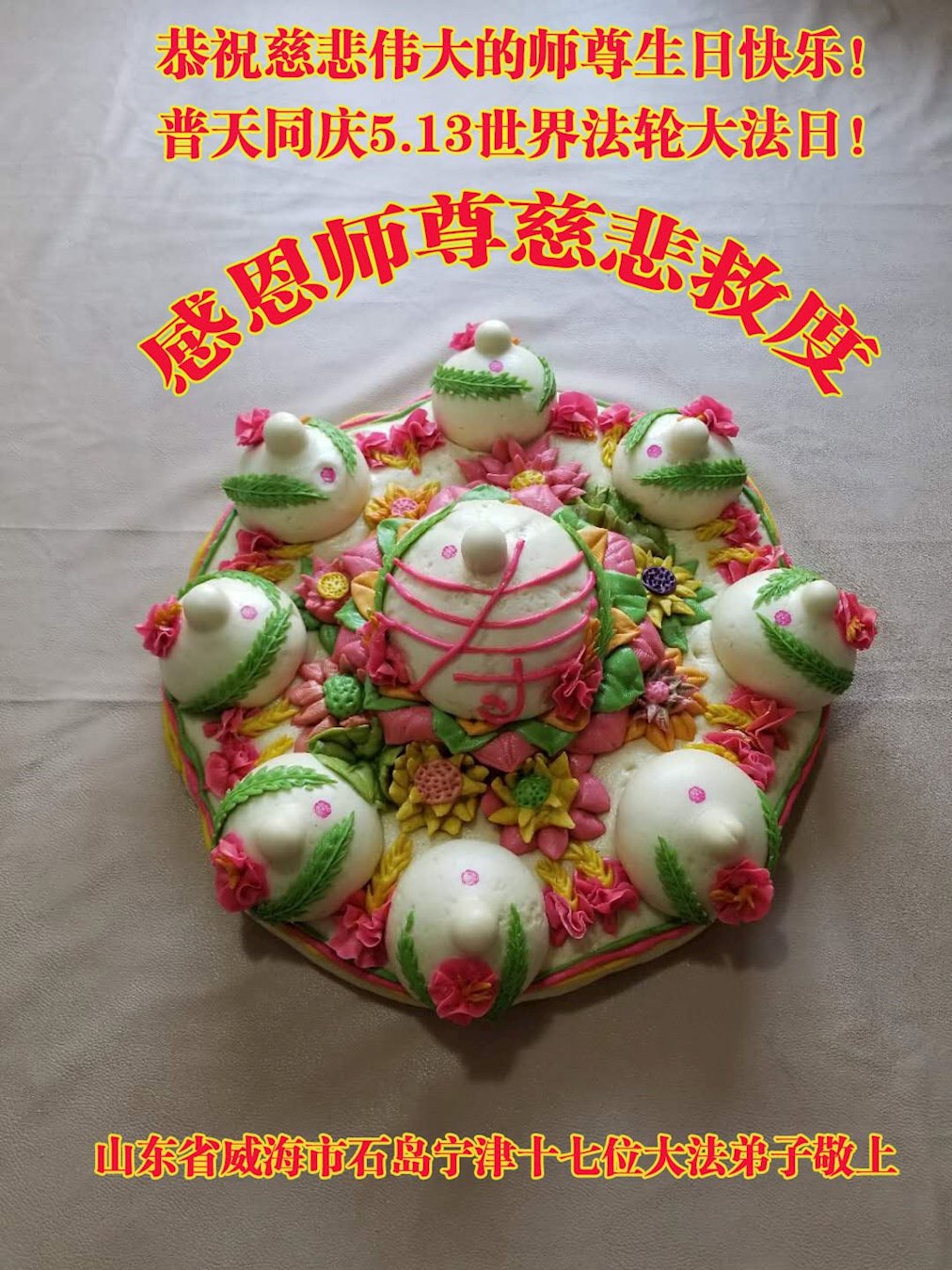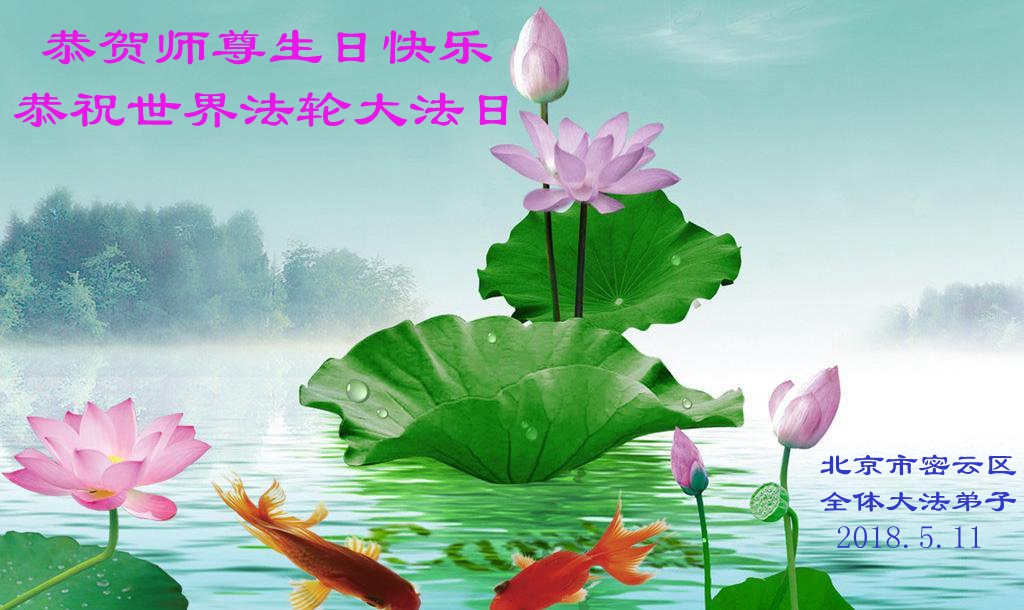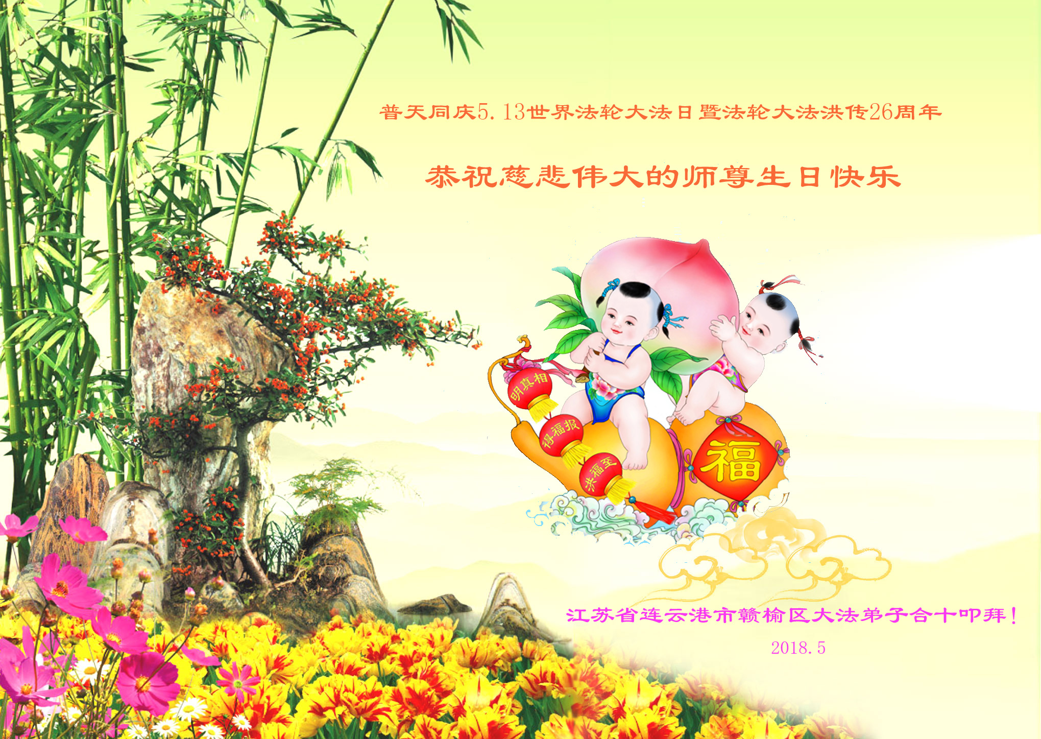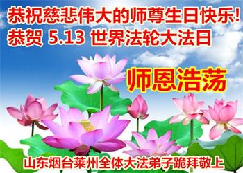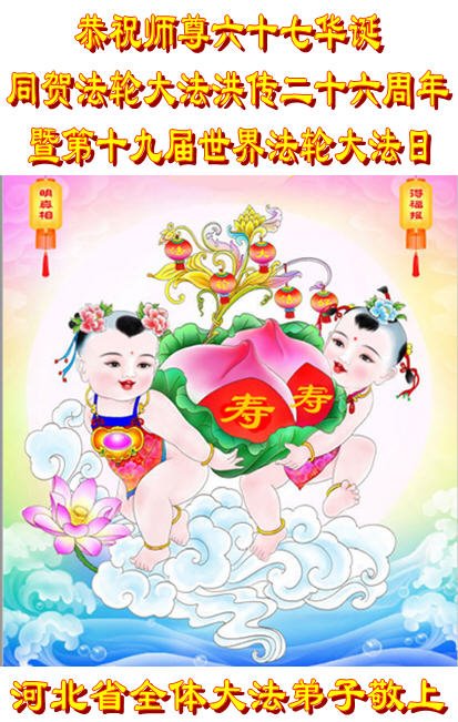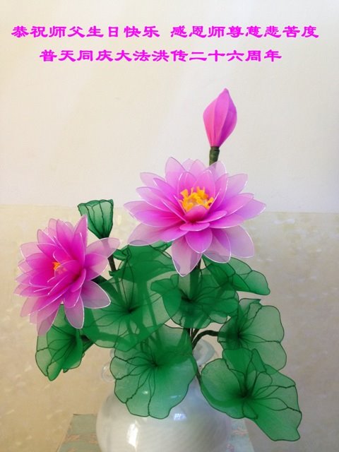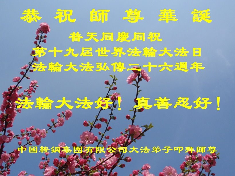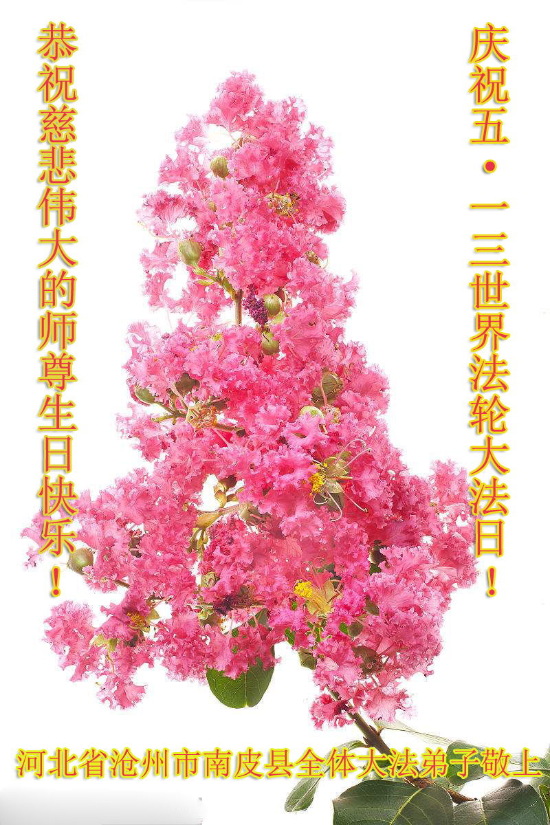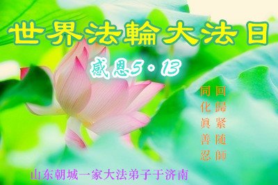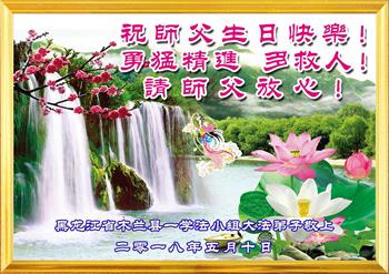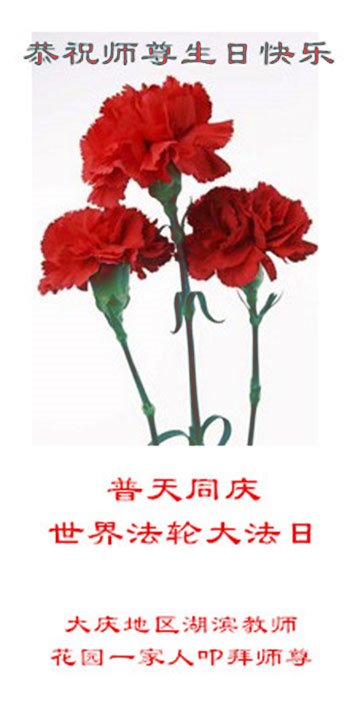 我们深谢恩师慈悲苦度!衷心恭祝师尊华诞快乐!在正法最后不多的时间里,我们一定会认真学好法,修好自己,从根本上改变常人的观念,正念正行,抓紧时间救度更多众生,完成正法时期大法弟子的历史使命,圆满跟随师尊回归家园。