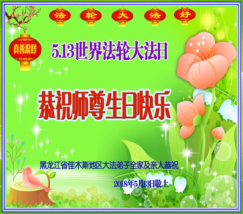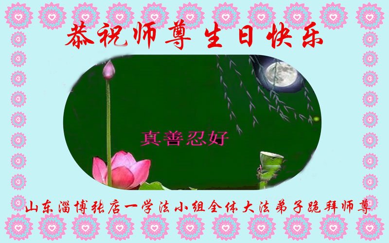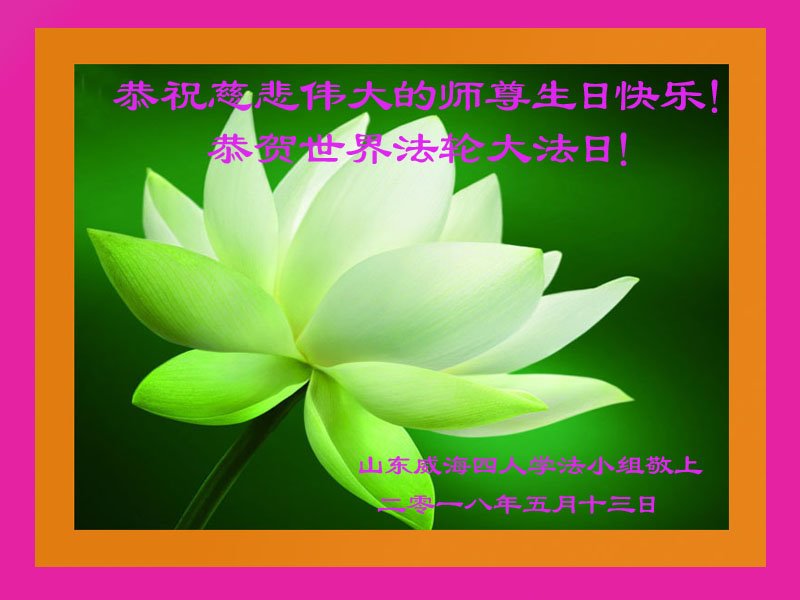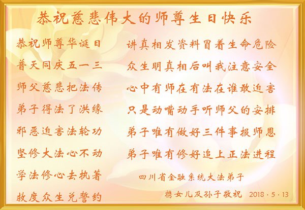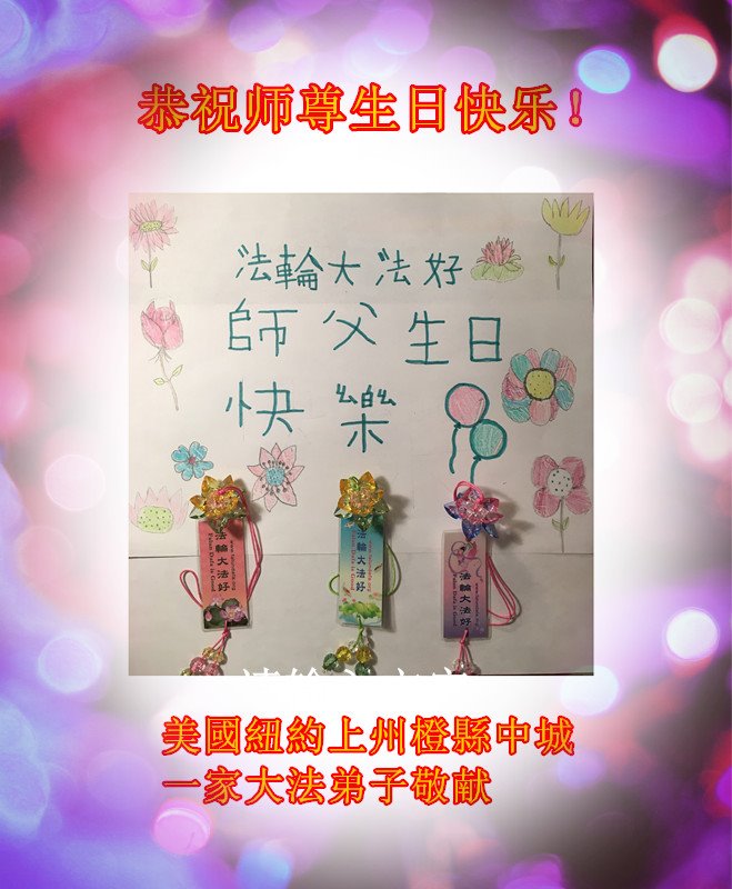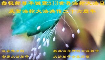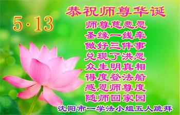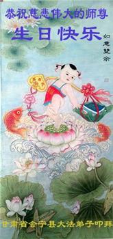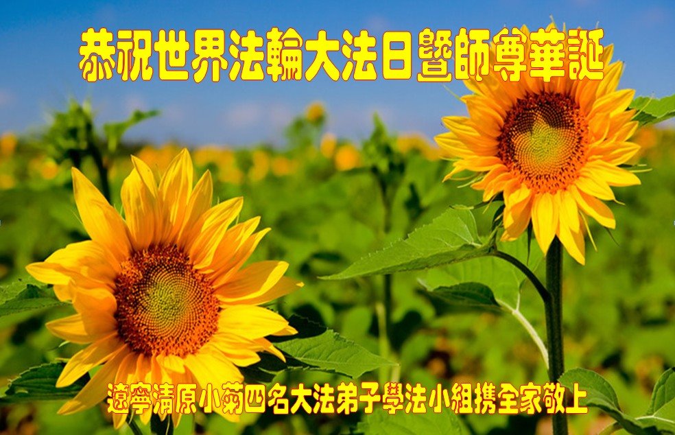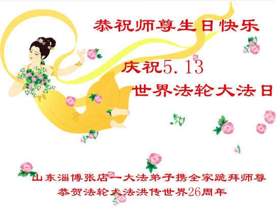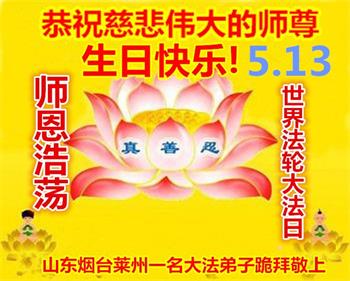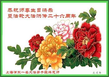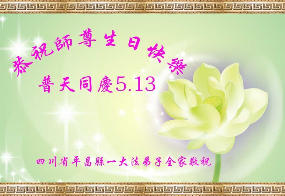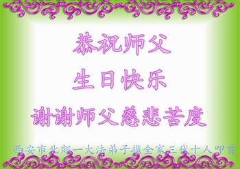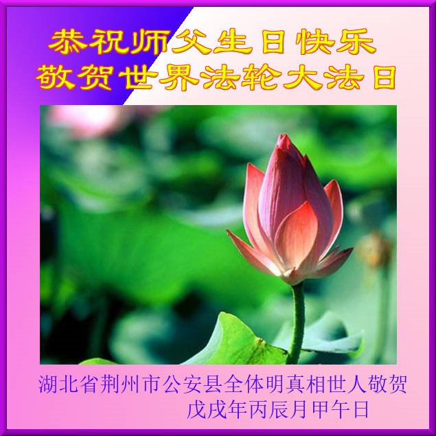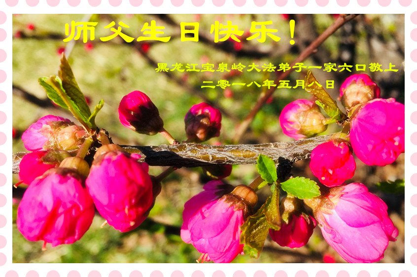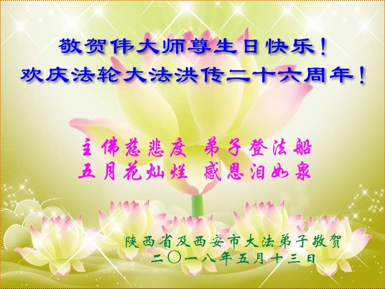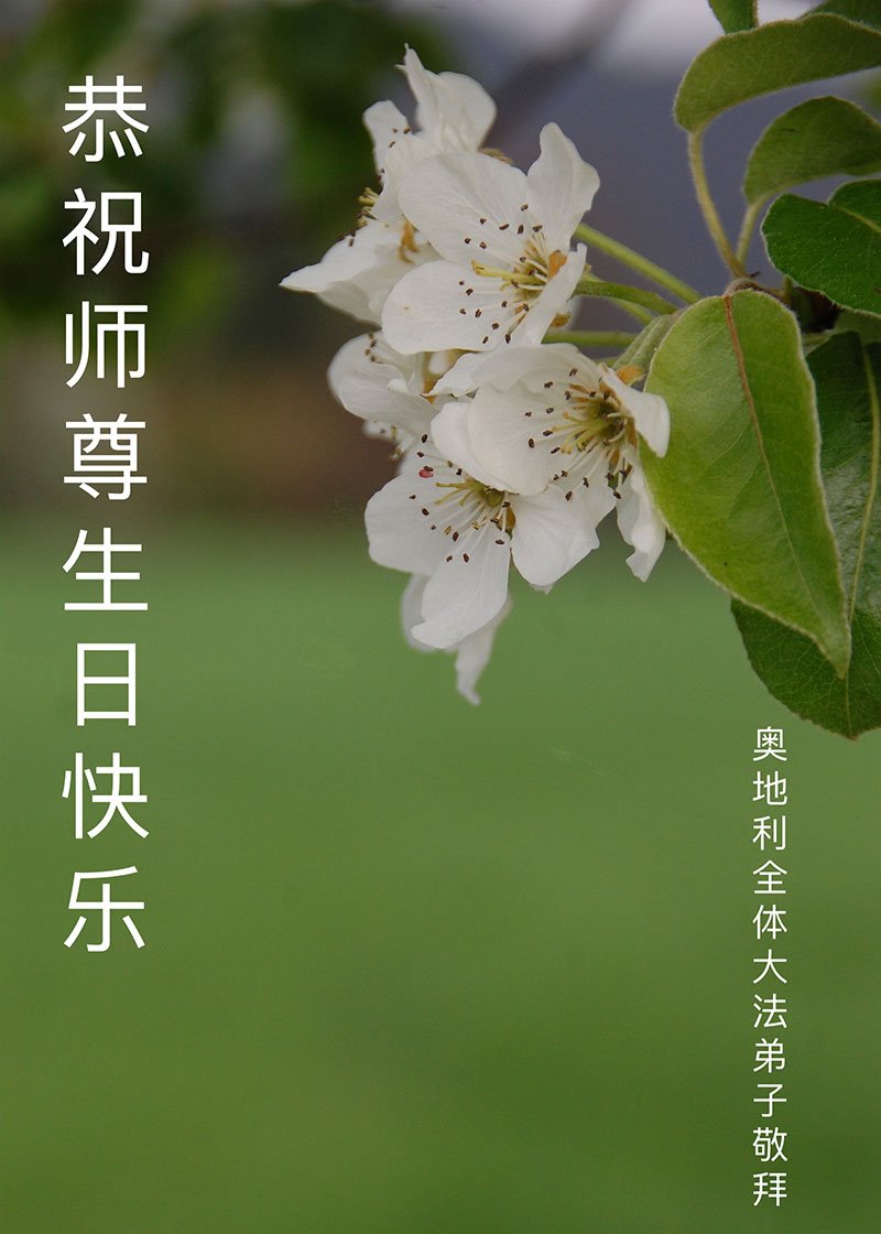我们深谢恩师慈悲苦度!衷心恭祝师尊华诞快乐!在正法最后不多的时间里,我们一定会认真学好法,修好自己,从根本上改变常人的观念,正念正行,抓紧时间救度更多众生,完成正法时期大法弟子的历史使命,圆满跟随师尊回归家园。