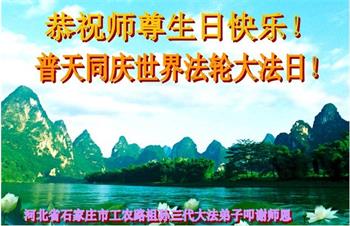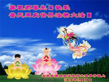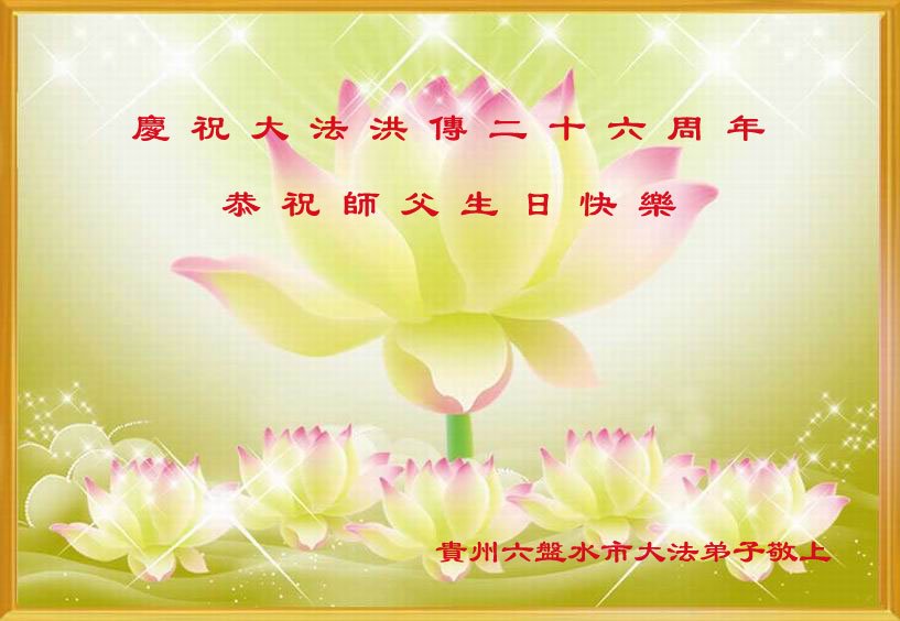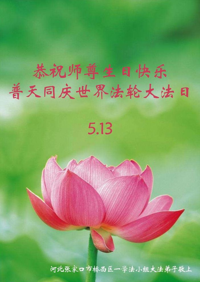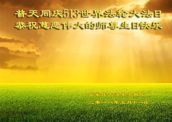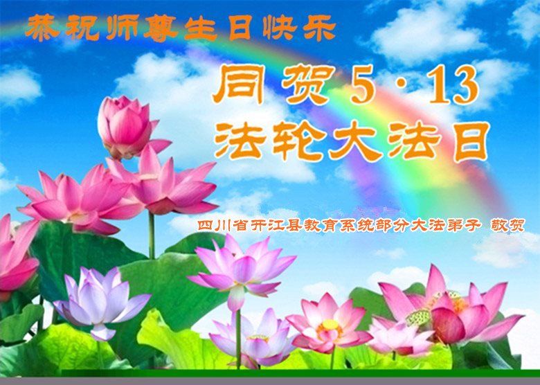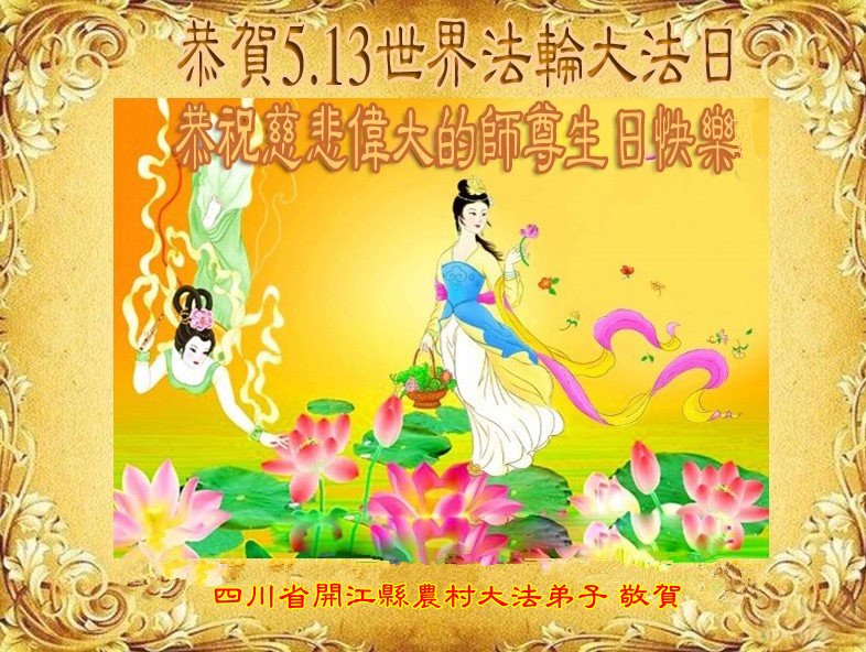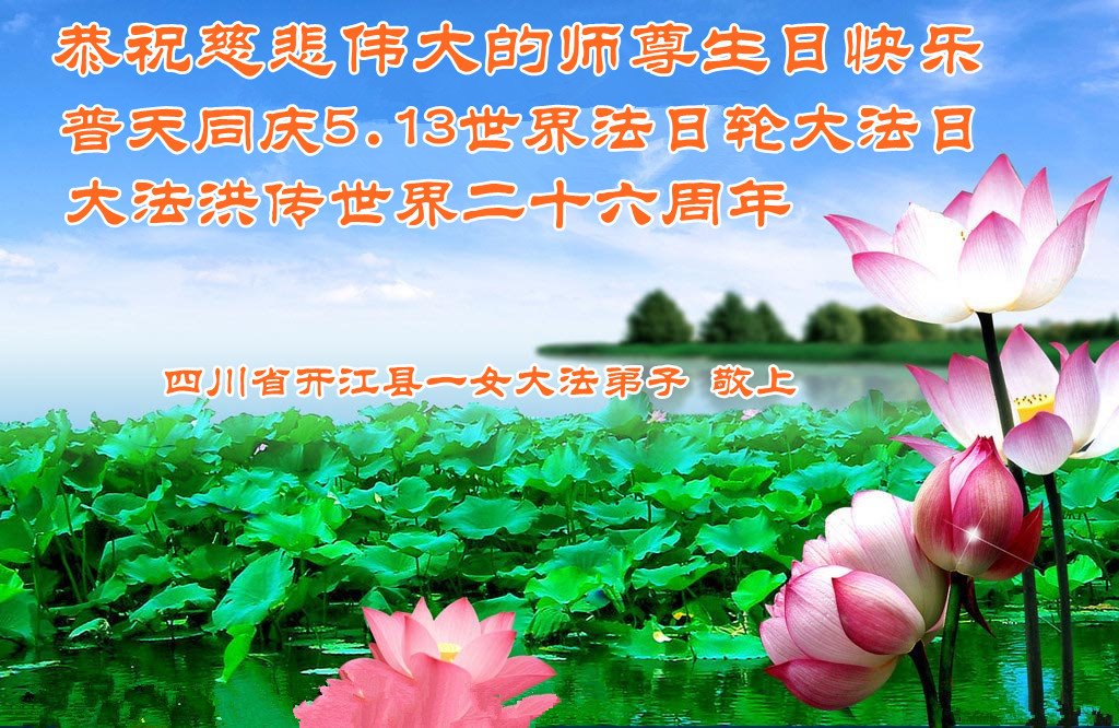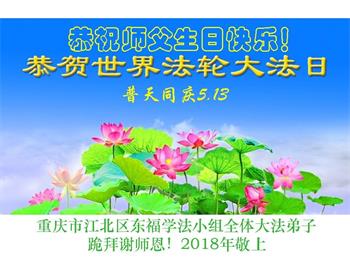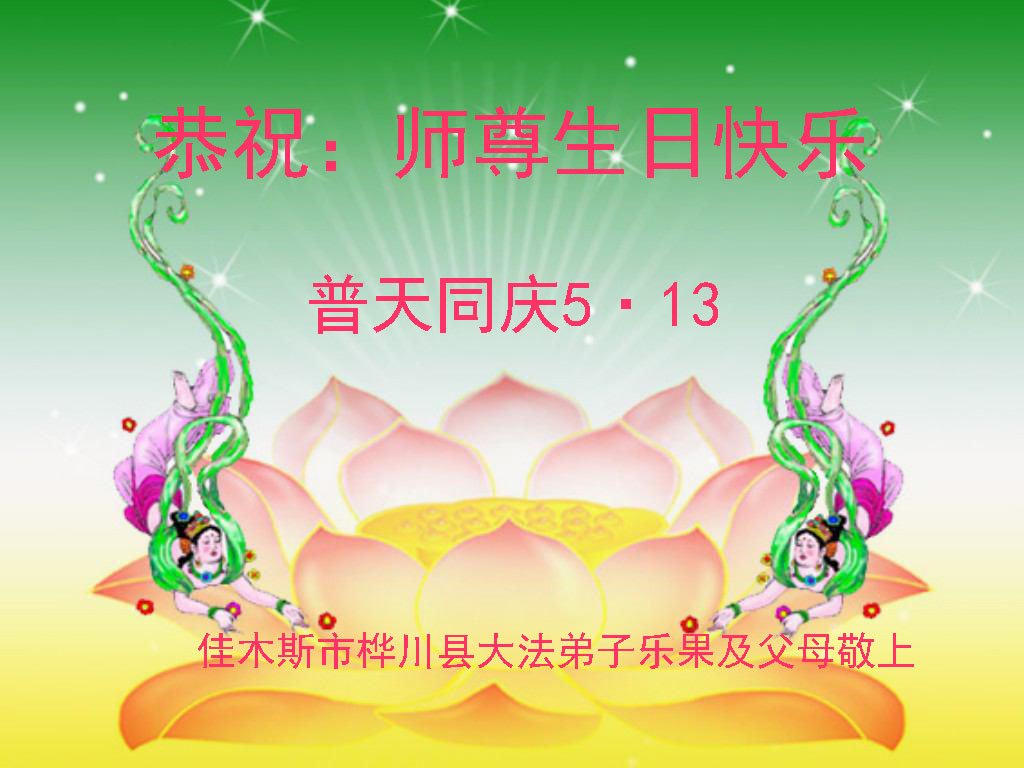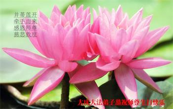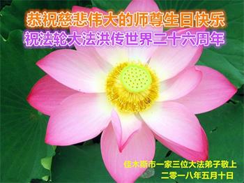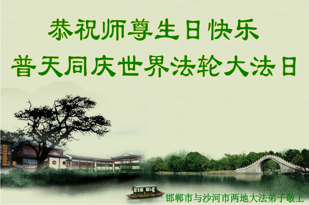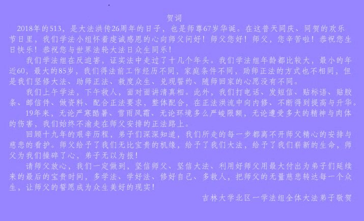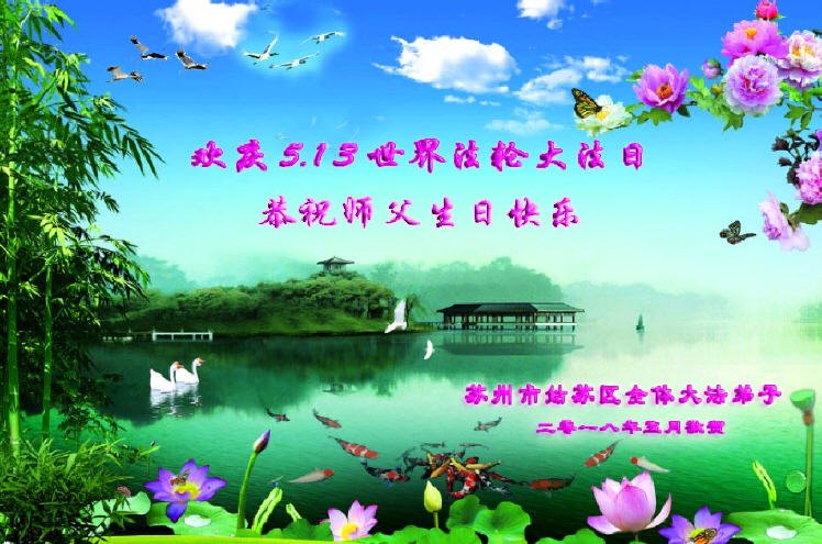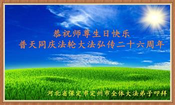 我们深谢恩师慈悲苦度!衷心恭祝师尊华诞快乐!在正法最后不多的时间里,我们一定会认真学好法,修好自己,从根本上改变常人的观念,正念正行,抓紧时间救度更多众生,完成正法时期大法弟子的历史使命,圆满跟随师尊回归家园。