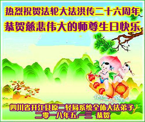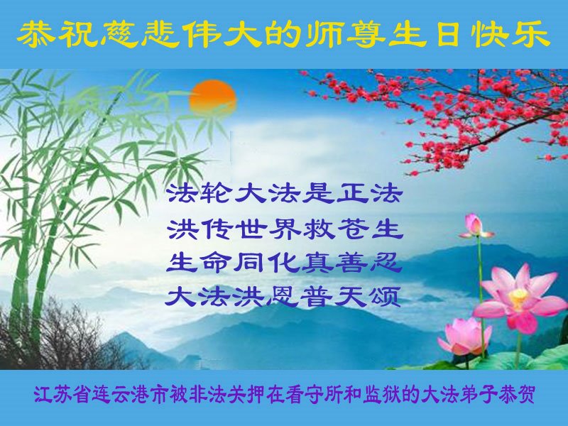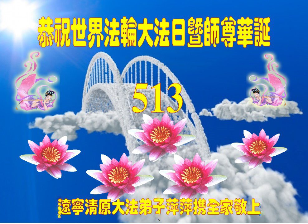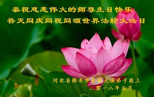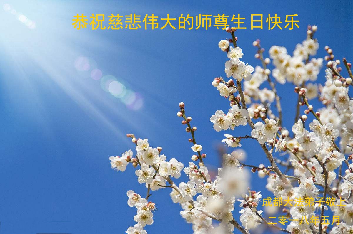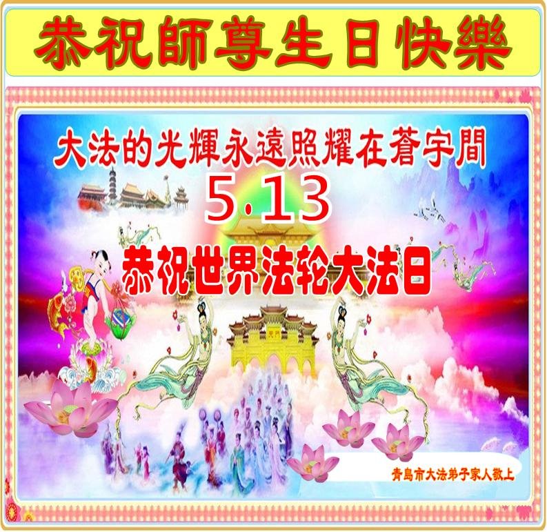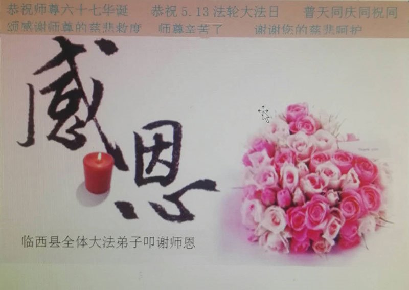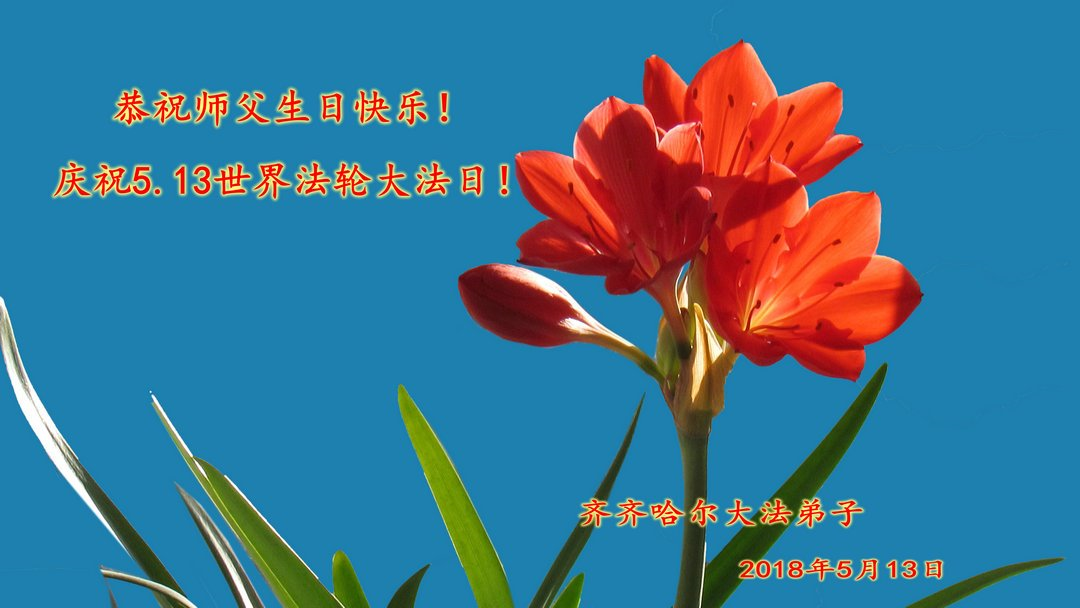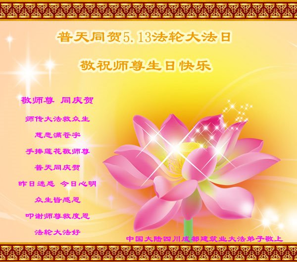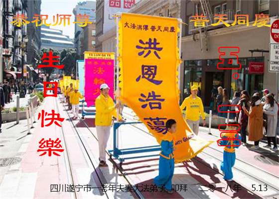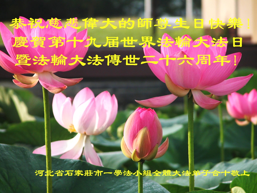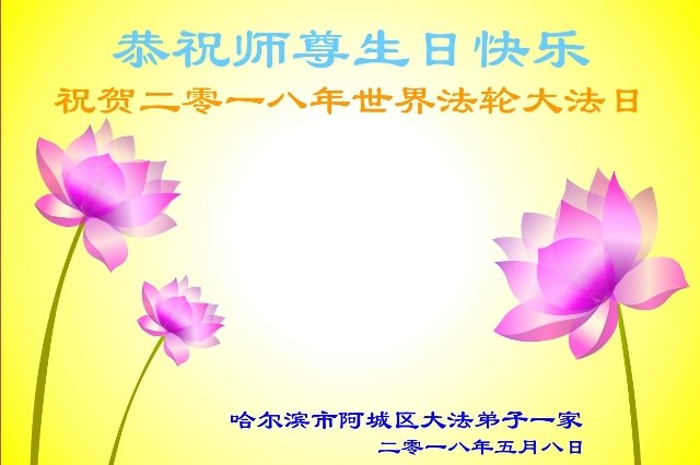 我们深谢恩师慈悲苦度!衷心恭祝师尊华诞快乐!在正法最后不多的时间里,我们一定会认真学好法,修好自己,从根本上改变常人的观念,正念正行,抓紧时间救度更多众生,完成正法时期大法弟子的历史使命,圆满跟随师尊回归家园。