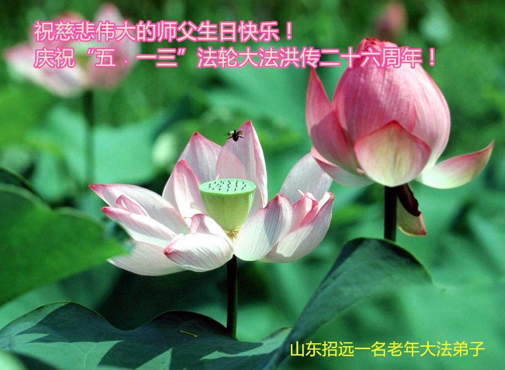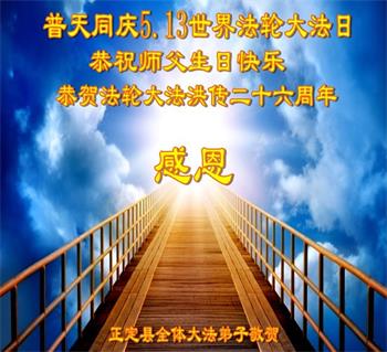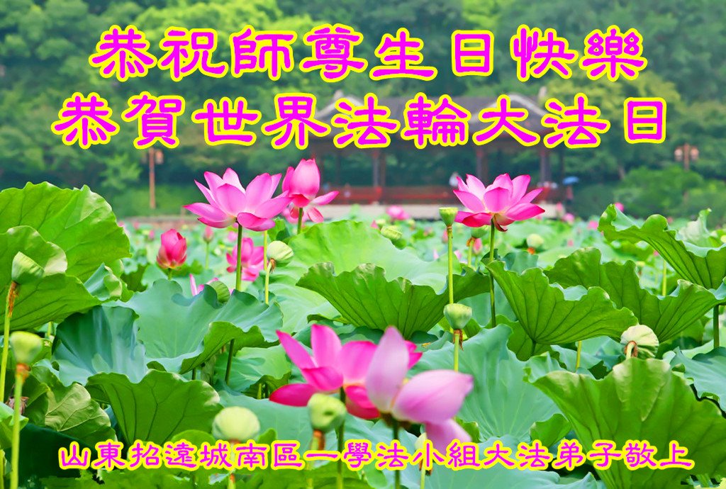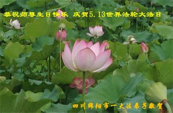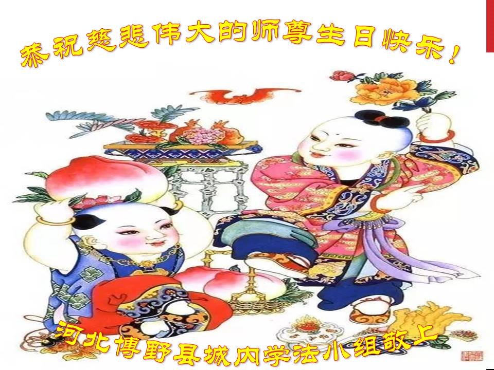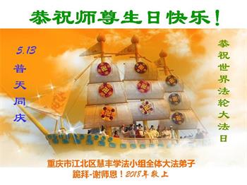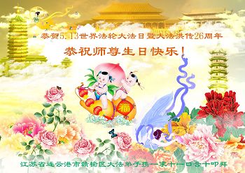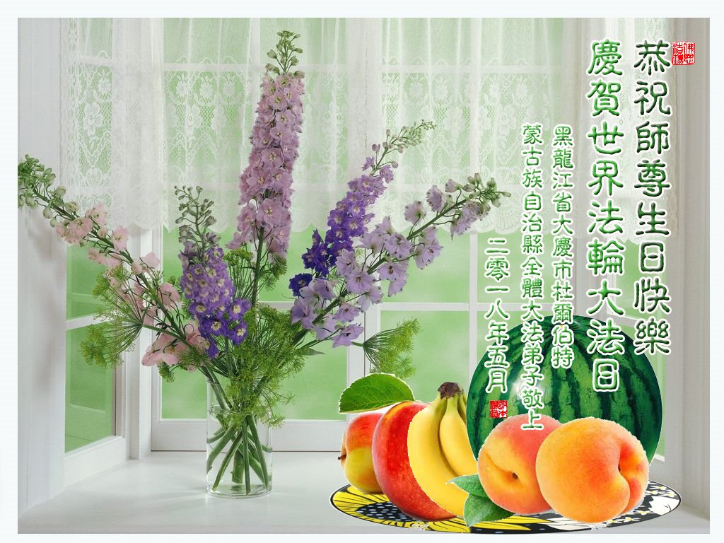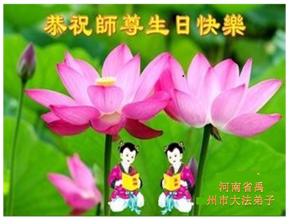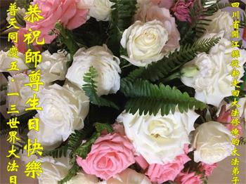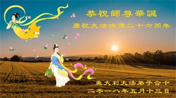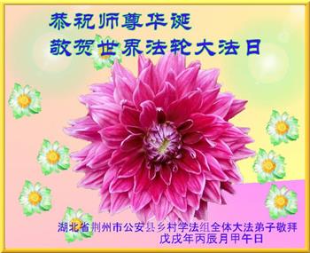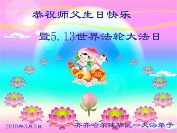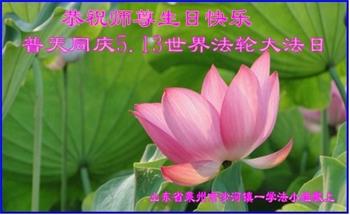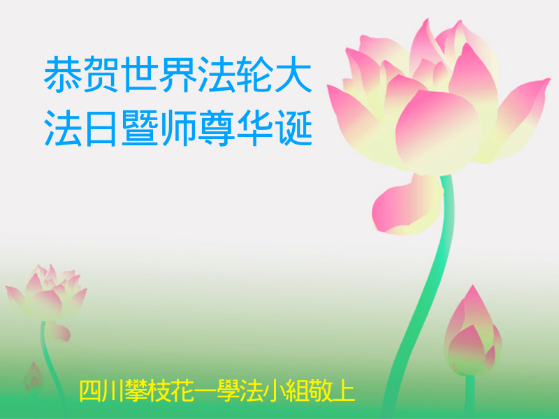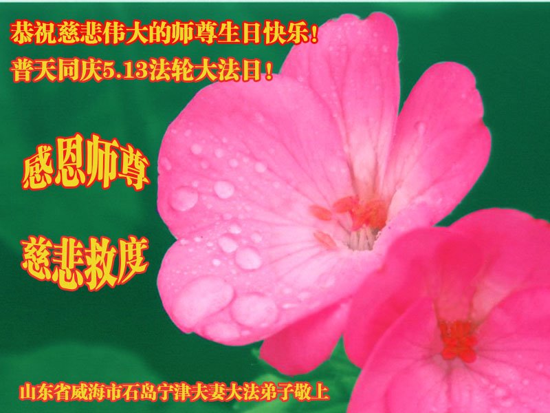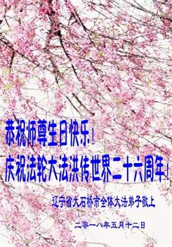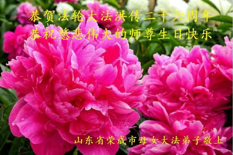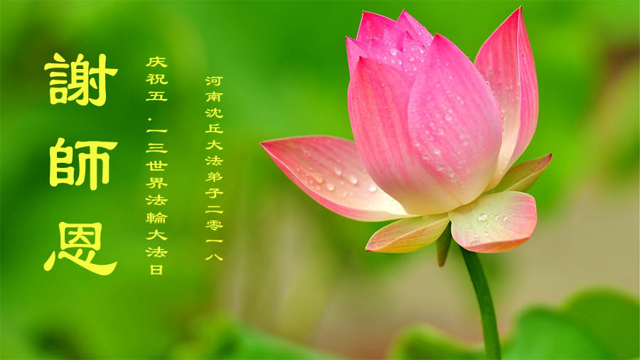 我们深谢恩师慈悲苦度!衷心恭祝师尊华诞快乐!在正法最后不多的时间里,我们一定会认真学好法,修好自己,从根本上改变常人的观念,正念正行,抓紧时间救度更多众生,完成正法时期大法弟子的历史使命,圆满跟随师尊回归家园。