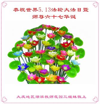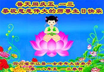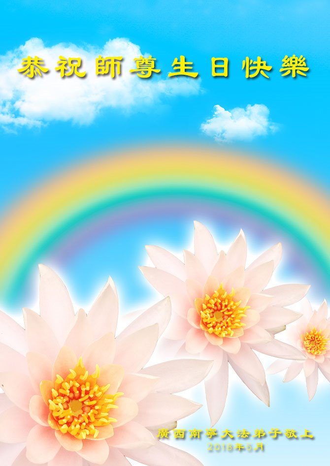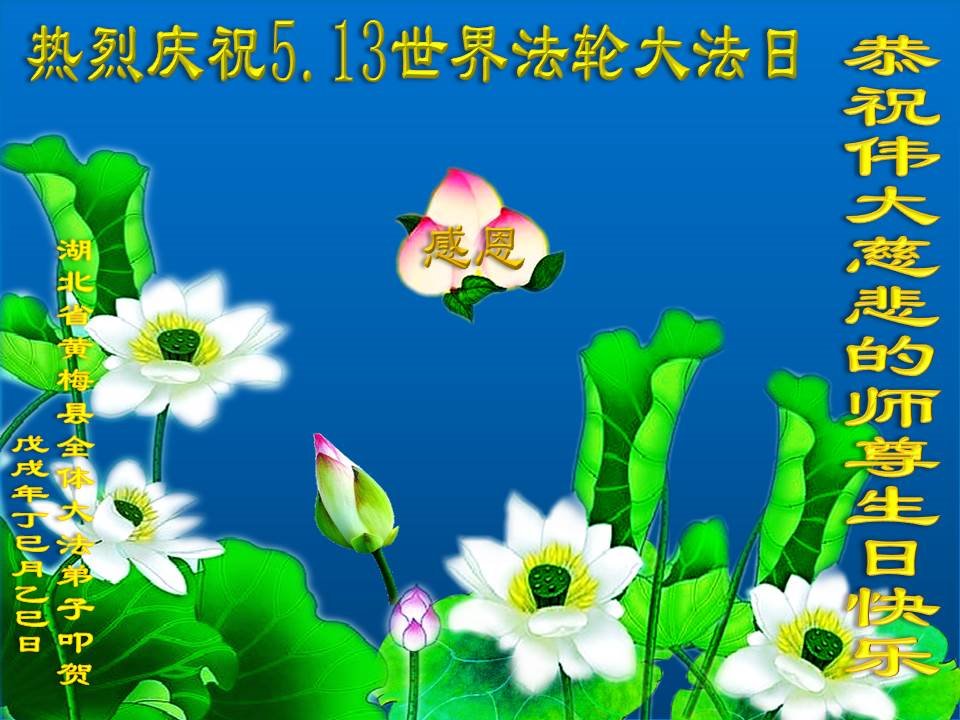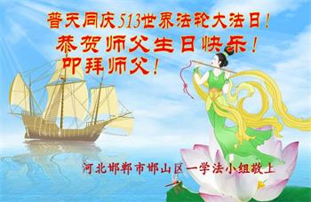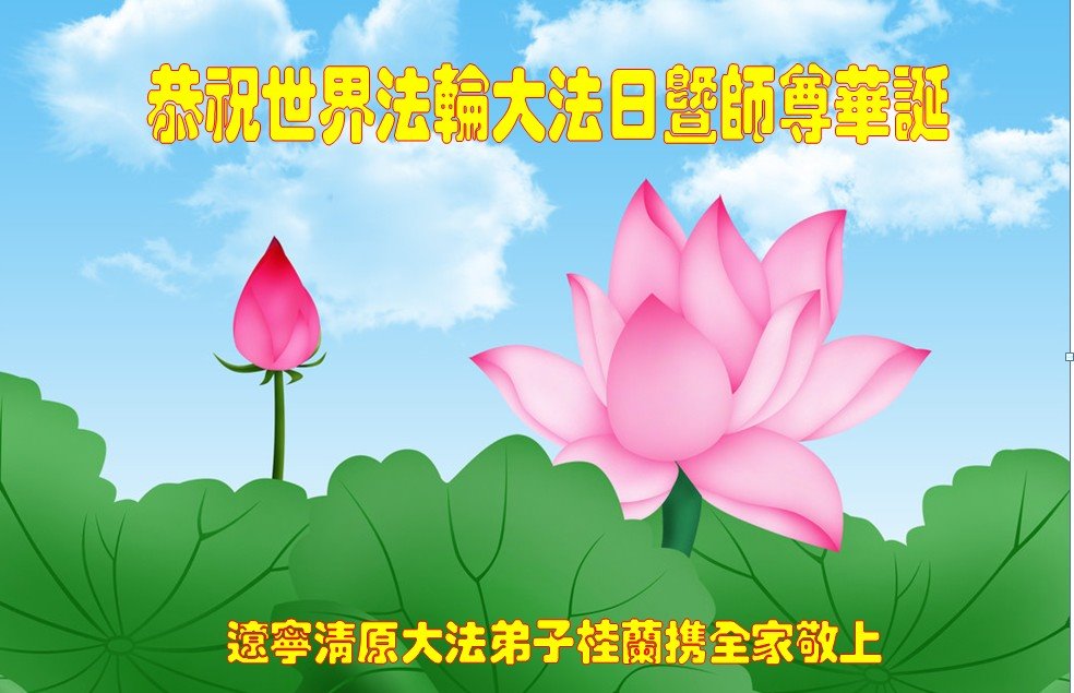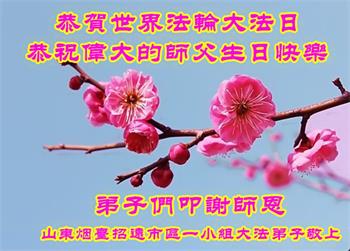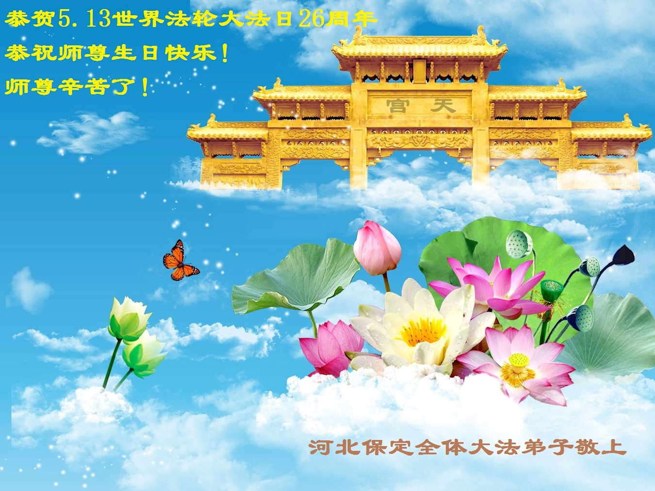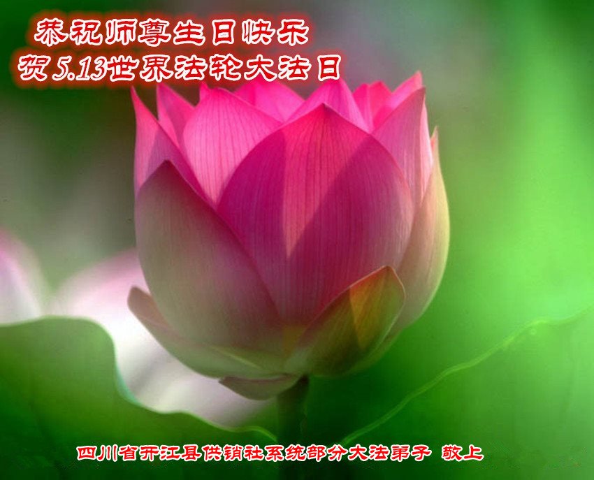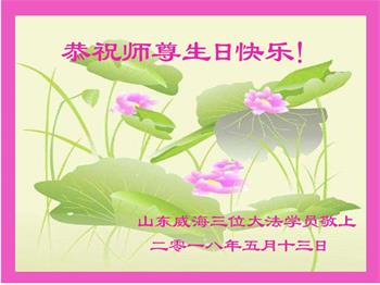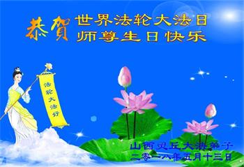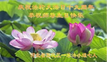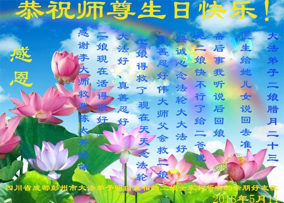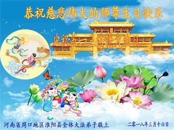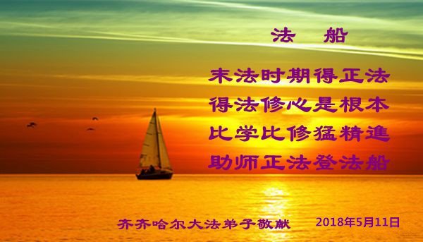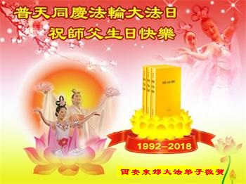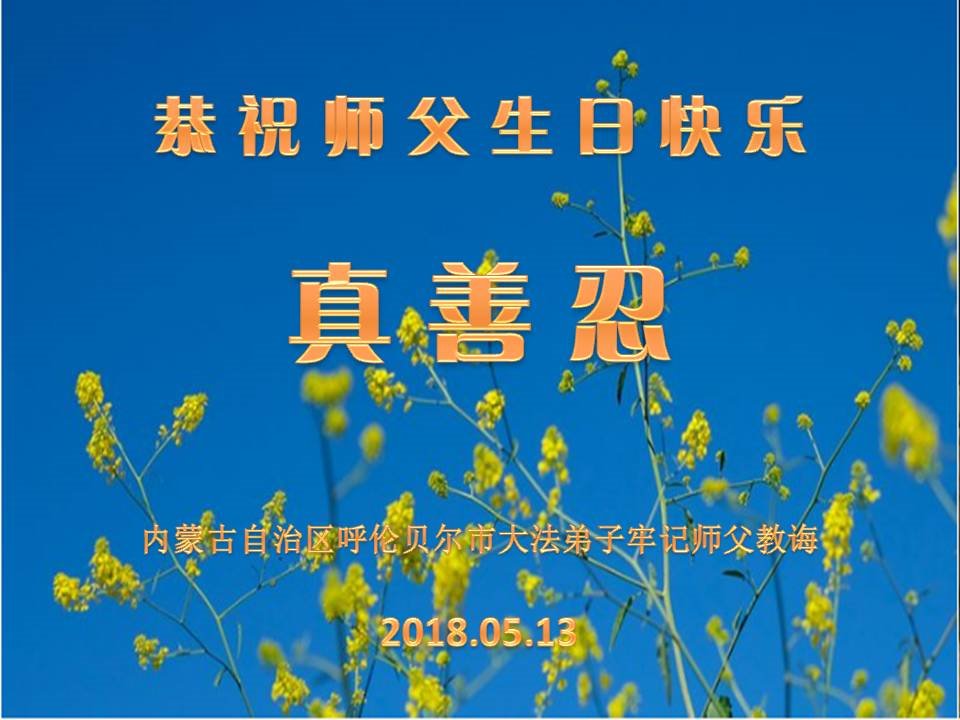 我们深谢恩师慈悲苦度!衷心恭祝师尊华诞快乐!在正法最后不多的时间里,我们一定会认真学好法,修好自己,从根本上改变常人的观念,正念正行,抓紧时间救度更多众生,完成正法时期大法弟子的历史使命,圆满跟随师尊回归家园。