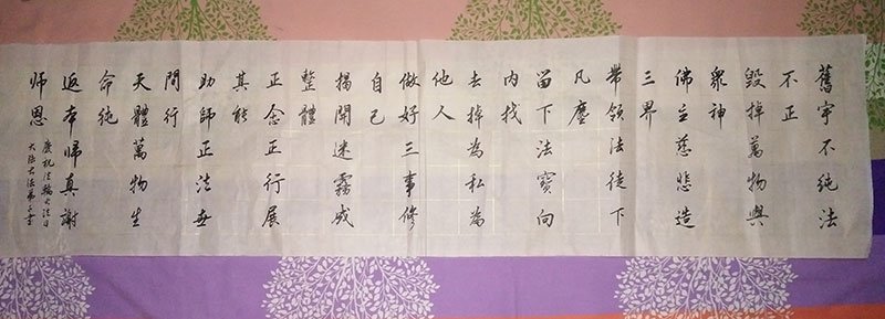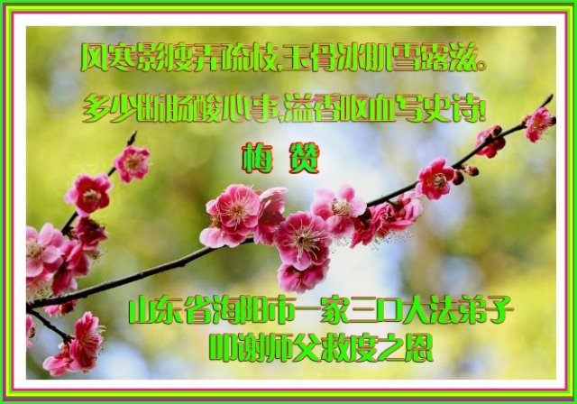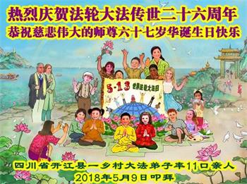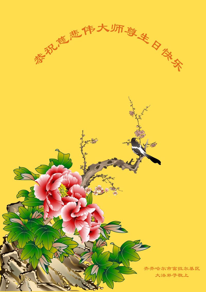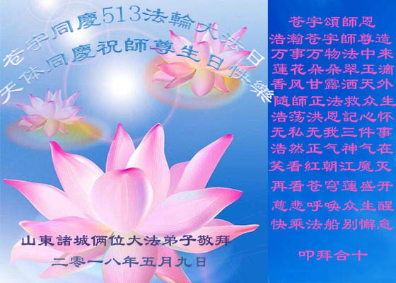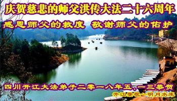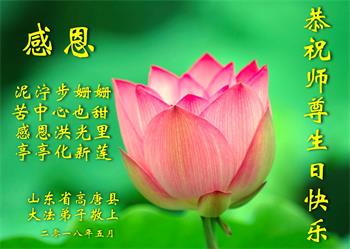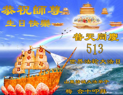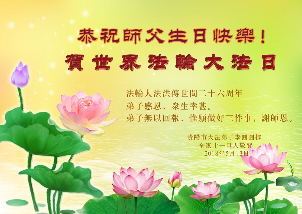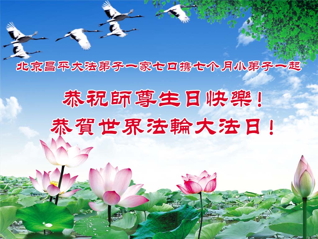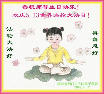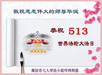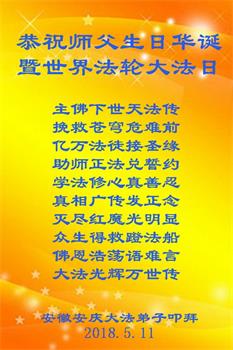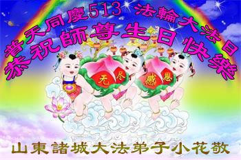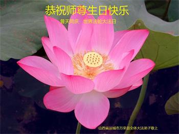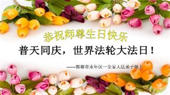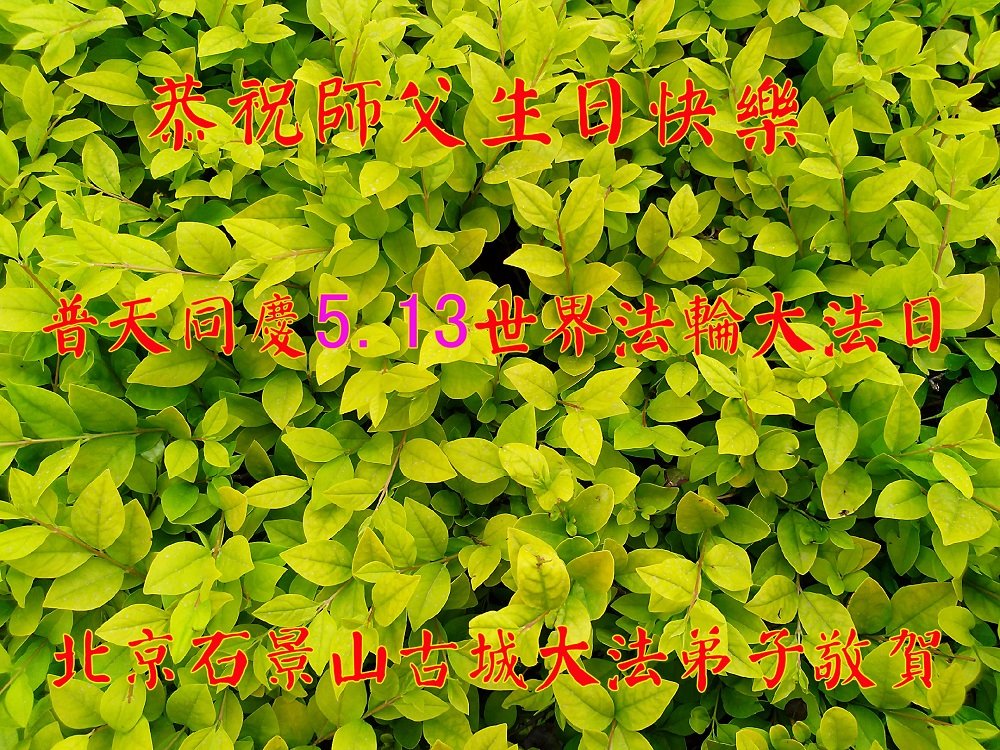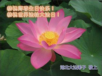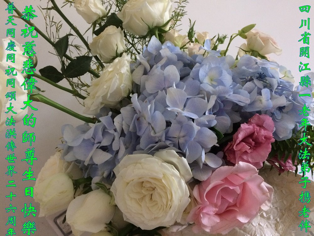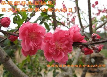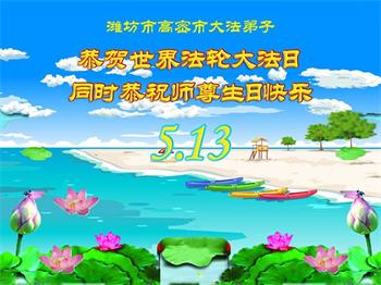 我们深谢恩师慈悲苦度!衷心恭祝师尊华诞快乐!在正法最后不多的时间里,我们一定会认真学好法,修好自己,从根本上改变常人的观念,正念正行,抓紧时间救度更多众生,完成正法时期大法弟子的历史使命,圆满跟随师尊回归家园。