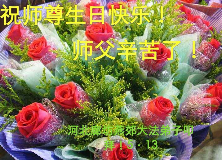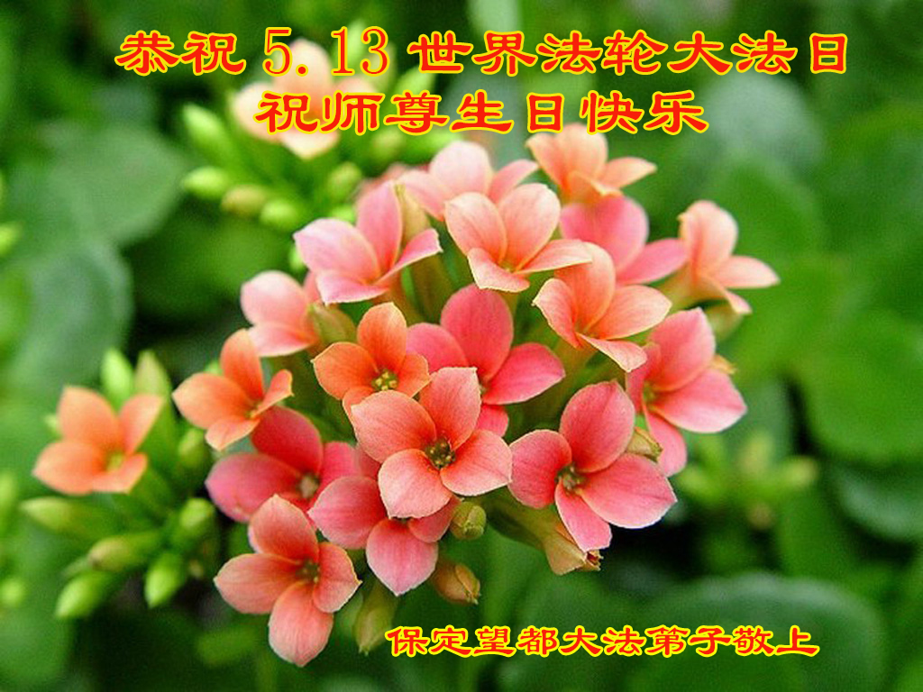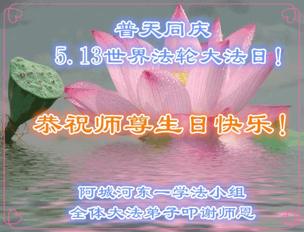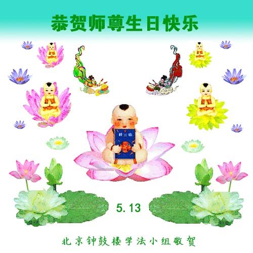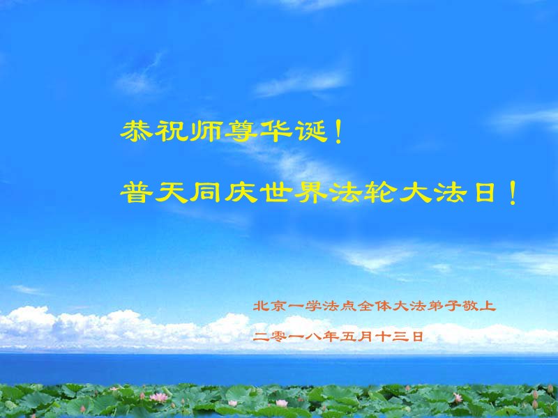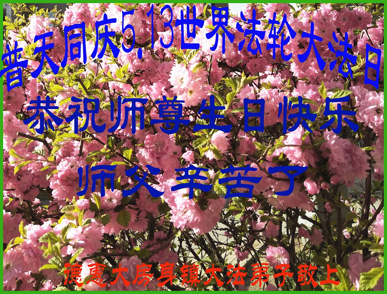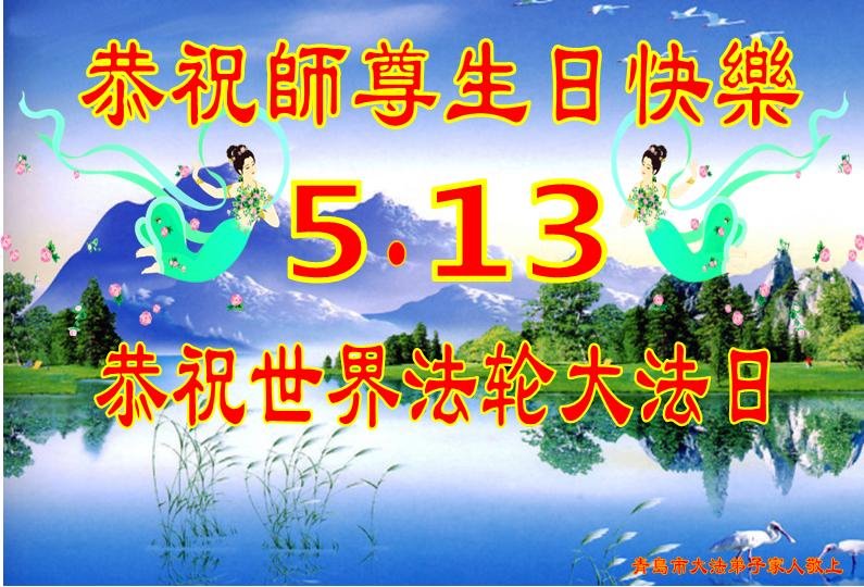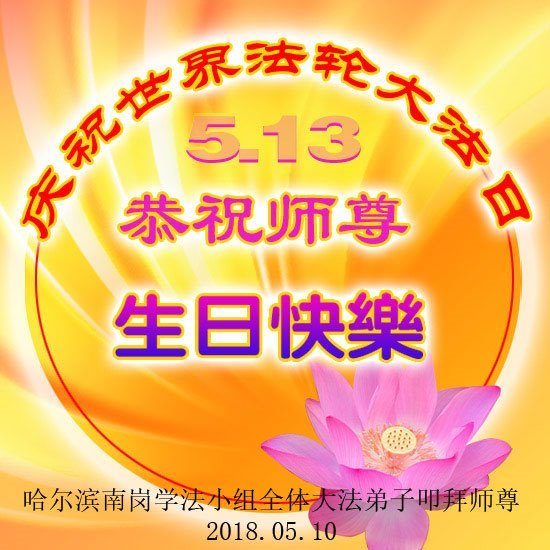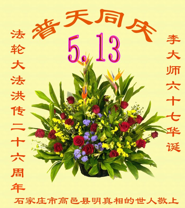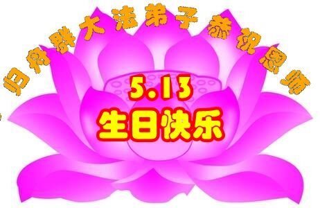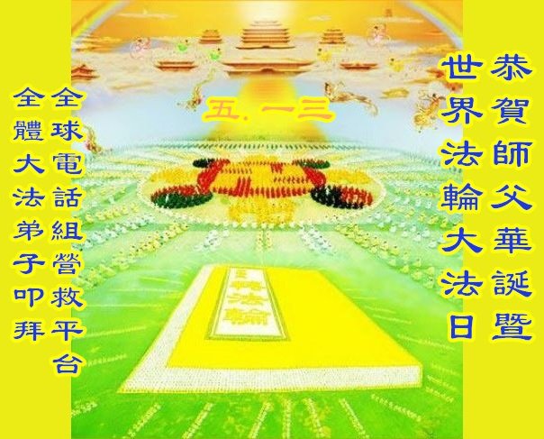 5月13日-----世界法轮大法日!在这普天同庆的美好时刻,全球电话组DHT平台紧急接力组全体大法弟子恭祝慈悲伟大的师尊:生日快乐!