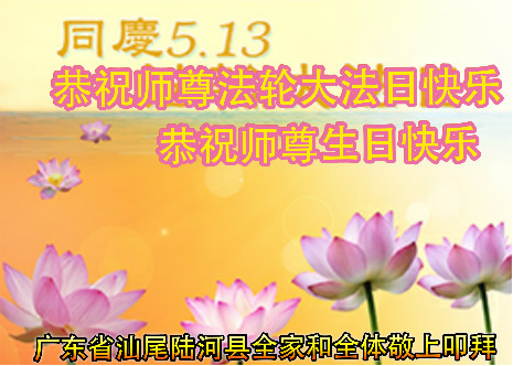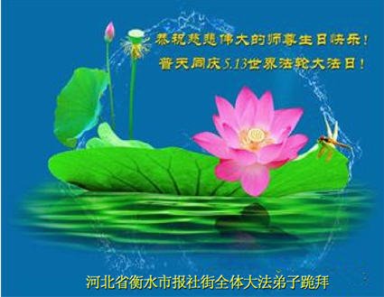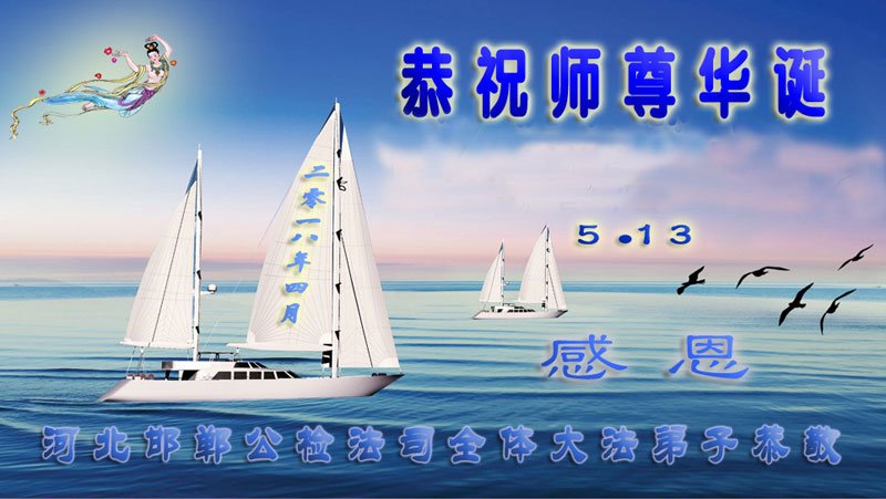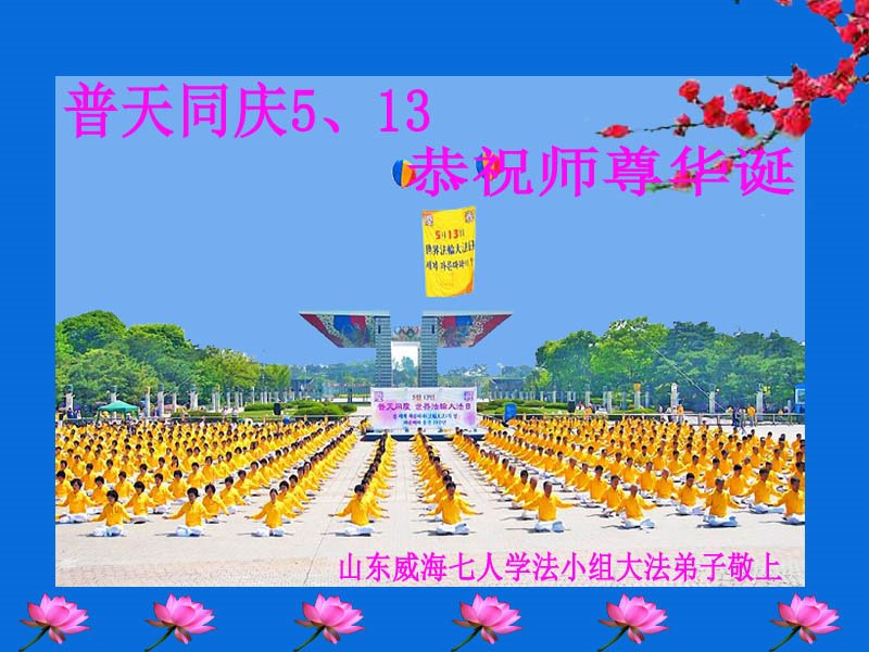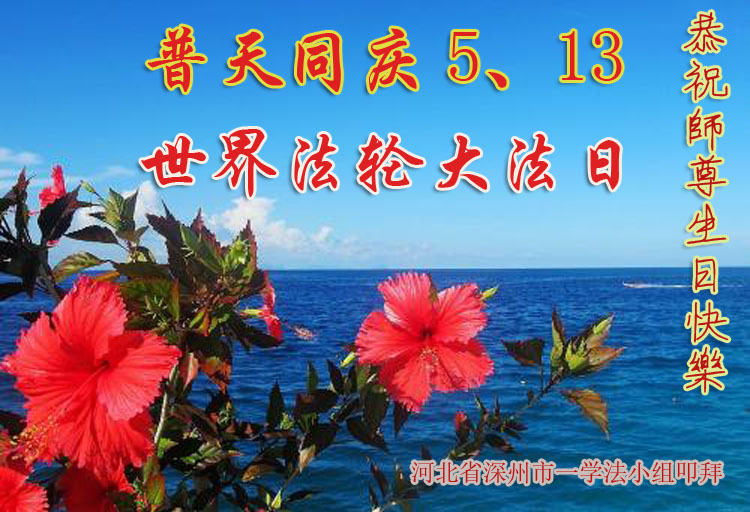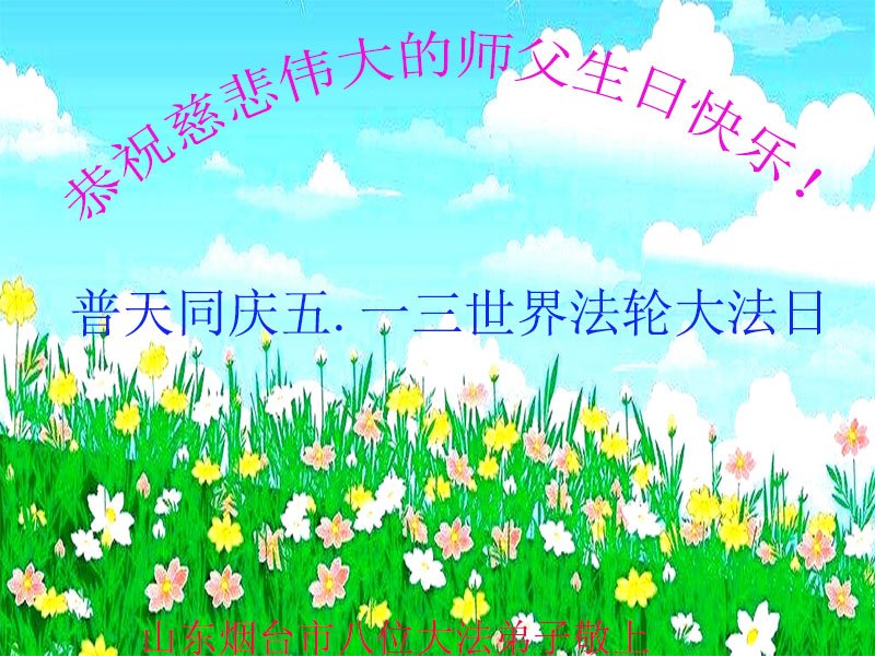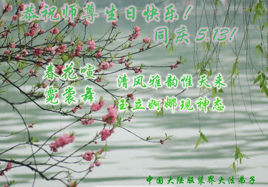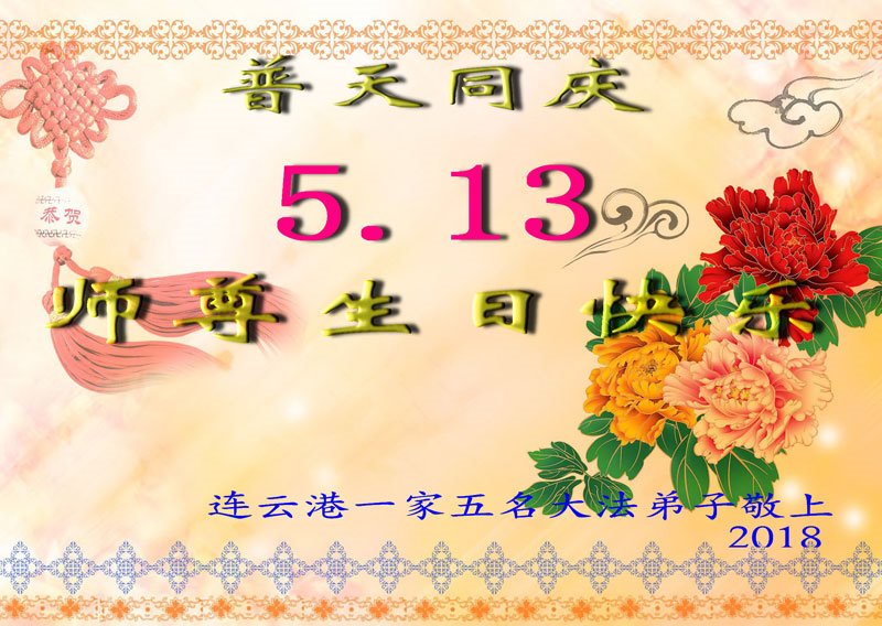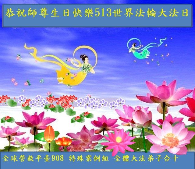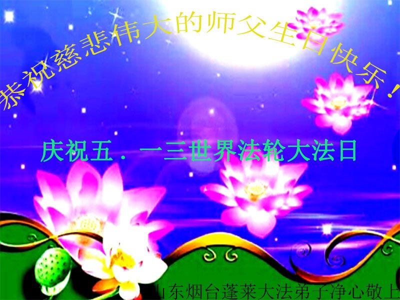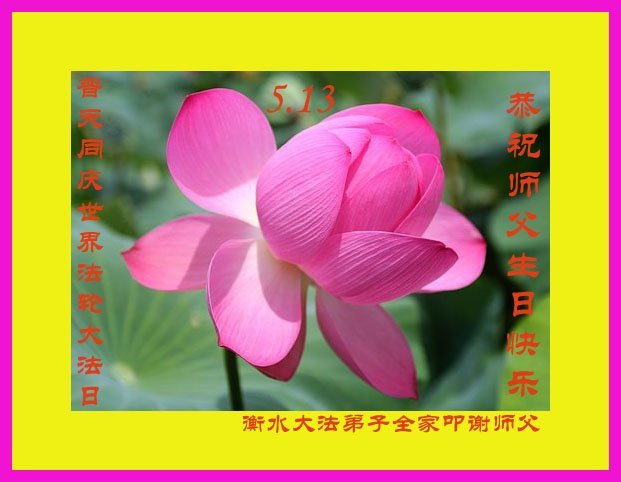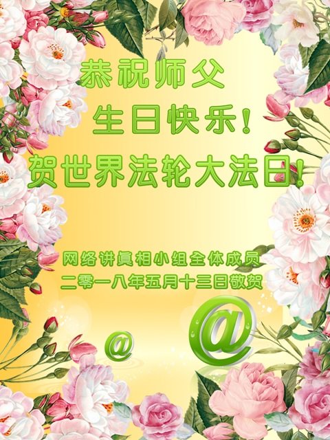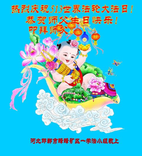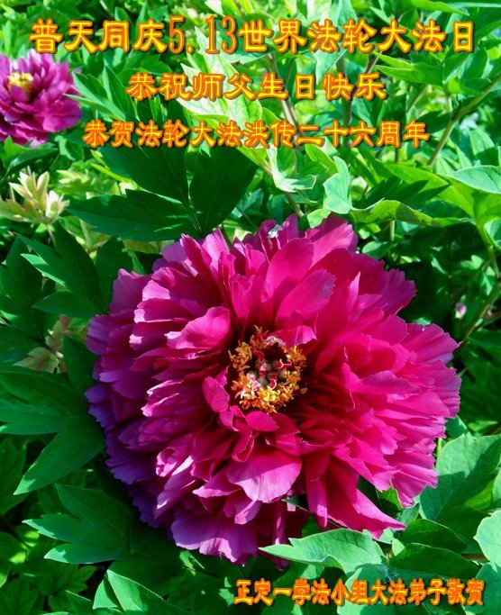 5月13日-----世界法轮大法日!在这普天同庆的美好时刻,全球电话组DHT平台紧急接力组全体大法弟子恭祝慈悲伟大的师尊:生日快乐!