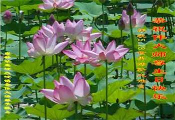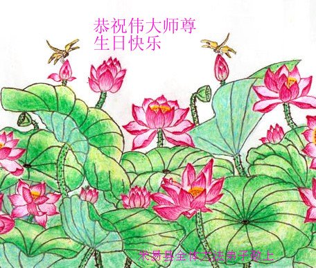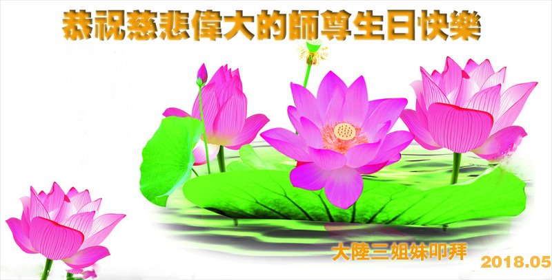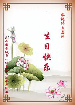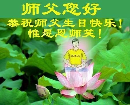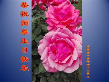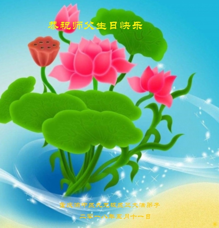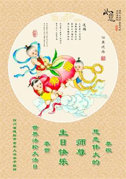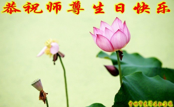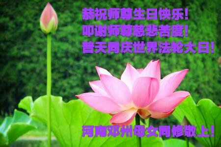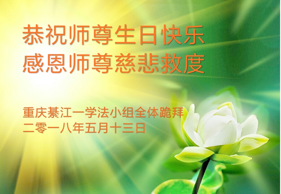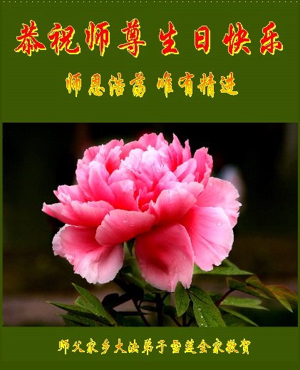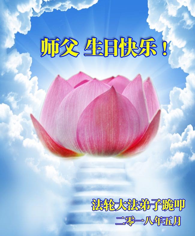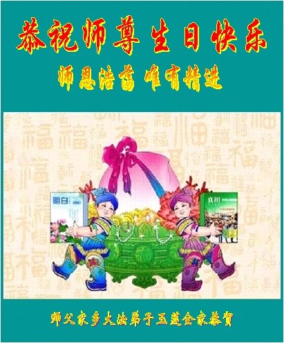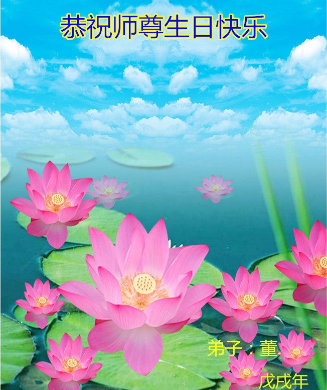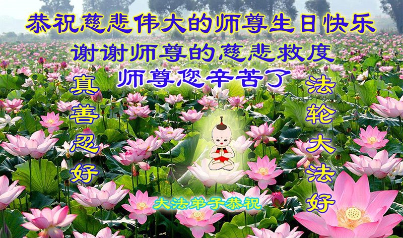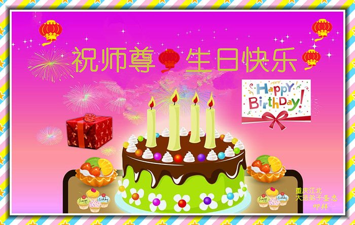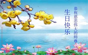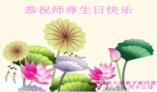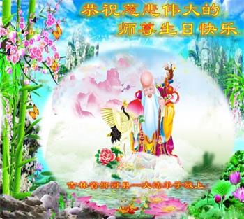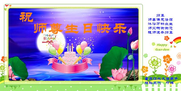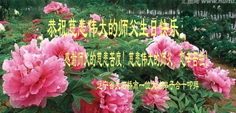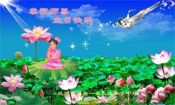 值此普天同庆的日子,弟子叩拜师尊!祝师尊生日快乐!我们一定按师父的要求,做好三件事,勇猛精進,修炼如初。紧随师行,多多救人。完成我们的神圣誓约,以报师恩。