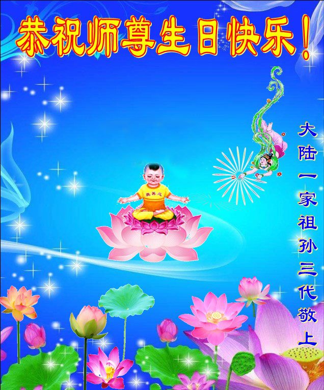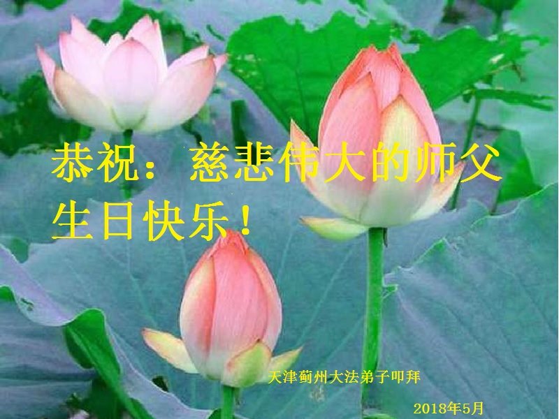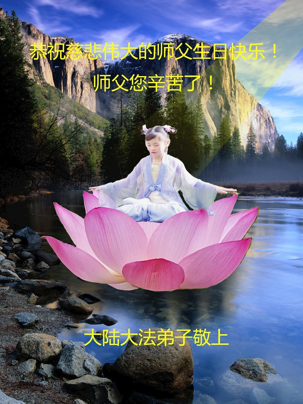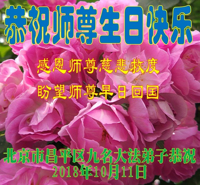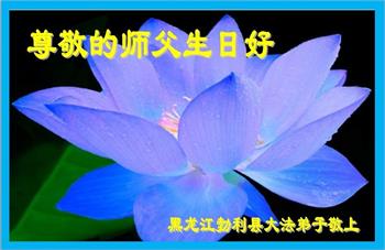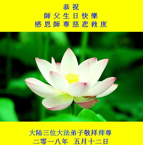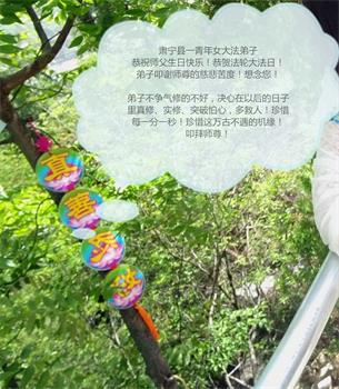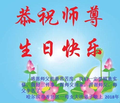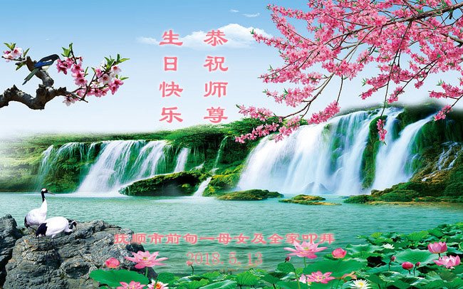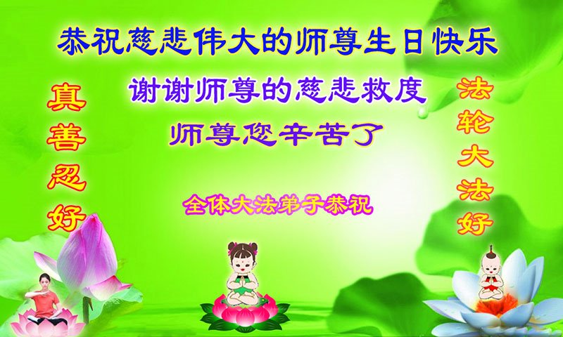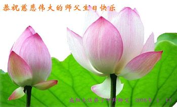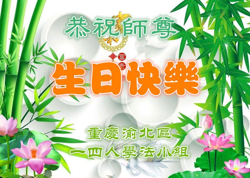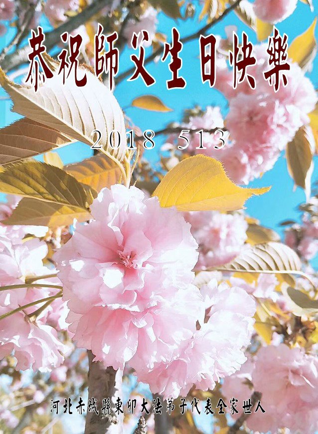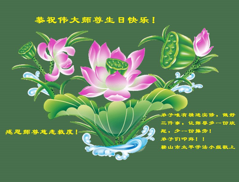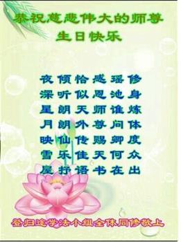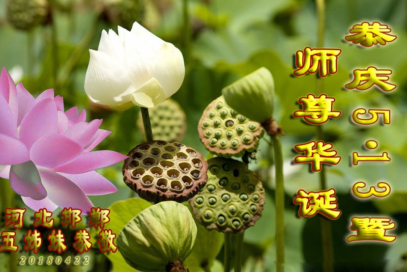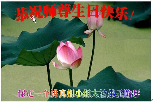 值此普天同庆的日子,弟子叩拜师尊!祝师尊生日快乐!我们一定按师父的要求,做好三件事,勇猛精進,修炼如初。紧随师行,多多救人。完成我们的神圣誓约,以报师恩。