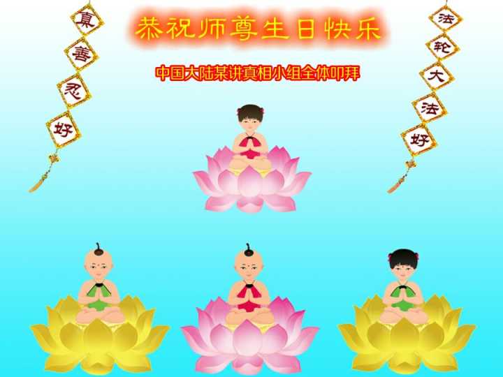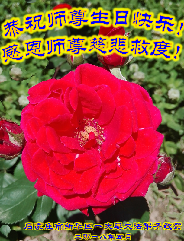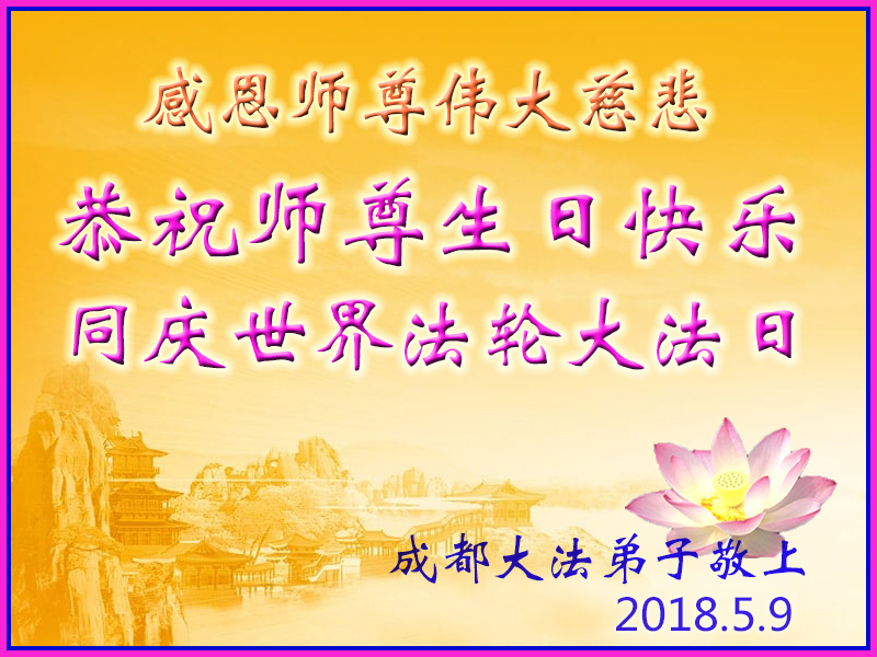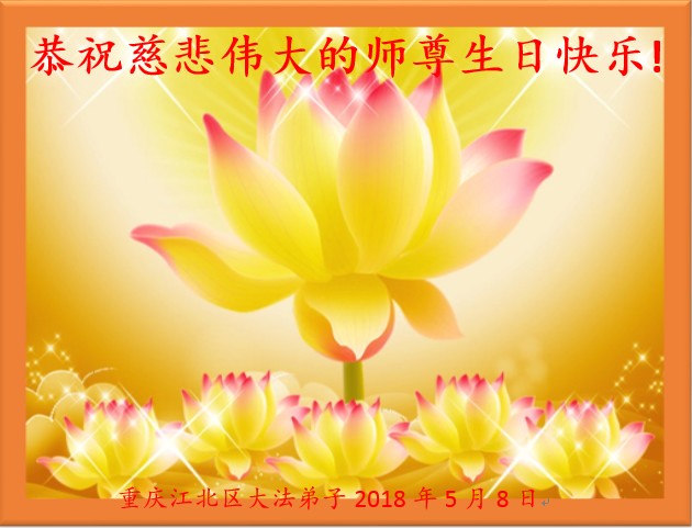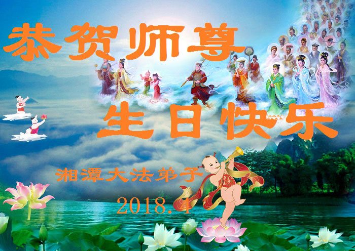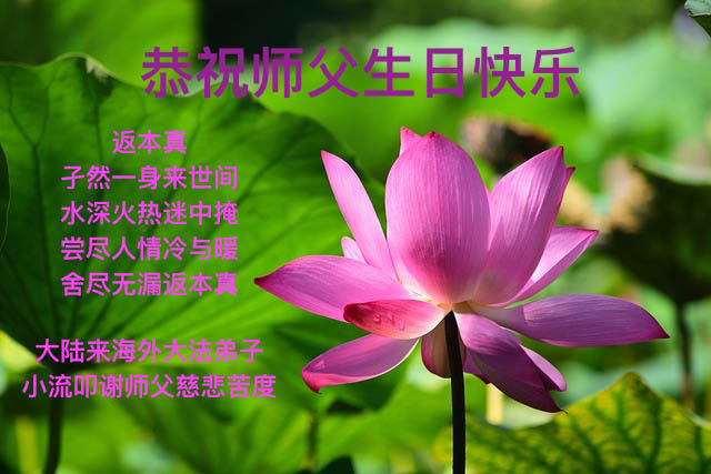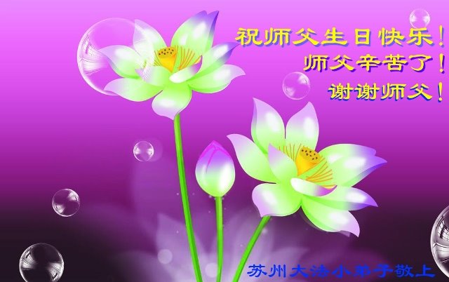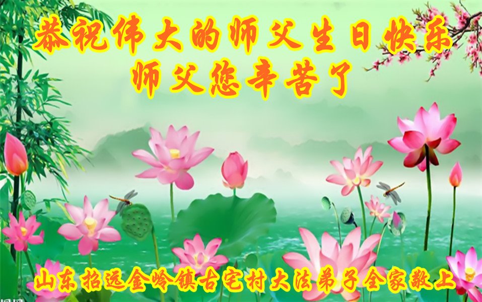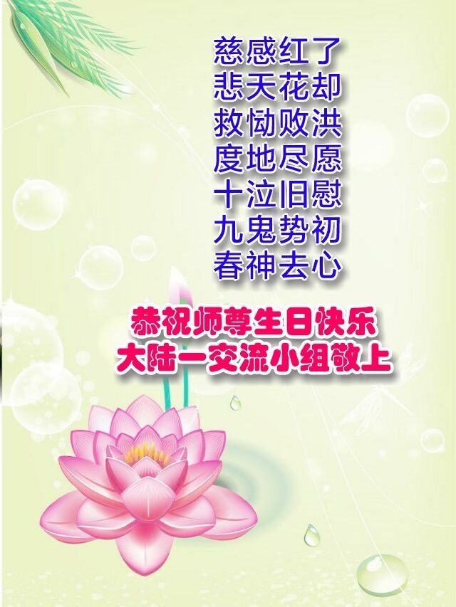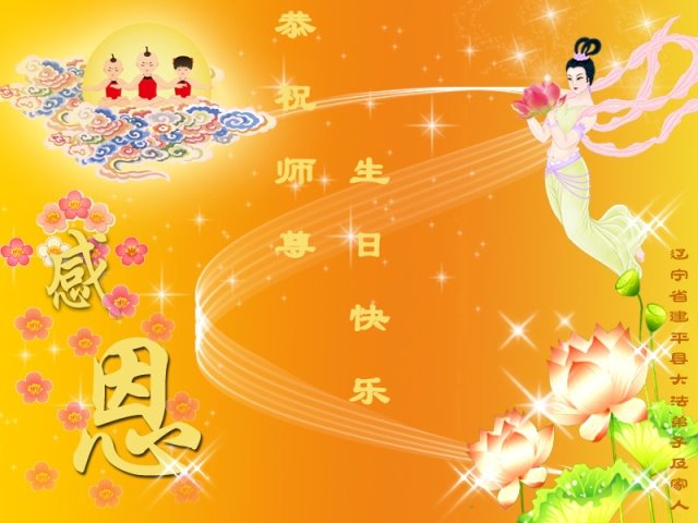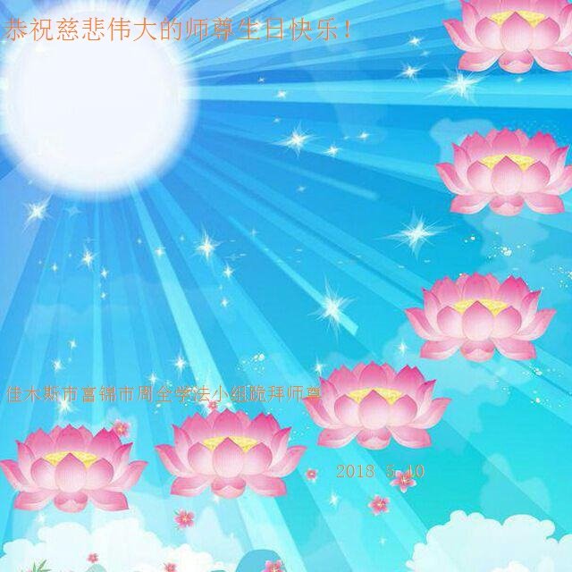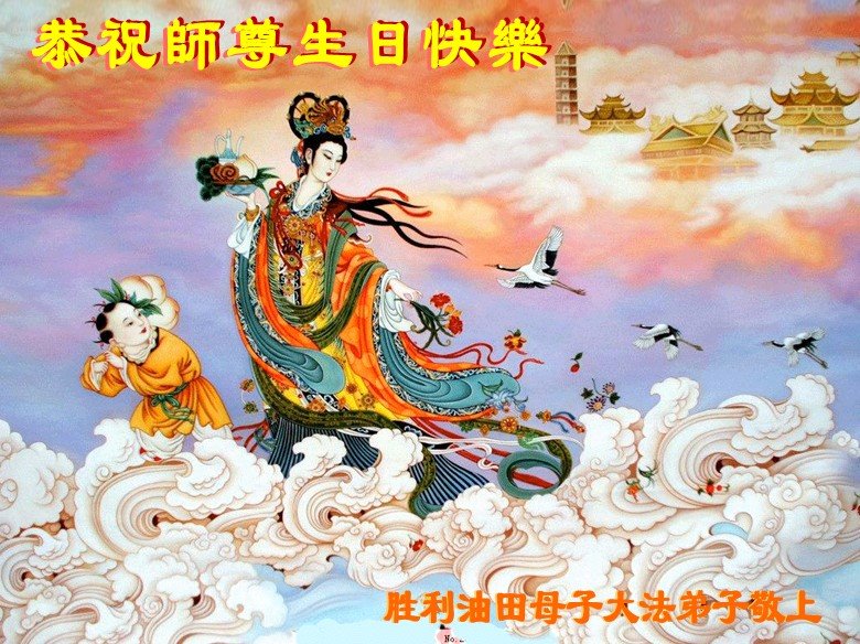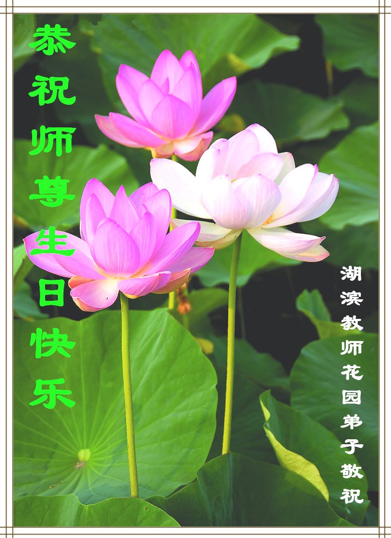 值此普天同庆的日子,弟子叩拜师尊!祝师尊生日快乐!我们一定按师父的要求,做好三件事,勇猛精進,修炼如初。紧随师行,多多救人。完成我们的神圣誓约,以报师恩。