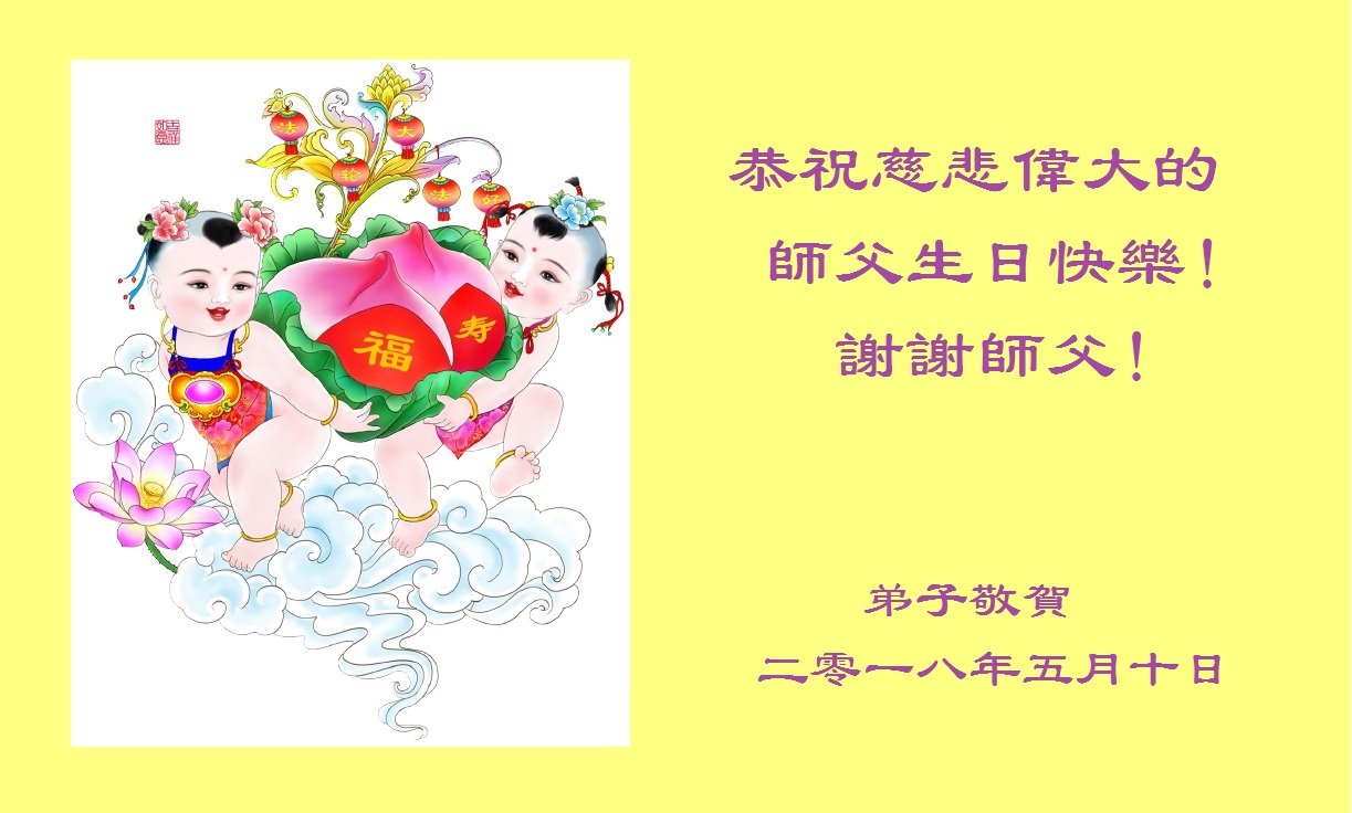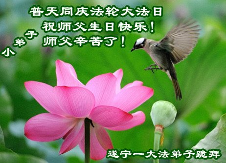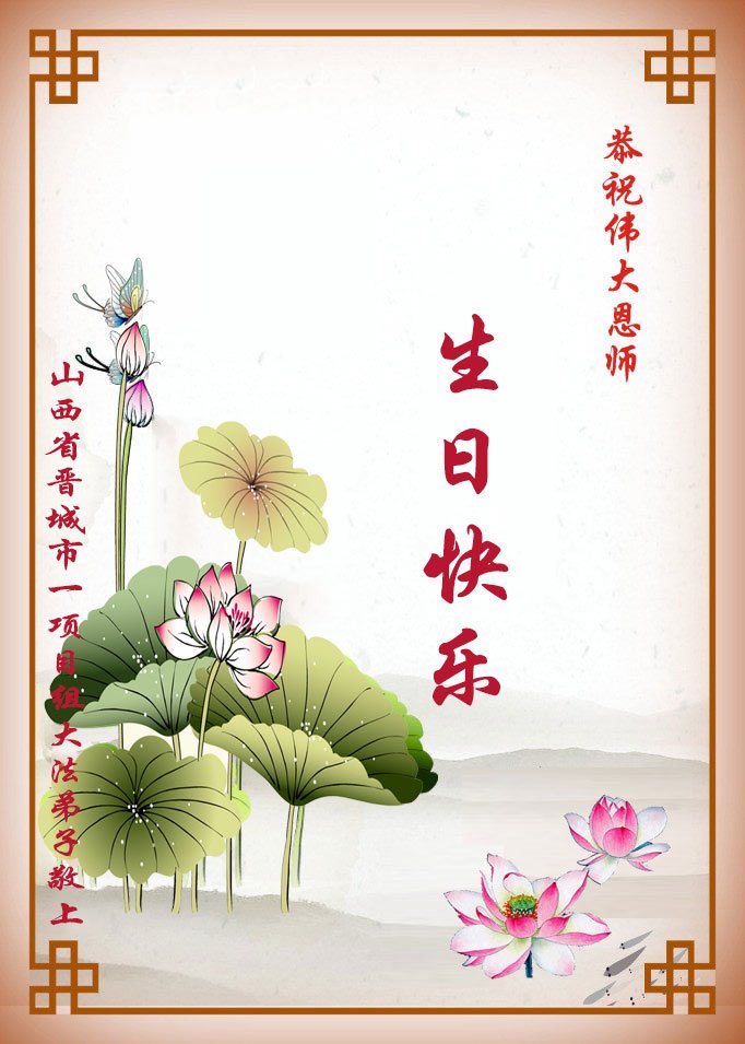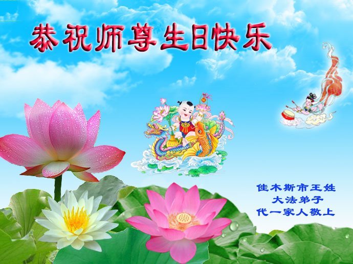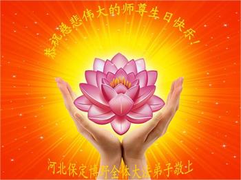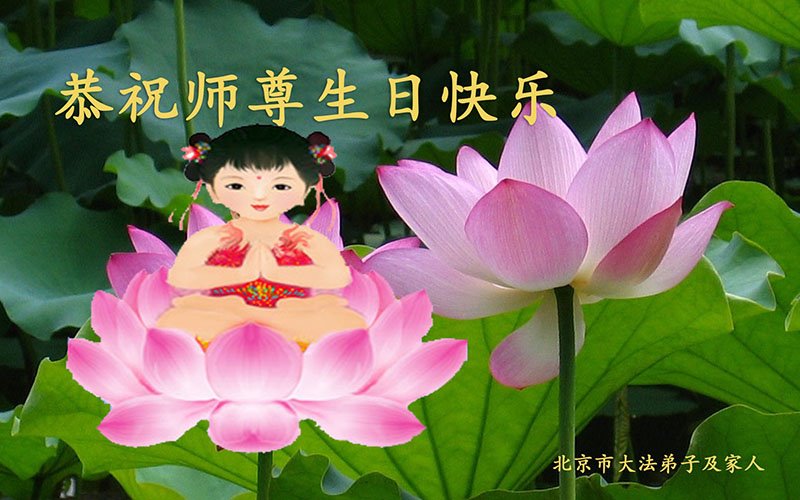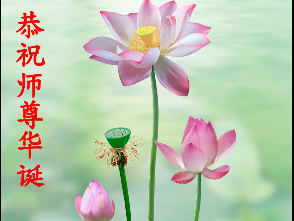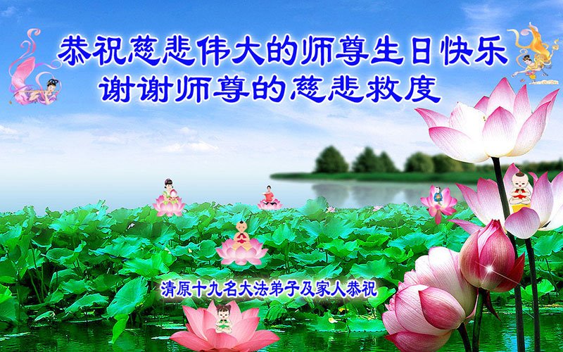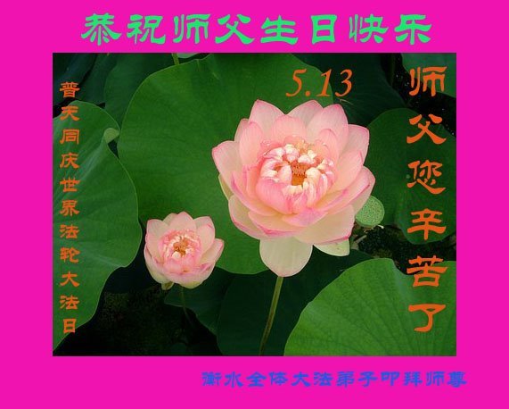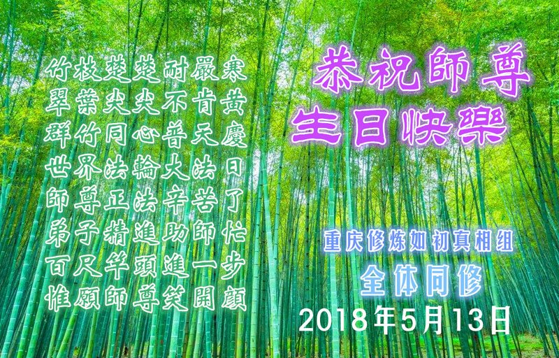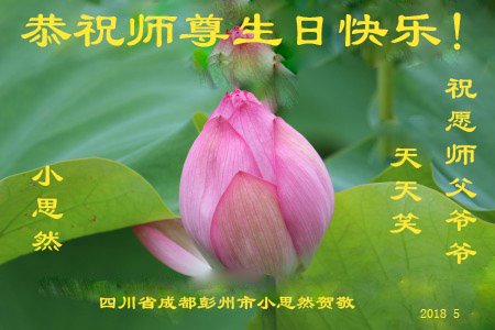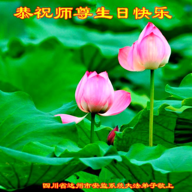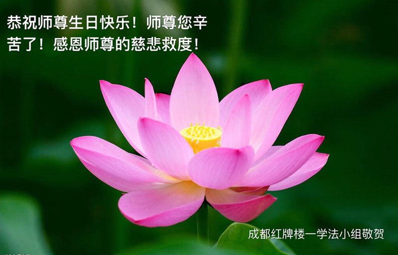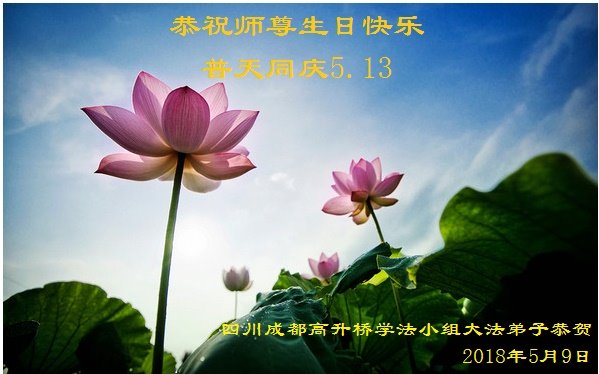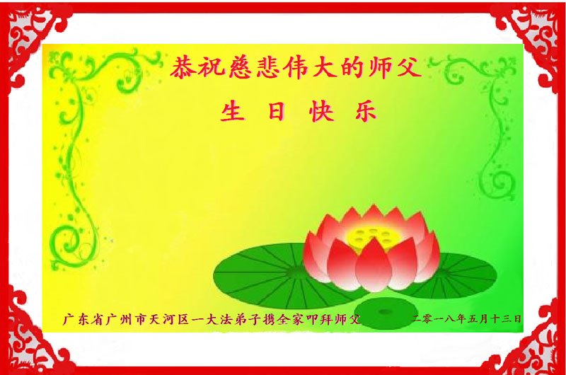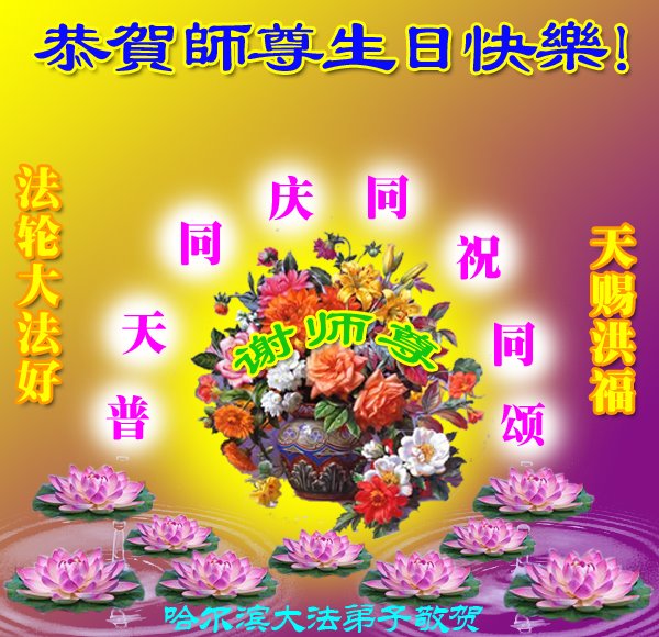 值此普天同庆的日子,弟子叩拜师尊!祝师尊生日快乐!我们一定按师父的要求,做好三件事,勇猛精進,修炼如初。紧随师行,多多救人。完成我们的神圣誓约,以报师恩。
