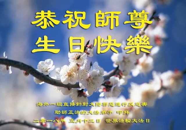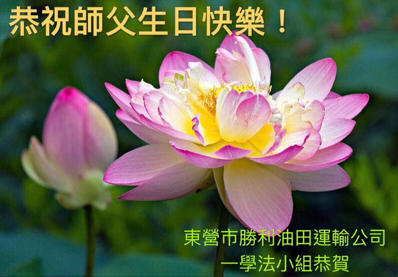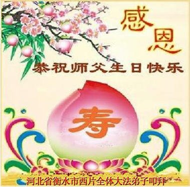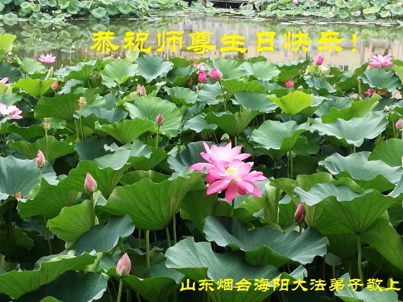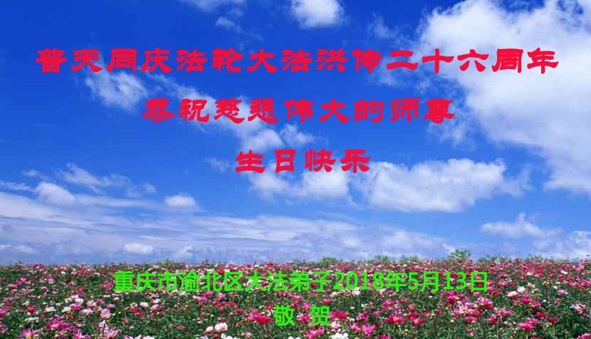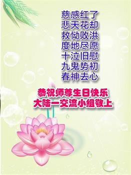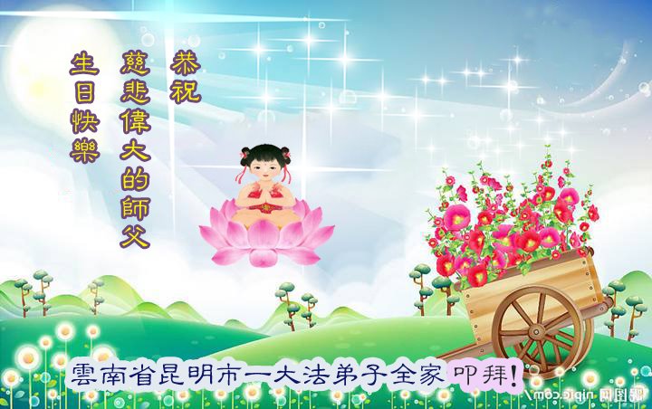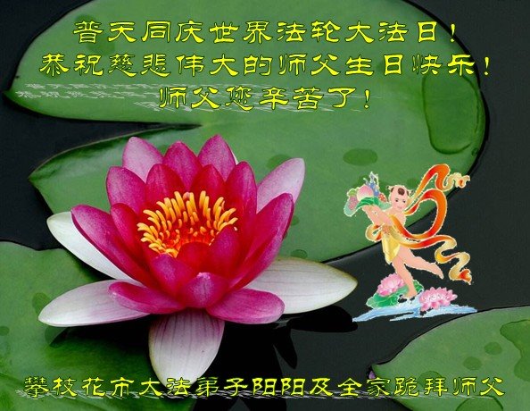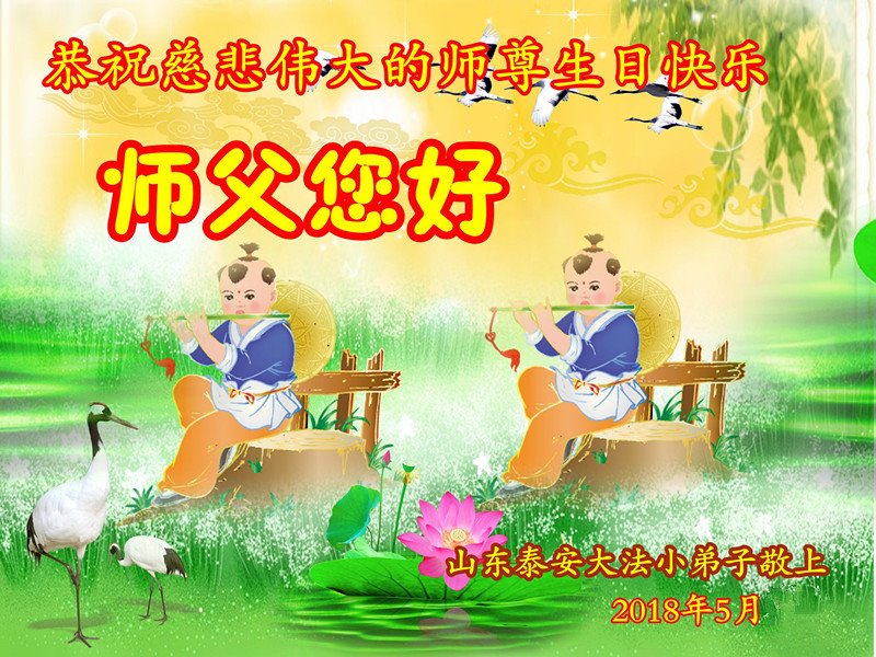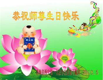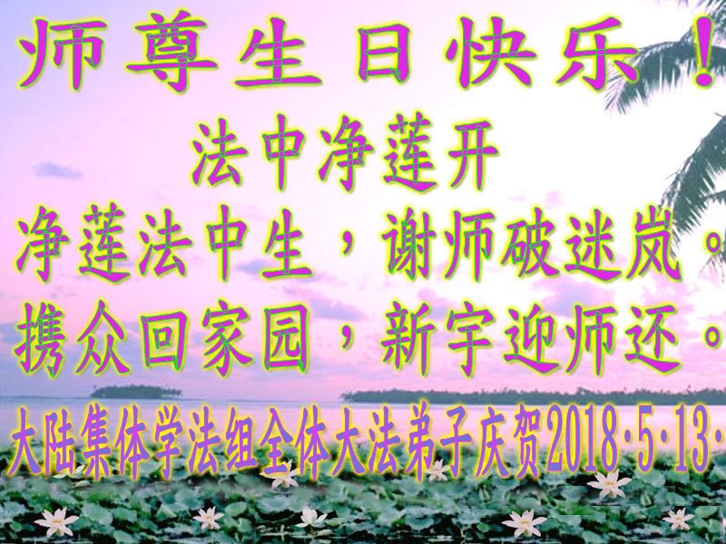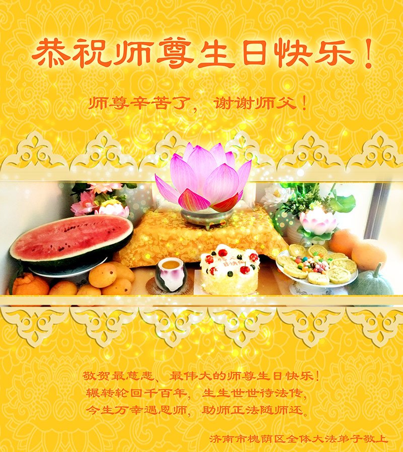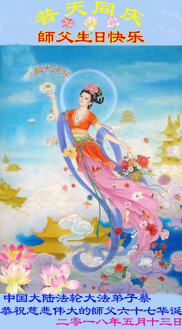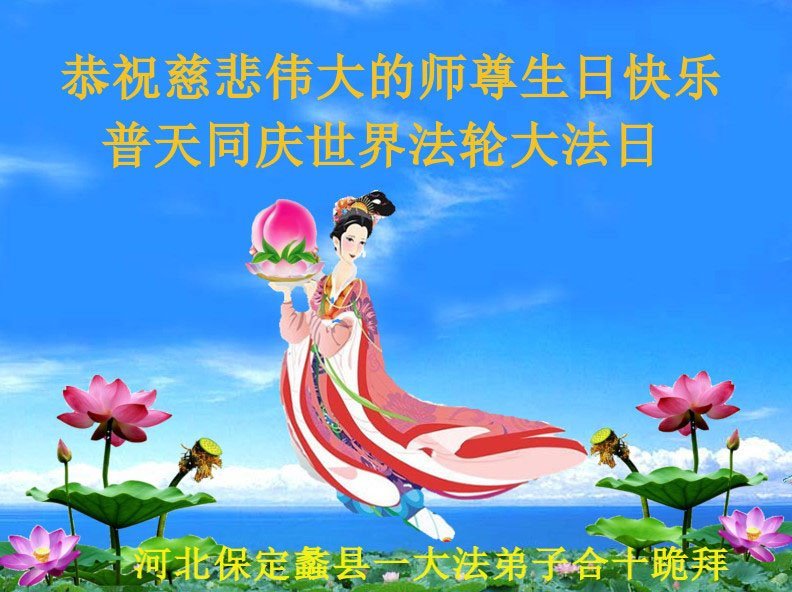 值此普天同庆的日子,弟子叩拜师尊!祝师尊生日快乐!我们一定按师父的要求,做好三件事,勇猛精進,修炼如初。紧随师行,多多救人。完成我们的神圣誓约,以报师恩。