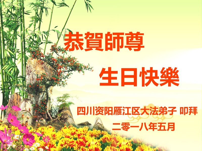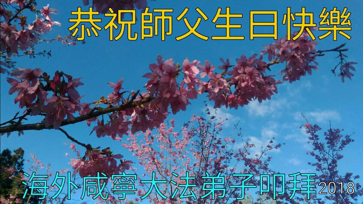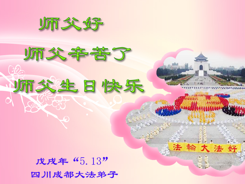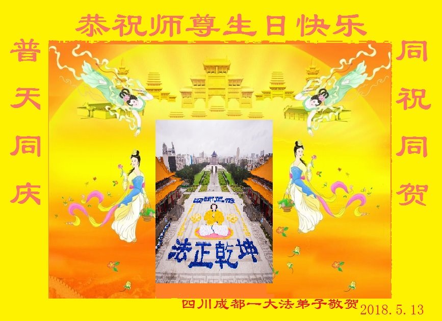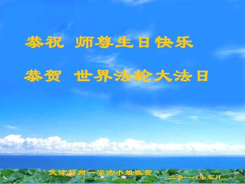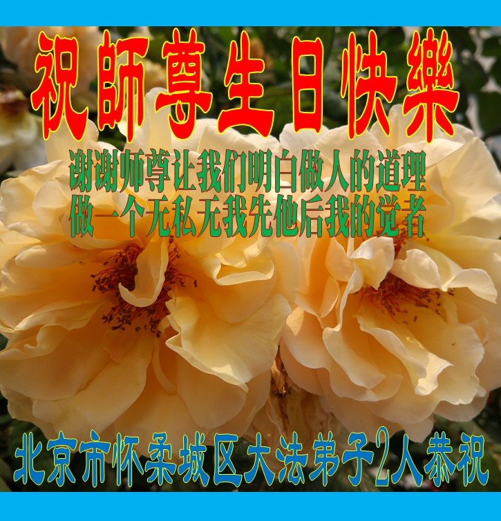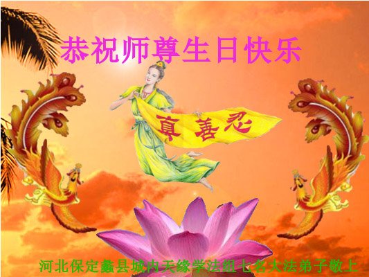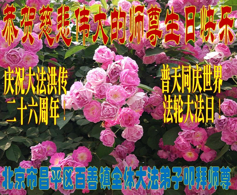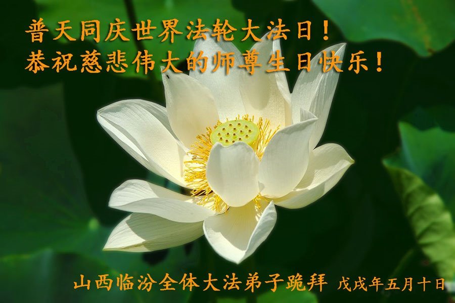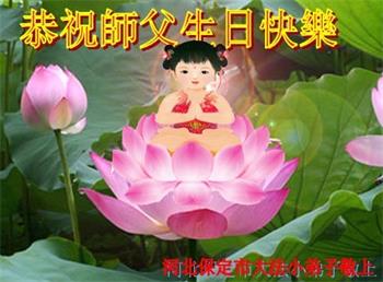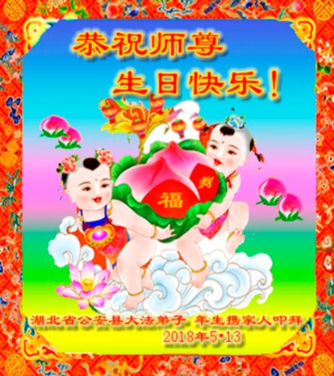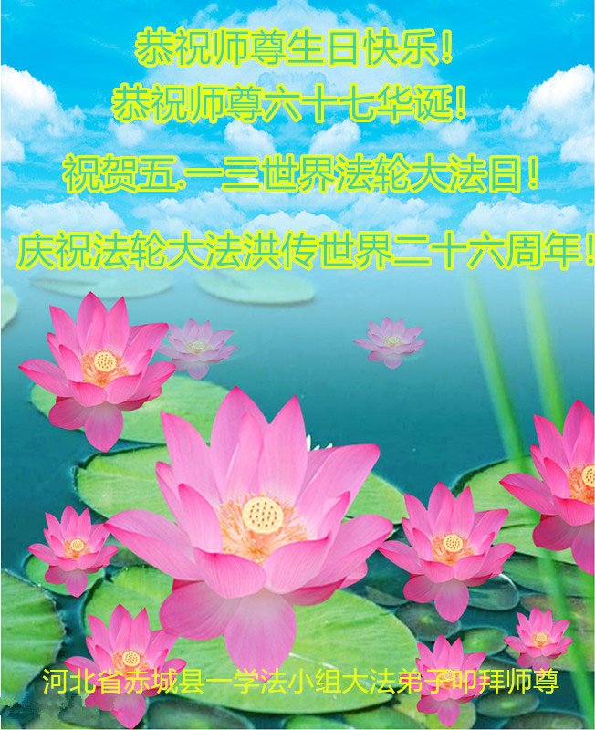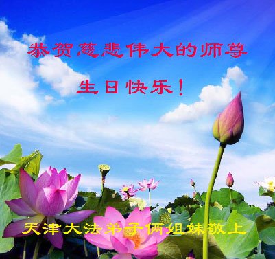 值此普天同庆的日子,弟子叩拜师尊!祝师尊生日快乐!我们一定按师父的要求,做好三件事,勇猛精進,修炼如初。紧随师行,多多救人。完成我们的神圣誓约,以报师恩。