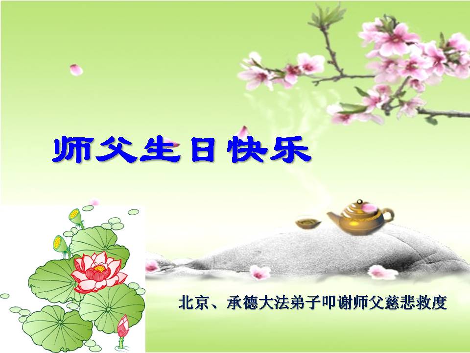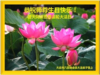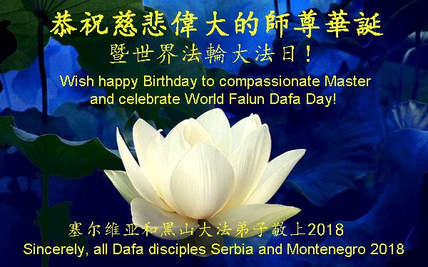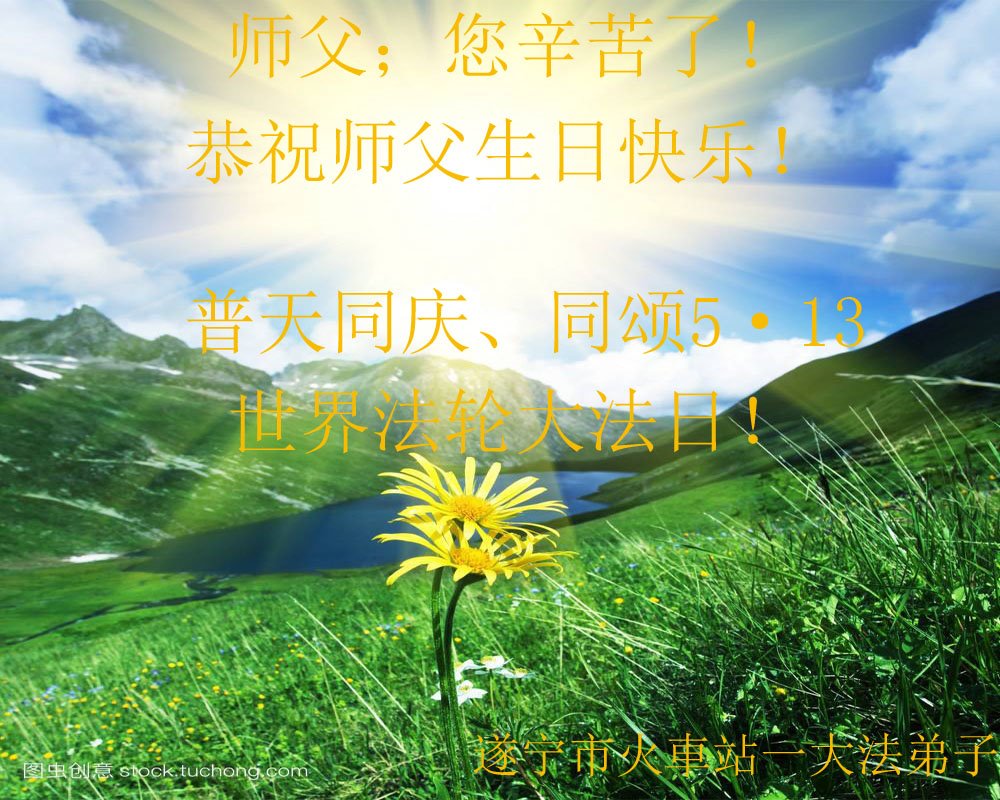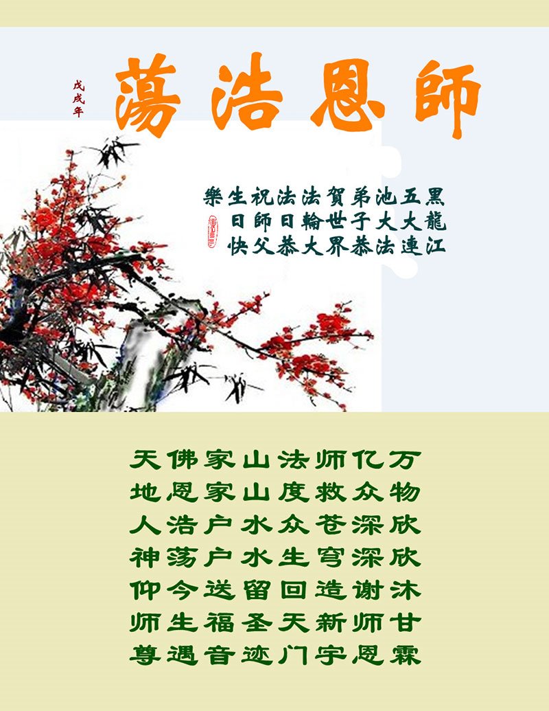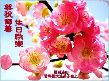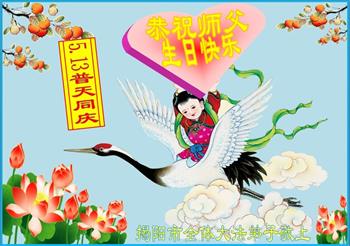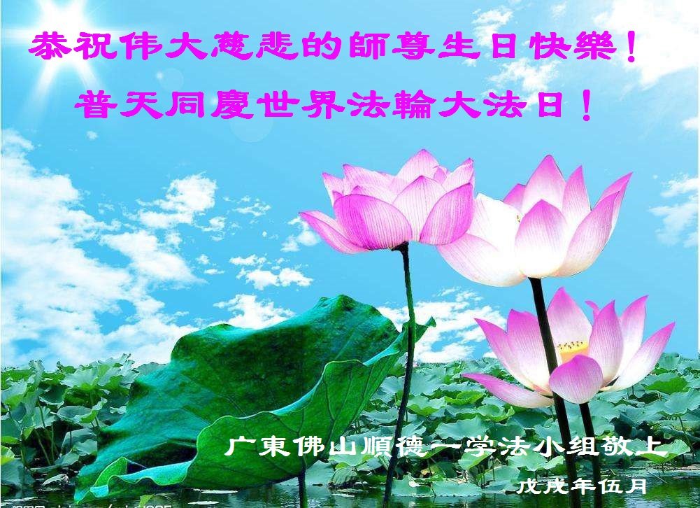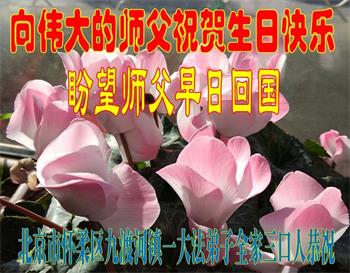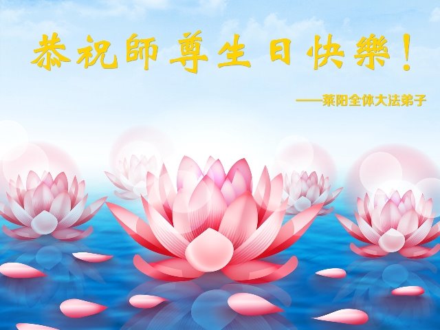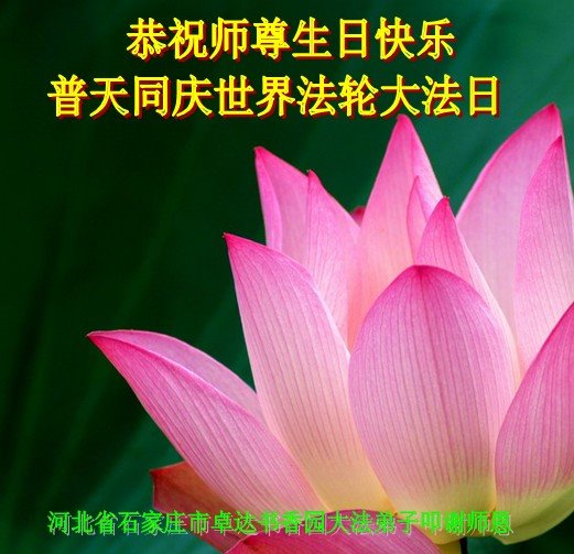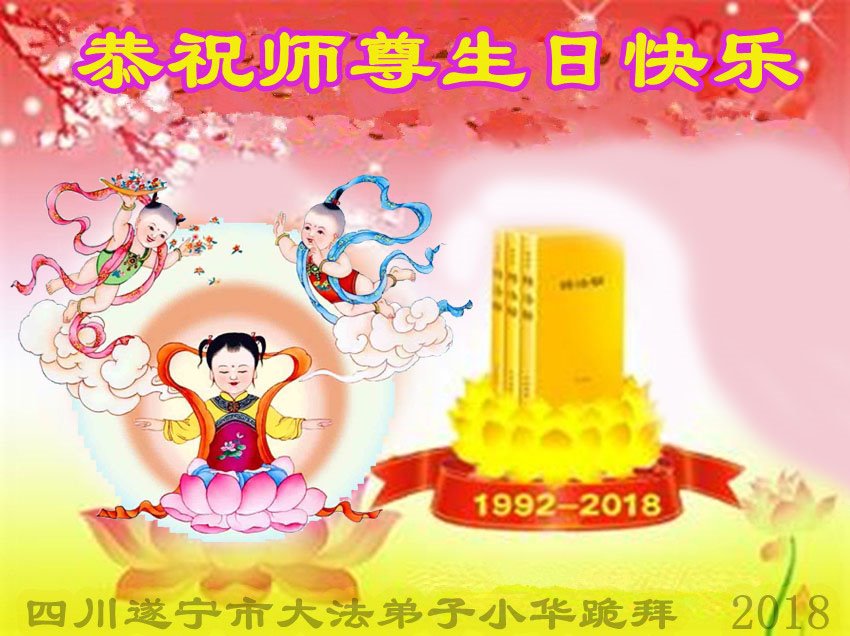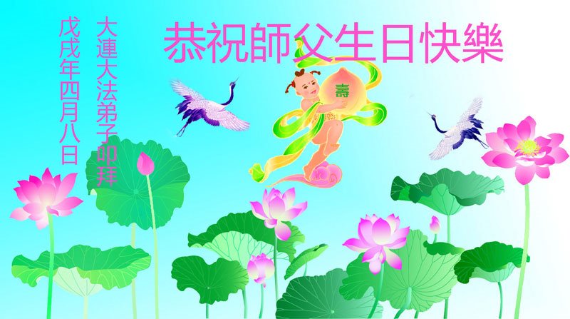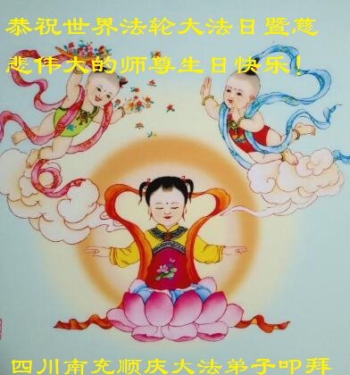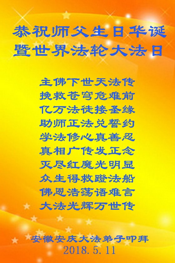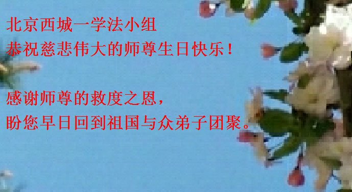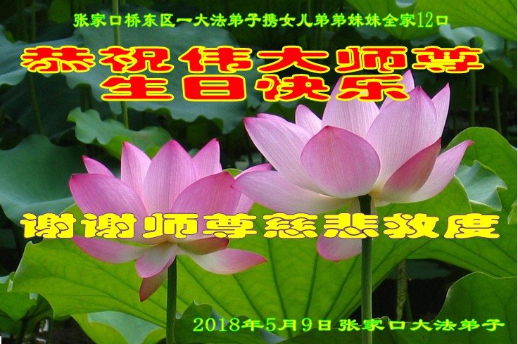 值此普天同庆的日子,弟子叩拜师尊!祝师尊生日快乐!我们一定按师父的要求,做好三件事,勇猛精進,修炼如初。紧随师行,多多救人。完成我们的神圣誓约,以报师恩。