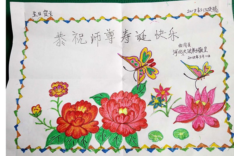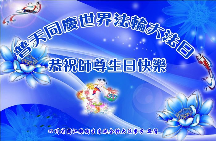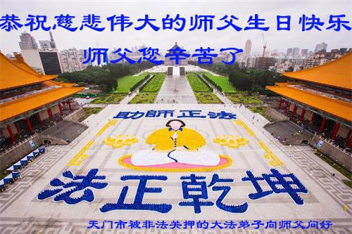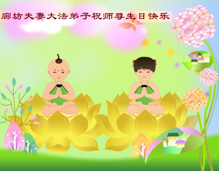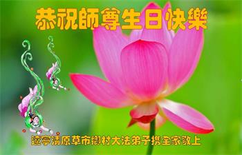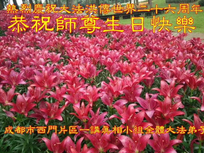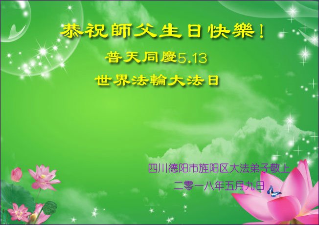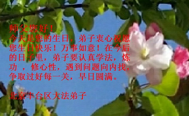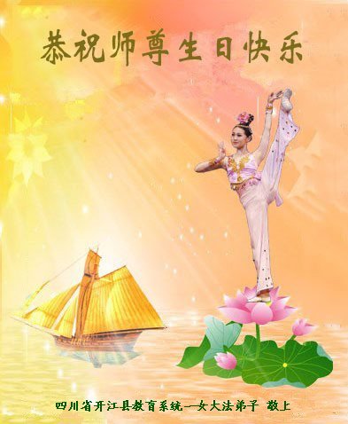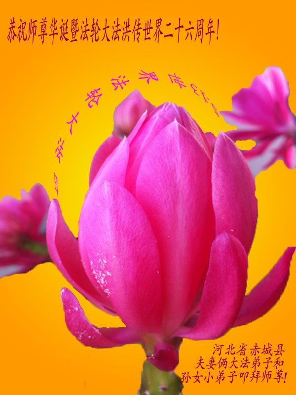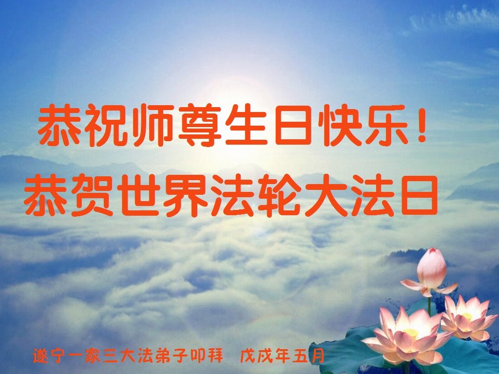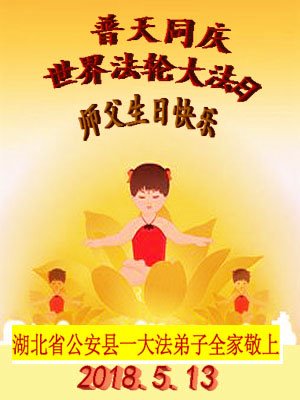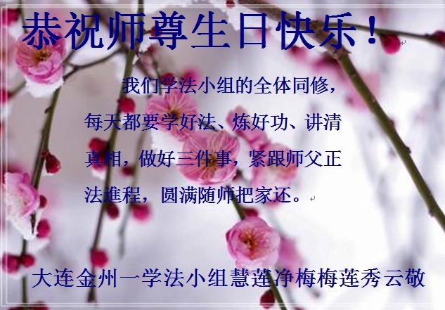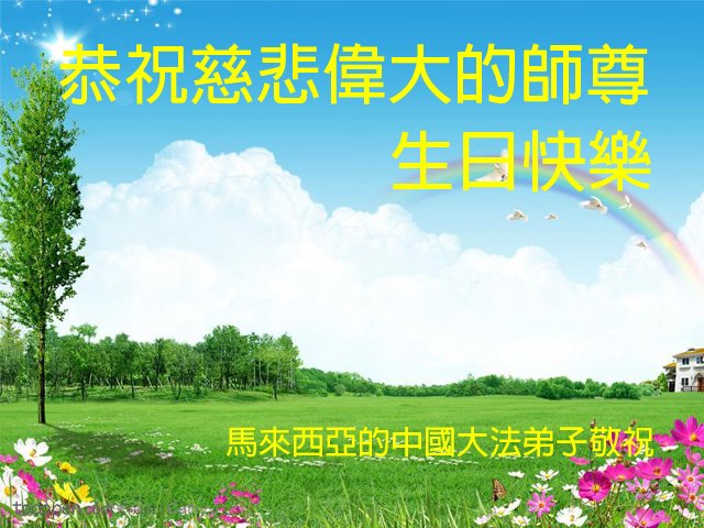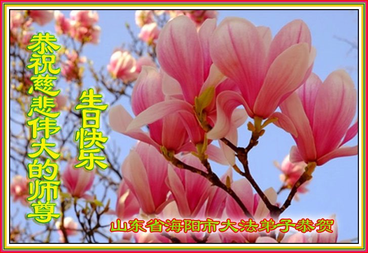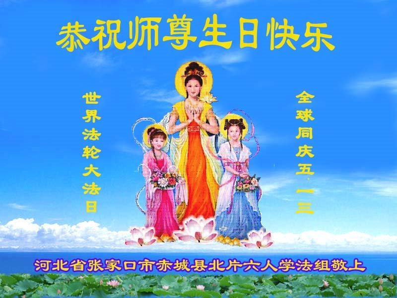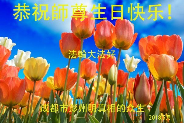 值此普天同庆的日子,弟子叩拜师尊!祝师尊生日快乐!我们一定按师父的要求,做好三件事,勇猛精進,修炼如初。紧随师行,多多救人。完成我们的神圣誓约,以报师恩。