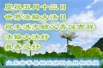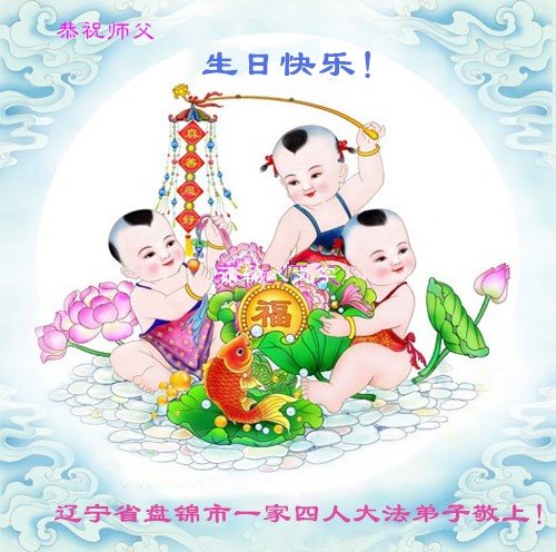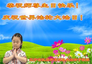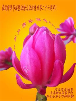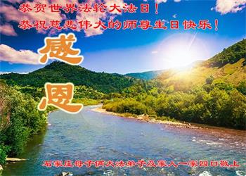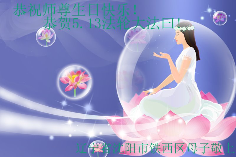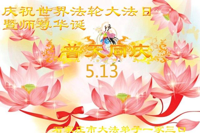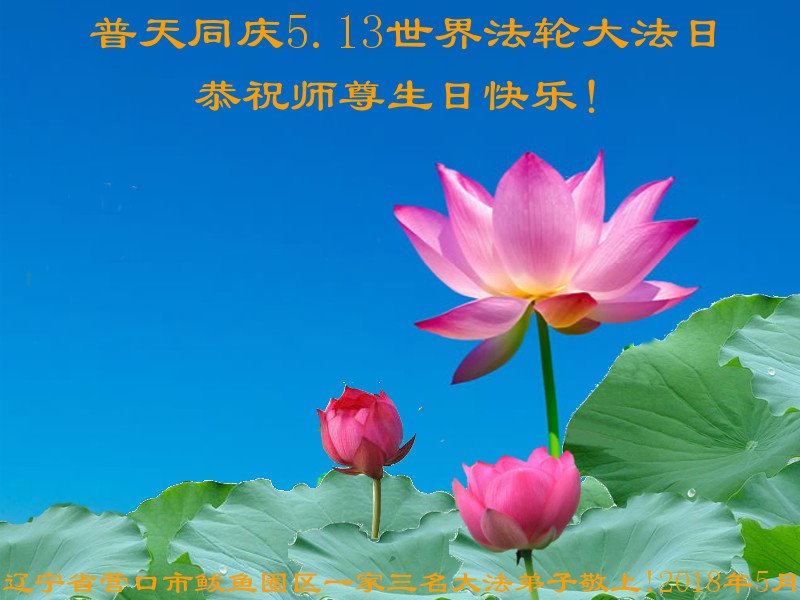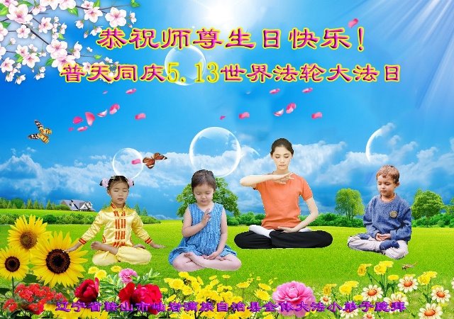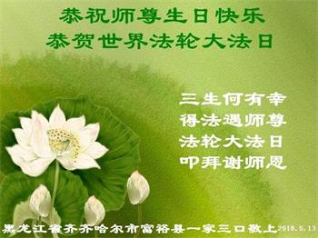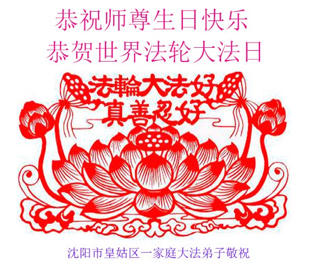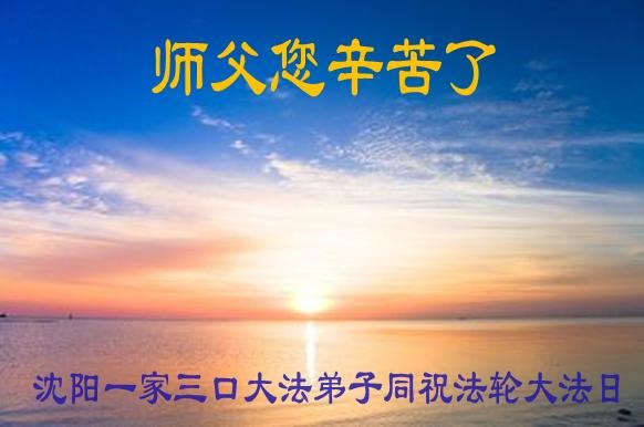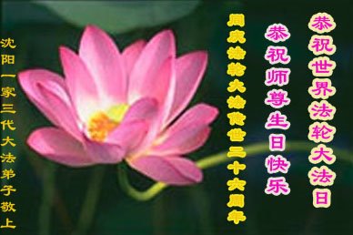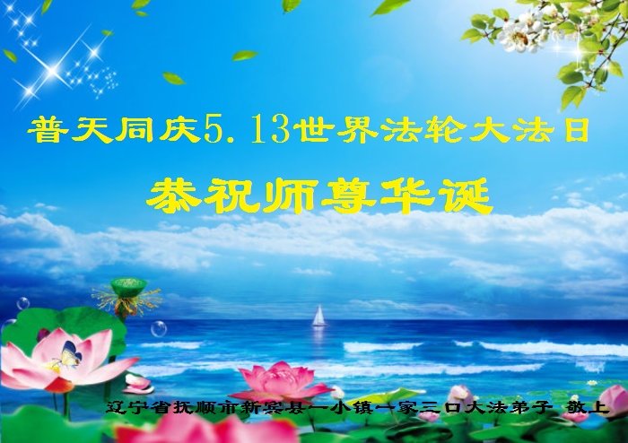 辽宁省沈阳市沈北新区祖孙三代大法弟子恭祝慈悲伟大的师尊生日快乐!恭祝五一三世界法轮大法日!