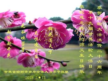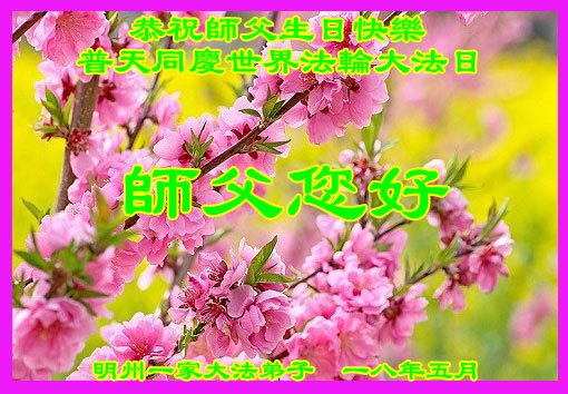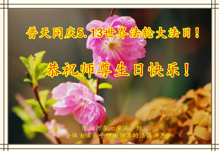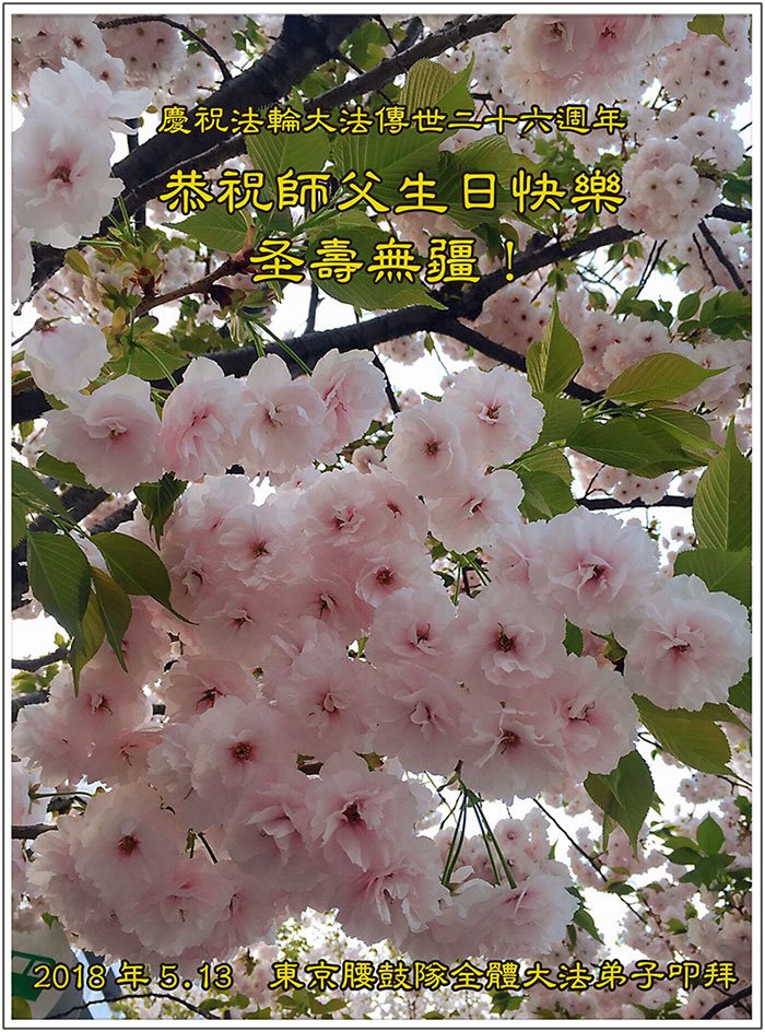 在这繁花似锦、绿草如茵的五月迎来了世界法轮大法日,恭祝慈悲伟大的师尊生日快乐!圣寿无疆!拜谢师尊洪恩浩荡救度末法末劫时的宇宙和众生。师父您好!师父辛苦了!冬去春来,樱吹雪中有弟子打坐的身影,我们愿把大法的美好吉祥、无边洪福带给有缘相遇的众生。大法在洪扬,人类有希望!