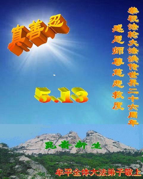 普天同庆世界法轮大法日,法轮大法好,真善忍好!