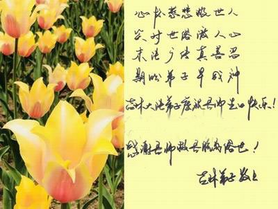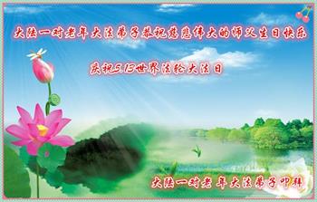 我们收到了来自美国各州、加拿大、墨西哥、澳大利亚、俄罗斯、丹麦、意大利、奥地利、西班牙、爱尔兰、罗马尼亚、芬兰、德国、英国、瑞典、日本、越南、韩国、朝鲜、塞浦路斯、塞尔维亚和黑山、希腊、匈牙利、保加利亚、克罗地亚、拉脱维亚、伊朗、巴西、泰国、印尼、缅甸、马来西亚、新加坡、台湾、香港、澳门、沙特阿拉伯、摩尔多瓦、比利时、挪威、法国、瑞士、阿联酋、捷克、斯洛伐克、波兰、荷兰、波黑、新西兰、土耳其、克里米亚、菲律宾等五十多个国家和地区的大法弟子的贺信。下面是其中的部份贺信贺卡。