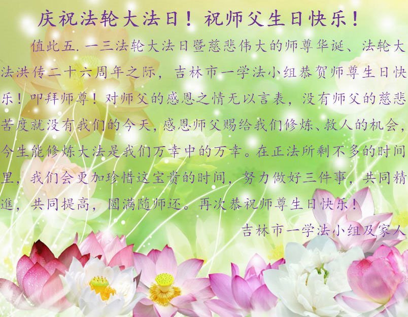 ──吉林市大法弟子恭贺师尊华诞!庆祝五一三世界法轮大法日!