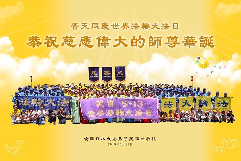 日本大法弟子在贺词中说:“我们是随师父下三界的古老生命,在生生世世的轮回辗转中没有忘记自己的初心,如今接上圣缘,弟子知道珍惜!不论还有多少个寒来暑往,我们一定会勇猛精進。”