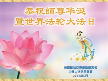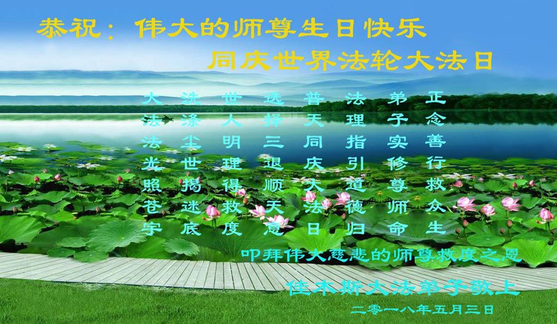 <英文版: http://en.minghui.org/html/articles/2018/5/14/170342.html>普天同庆大法日 五十余国大法弟子恭祝师尊华诞