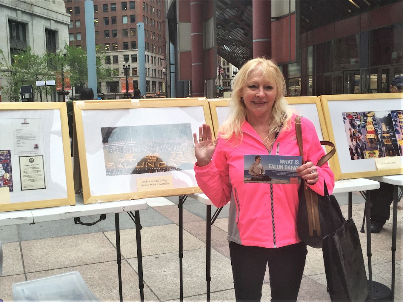 纽约市民宝拉·斯蒂尔(Paula Steele)在路旁跟着游行队伍走,她希望纽约人都过来看游行。“我感到来了强大的能量,一种纯净的、清澈的能量。虽然我很忙,但是我必须停下来,因为这一切太美好了!”她大声说,“纽约人需要‘真、善、忍’!这是全世界要遵循的价值观。停下来吧,看一看传单,这里是你灵魂需要的美好的东西。我感觉太好了!这些人让我感觉到了他们的慈悲!今天可真是我的幸运日!”
