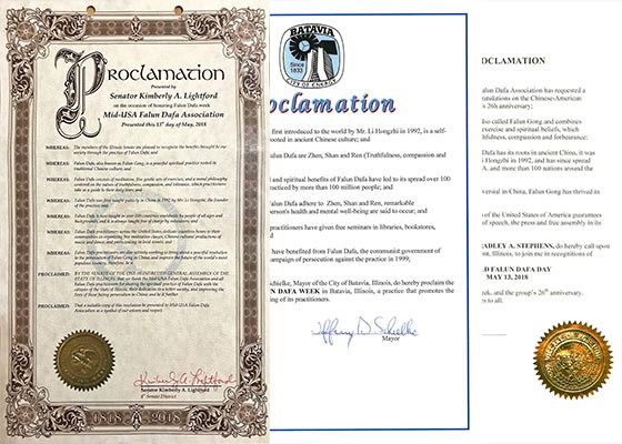 美国伊利诺伊州参议院向当地法轮大法学会颁发褒奖,赞扬法轮大法,感谢法轮功学员们为当地社区和改善社会所做出的贡献。
