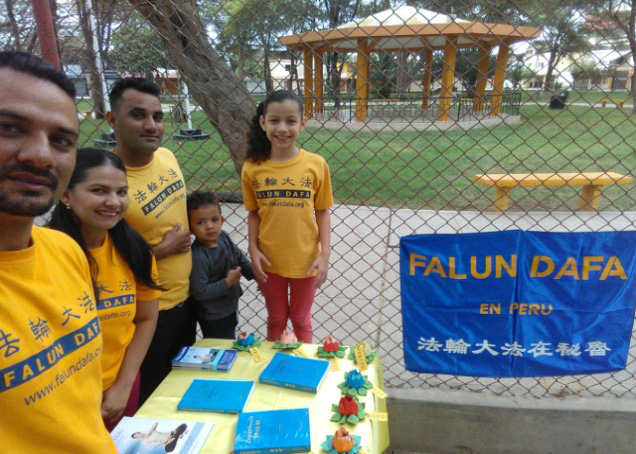 【明慧网二零一八年五月十九日】二零一八年五月十三日是第十九届“世界法轮大法日”,也是法轮功创始人李洪志师父六十七岁华诞。部份秘鲁法轮功学员在首都利马圣伊德洛区(SAN ISIDRO)的阿方索乌加特公园(PARQUE ALFONSO UGARTE)举办活动,庆祝法轮大法弘传世界二十六周年,同时表达对师尊的感激之心。