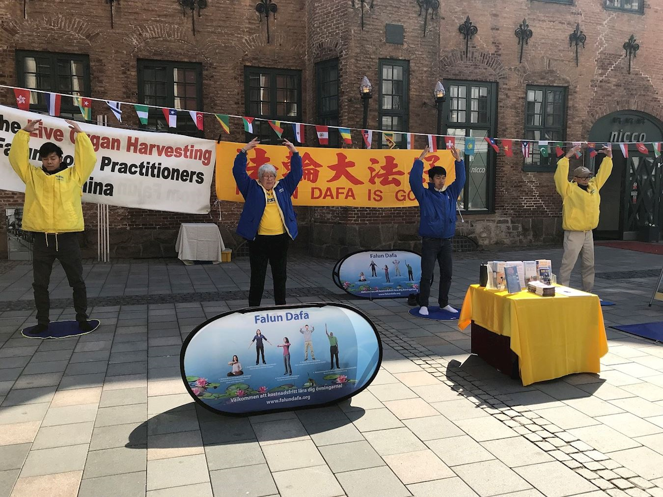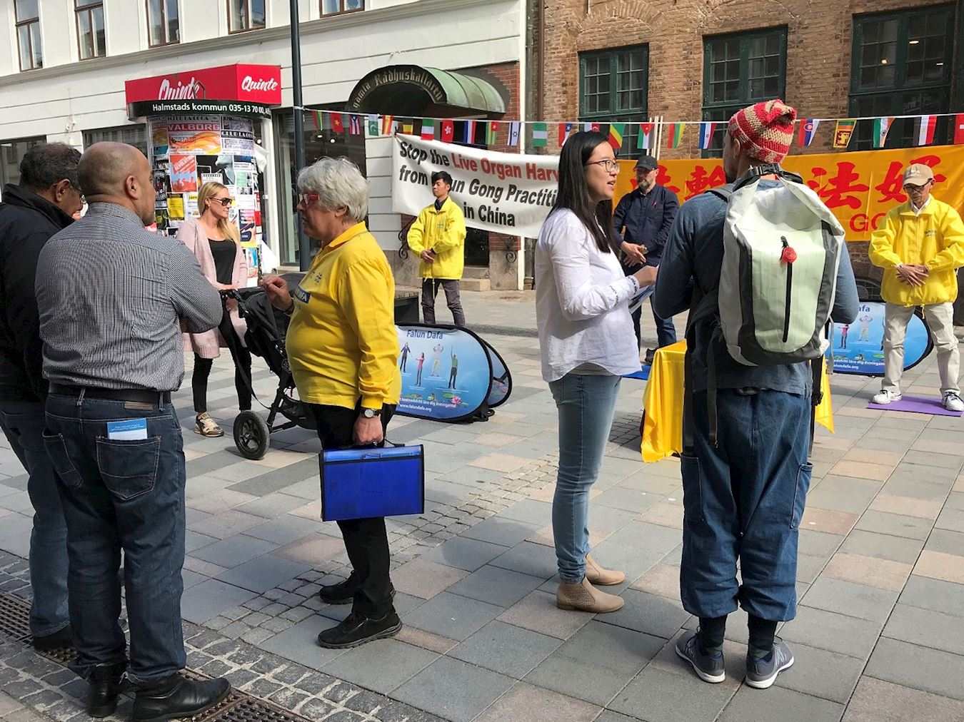 【明慧网二零一八年五月二日】为期一周的世锦赛乒乓球赛于二零一八年四月二十九日在瑞典港市(Hamstad)拉开序幕。为世锦赛而来的运动员、记者和游客们涌入这个位于瑞典西南部海滨的美丽城市。该市的法轮功学员于二十九日和三十日在市中心最繁华的国王街举办活动,和人们分享法轮大法的美好并揭露中共十九年来残酷迫害法轮功的事实。