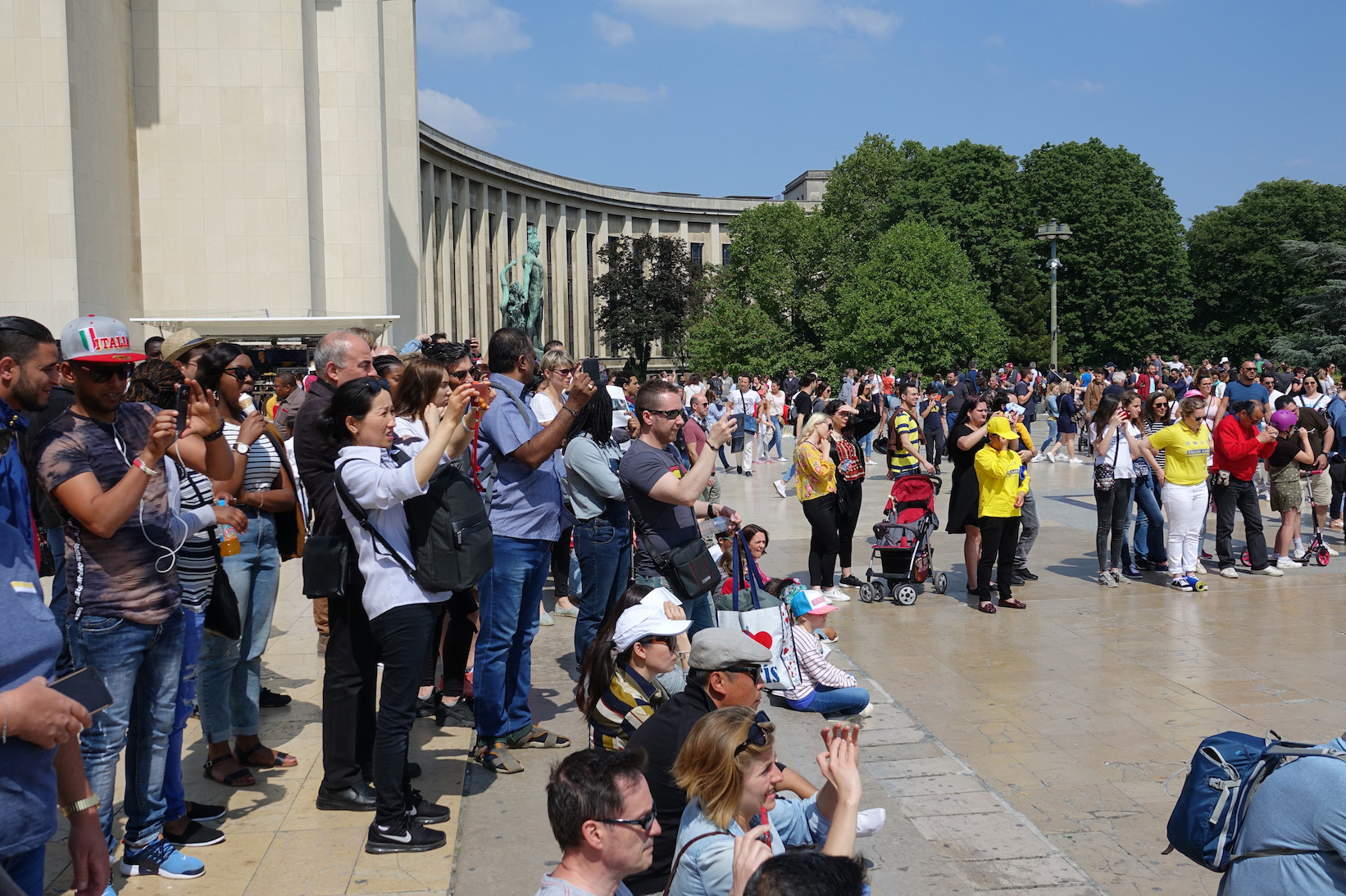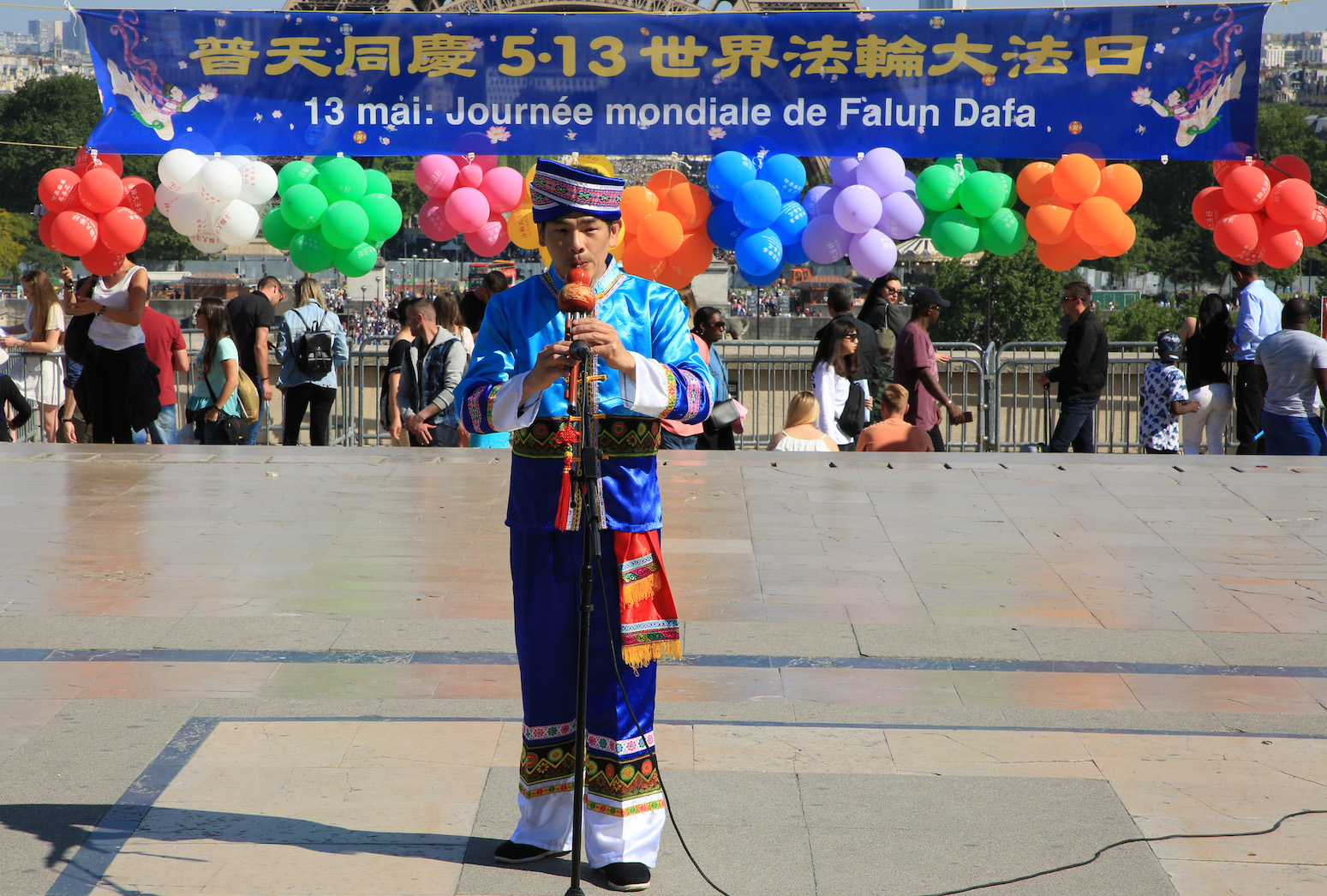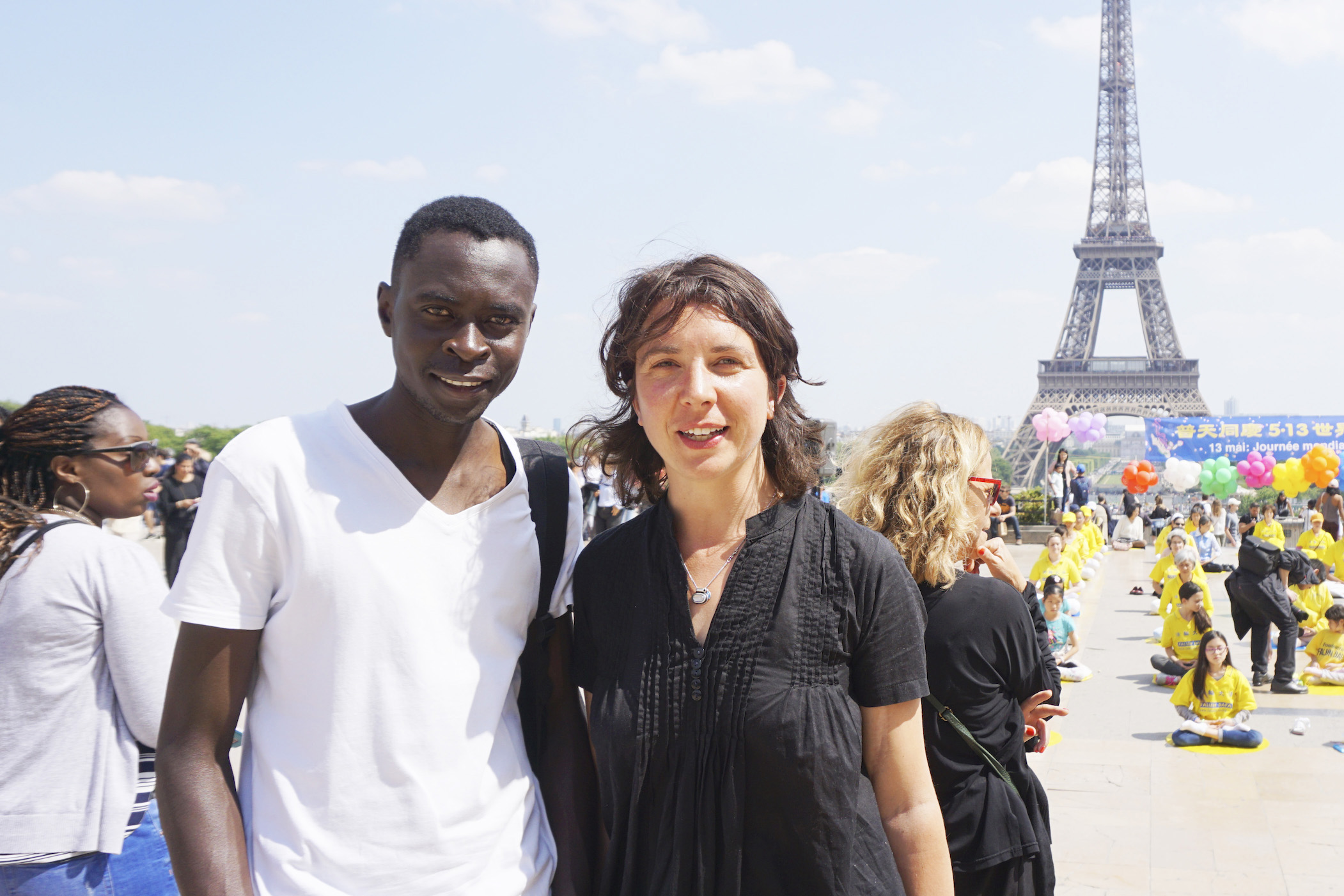 五月二十日在法国巴黎铁塔对面的人权广场上,法国法轮功学员们用歌舞演出和功法演示向过往的游客和法国民众传递大法的美好,同时也告诉人们正在中国发生的对大法修炼者的迫害,呼吁制止迫害。