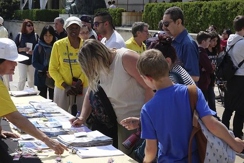 “法轮大法是对全人类都好的修炼方法,值得全世界都去了解,我真心的希望每个人都能了解大法。”修炼九年的玛丽波尔(Marie-Paule)说。她从洛杉矶来巴黎探亲,正好赶上庆祝法轮大法日的活动。“今天我感到非常的感恩,能有幸得大法,我也希望在这里把大法的信息传给人们,这是上天送给我们的礼物,我也希望其他人能够接受这个礼物。”