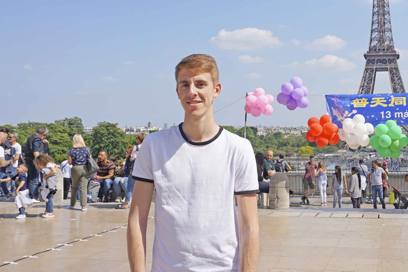 “非常愉快,非常喜悦,今天在这里庆祝法轮大法日,对我来说是一个最重要的日子,同时也能让其他的人受益,这让我觉得很快乐。”中学数学老师,二十五岁的冈单(Quentin)表示。