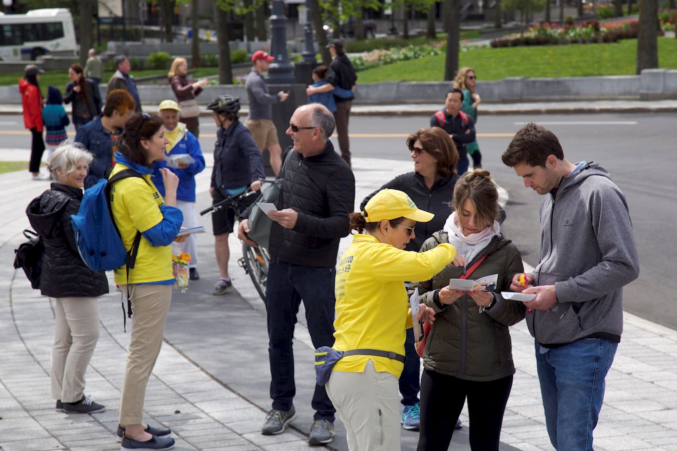 ![]() 图2:学员面对面向人们介绍什么是法轮功(法轮大法)以及在中国正在遭受着迫害的事实真相。 |